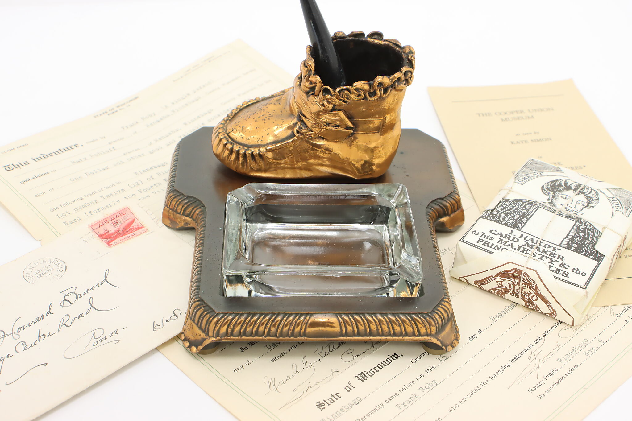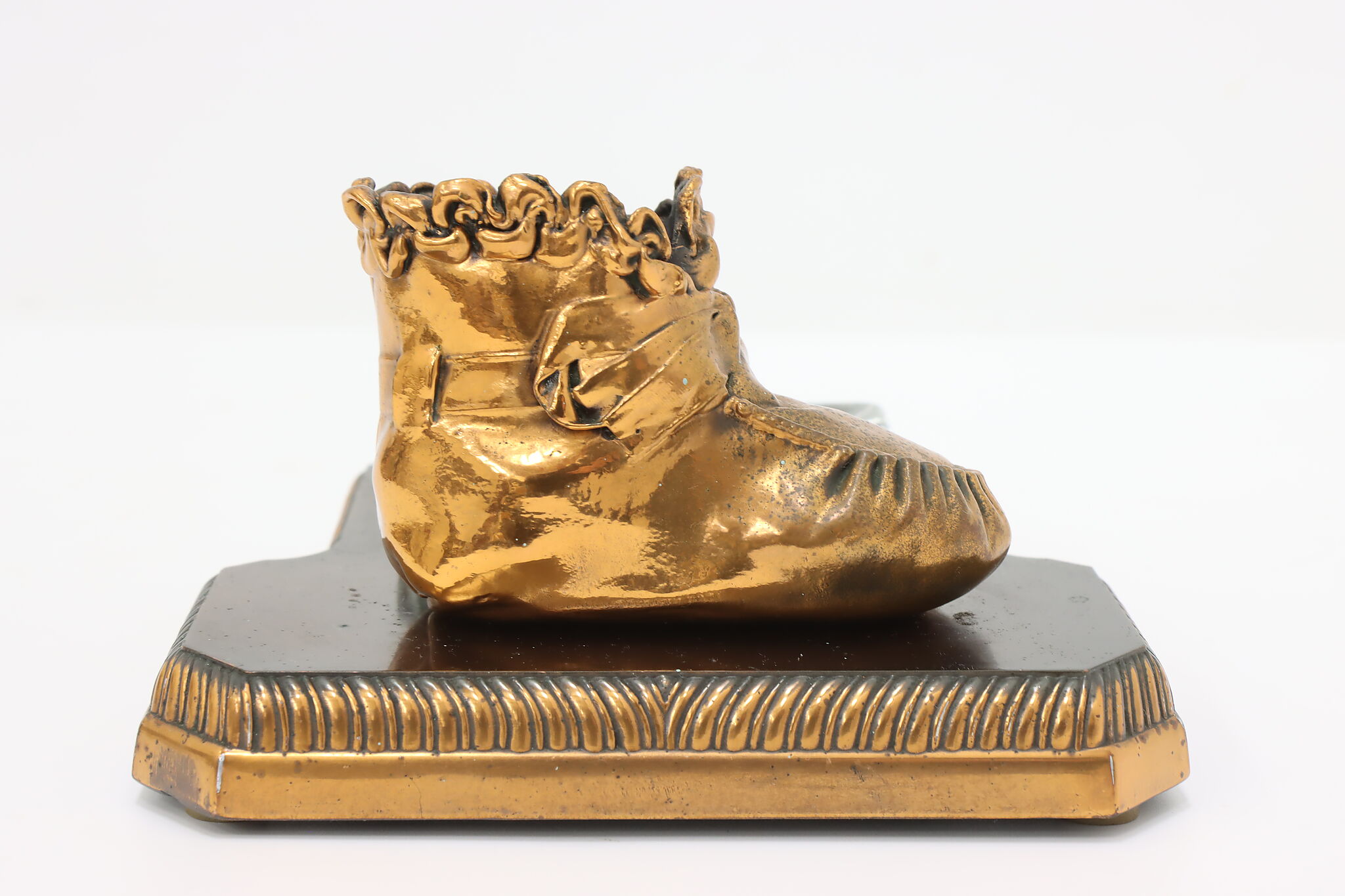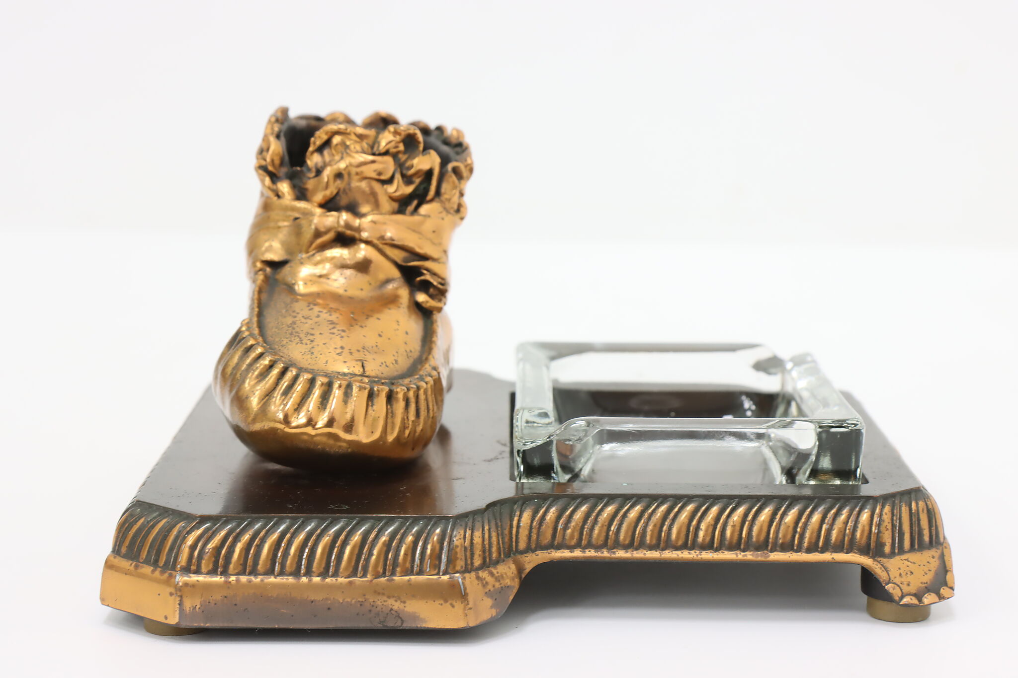 Coppering or bronzing your baby's first shoes is a lovely way to preserve the memories of their first steps! Combined with an ashtray, this is a great office or library gift.