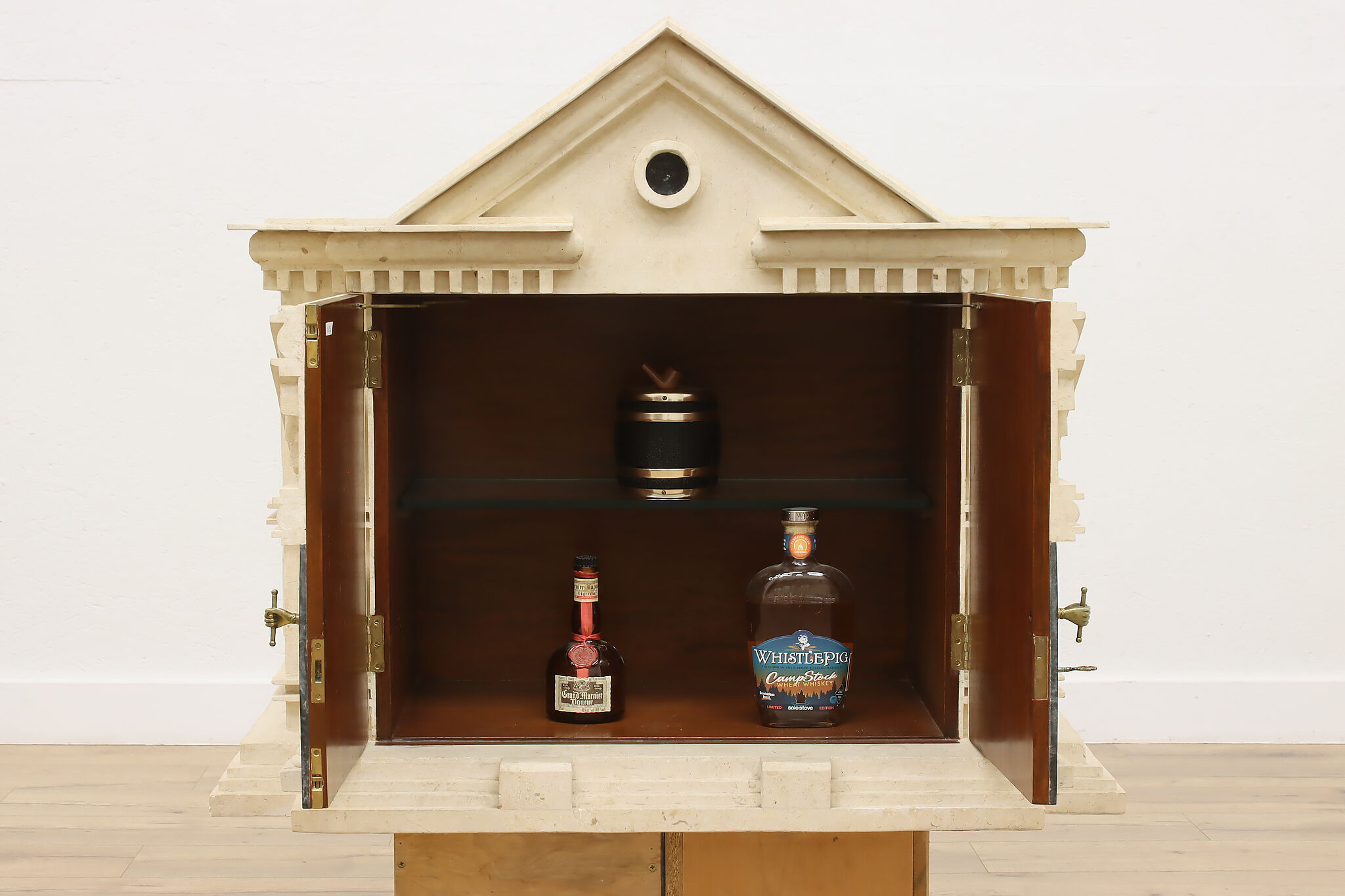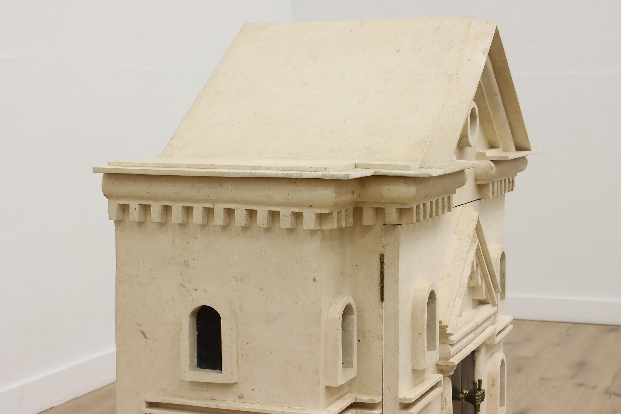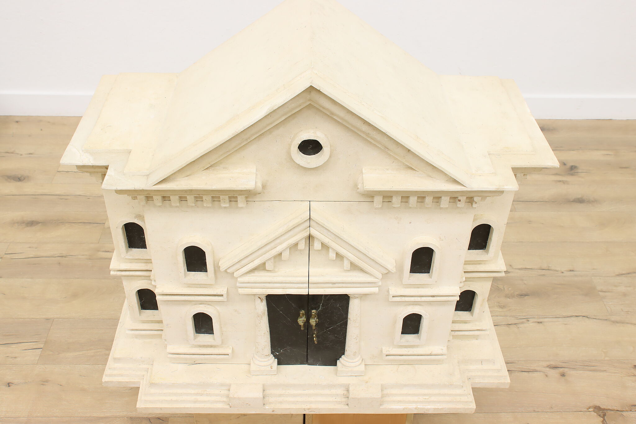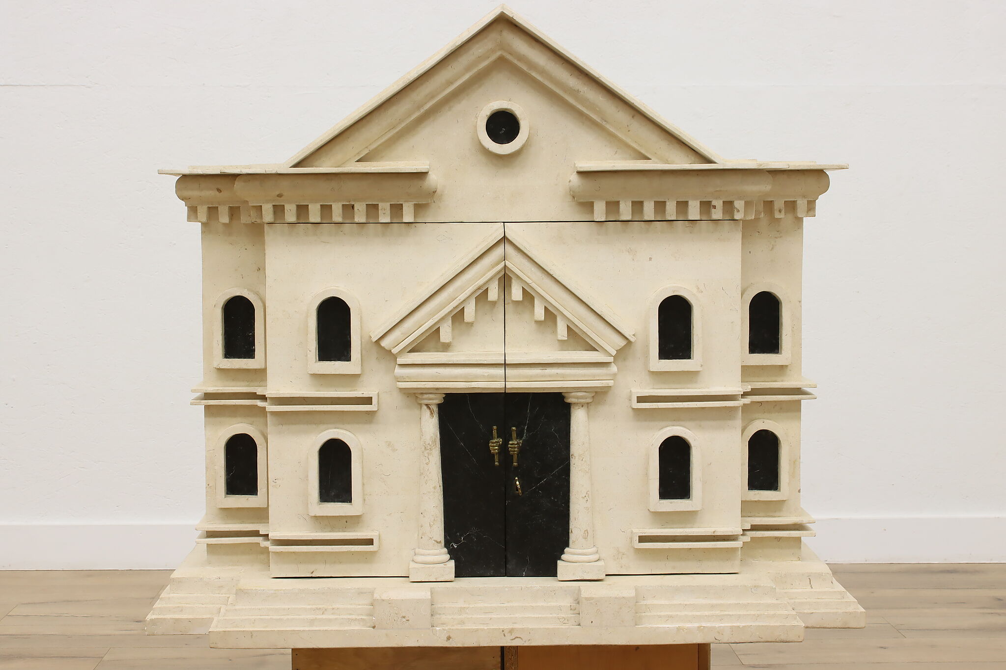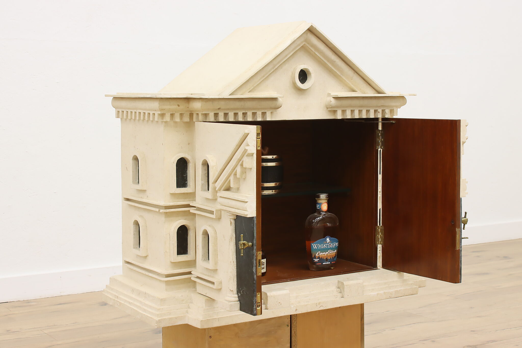 This unique tabletop bar or display cabinet is a grand classical mansion with charming "hand" door handles.