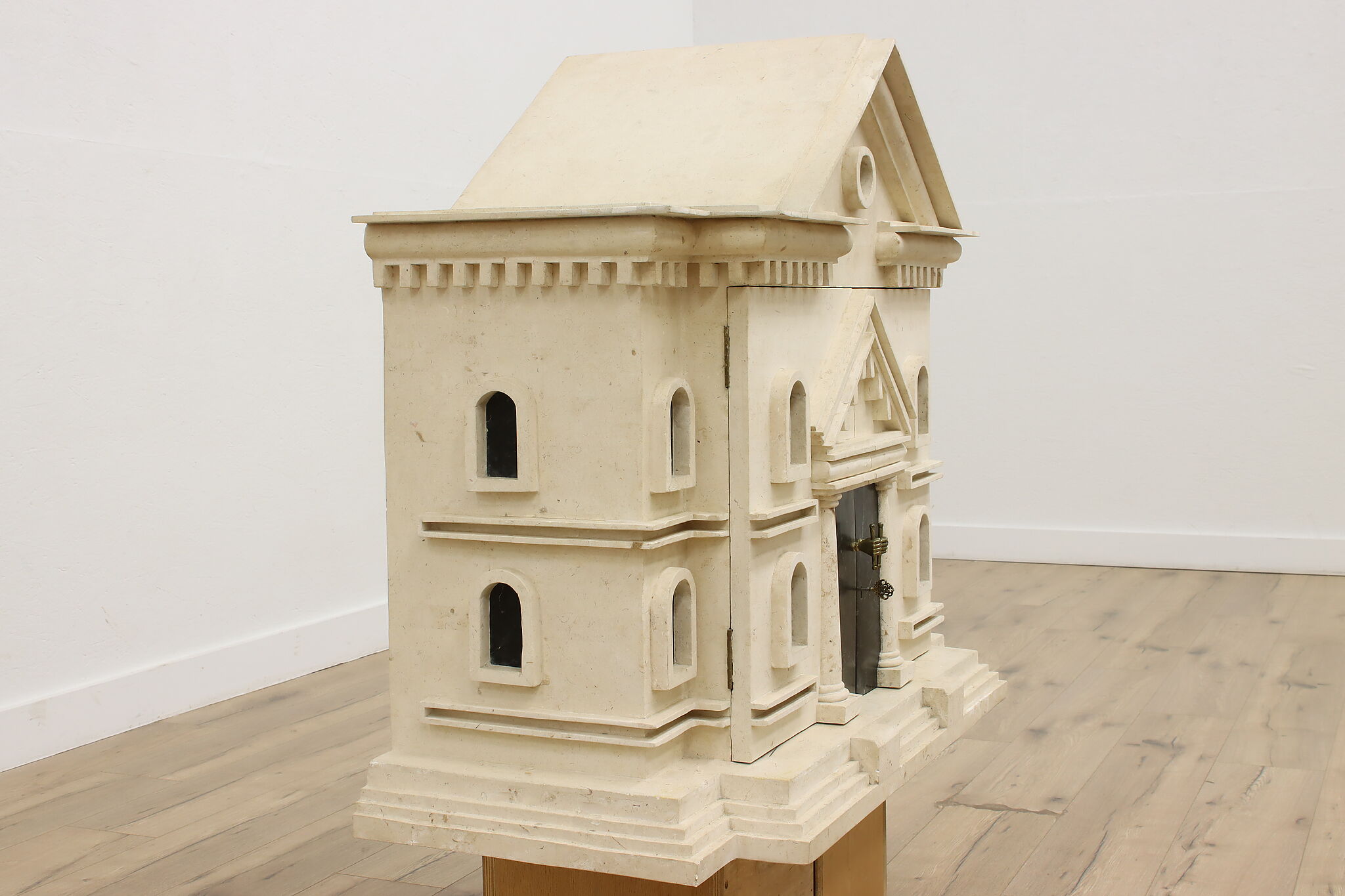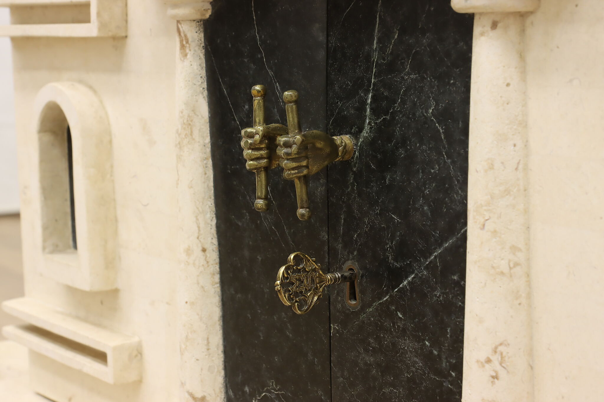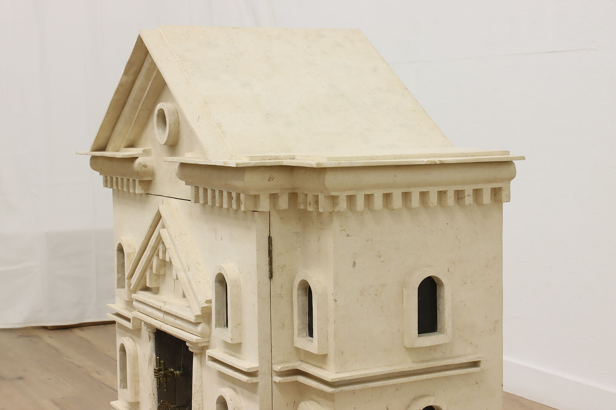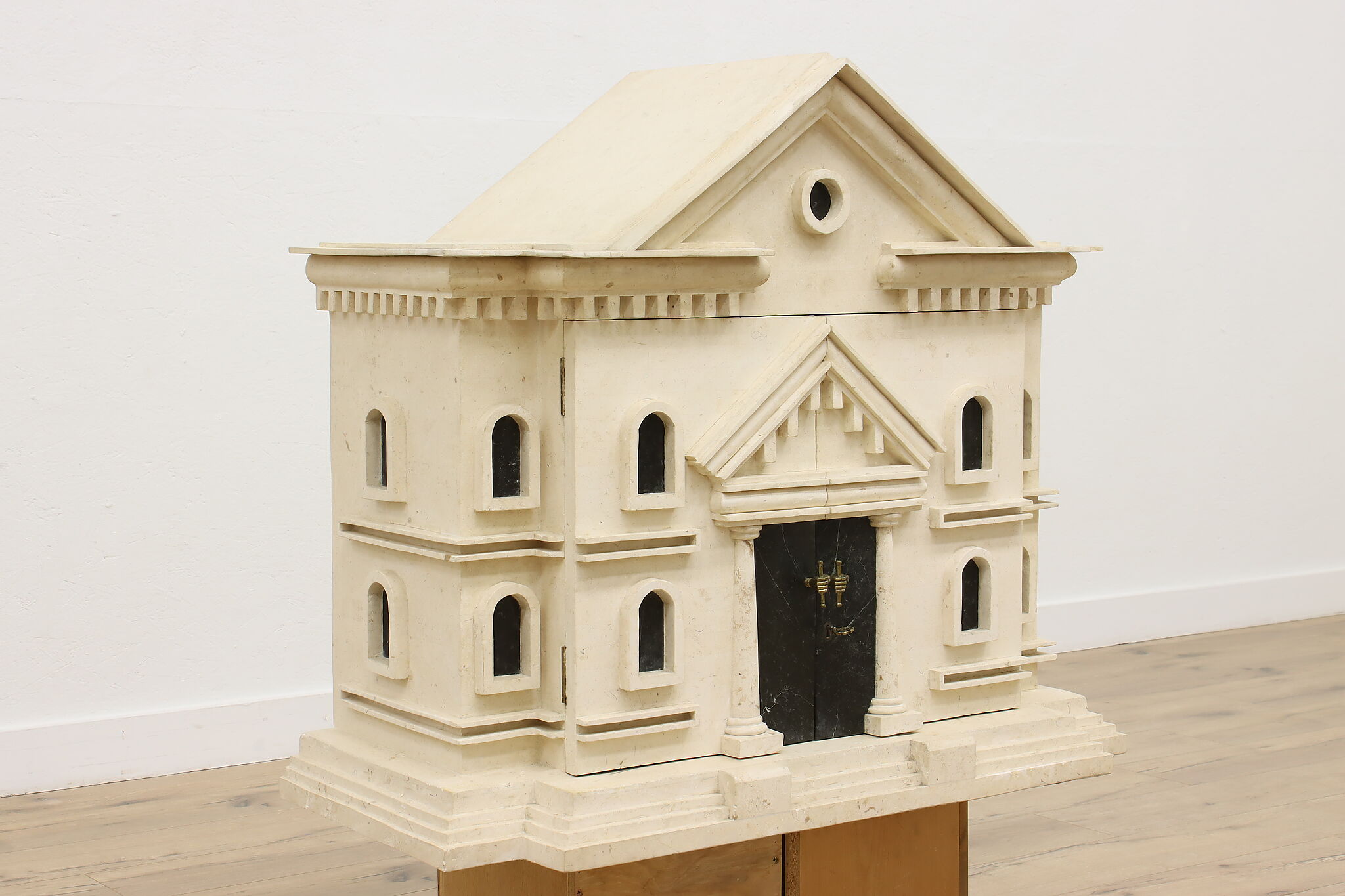 This unique tabletop bar or display cabinet is a grand classical mansion with charming "hand" door handles.