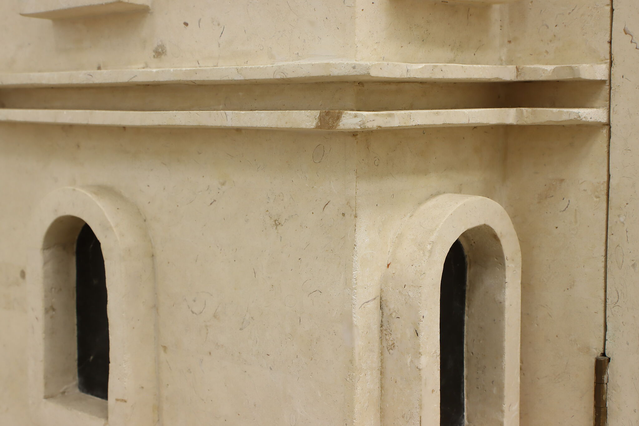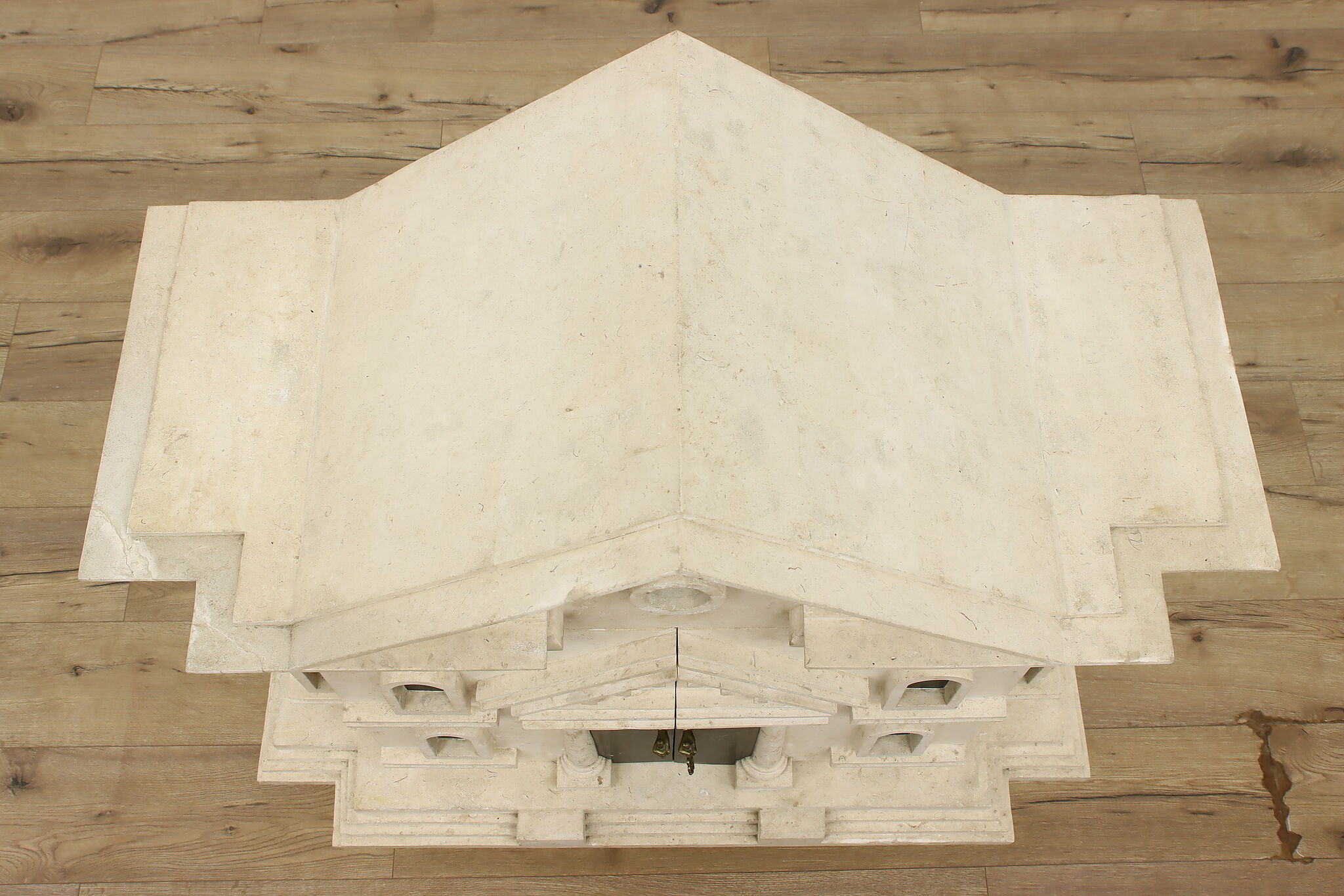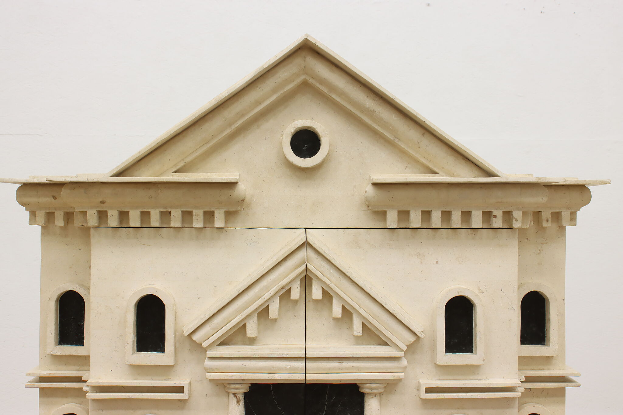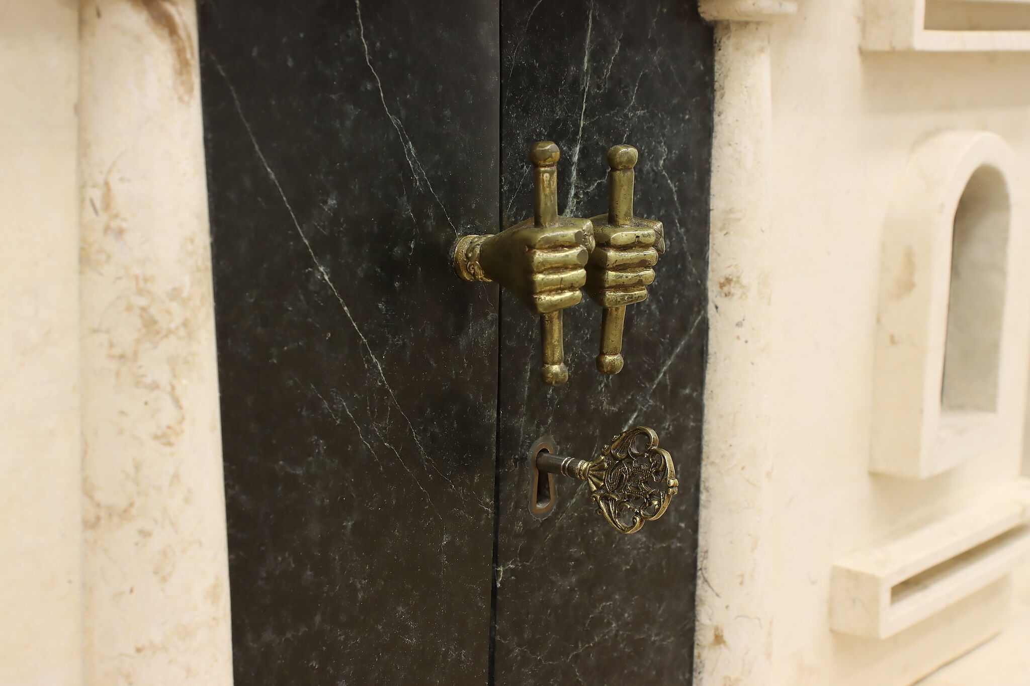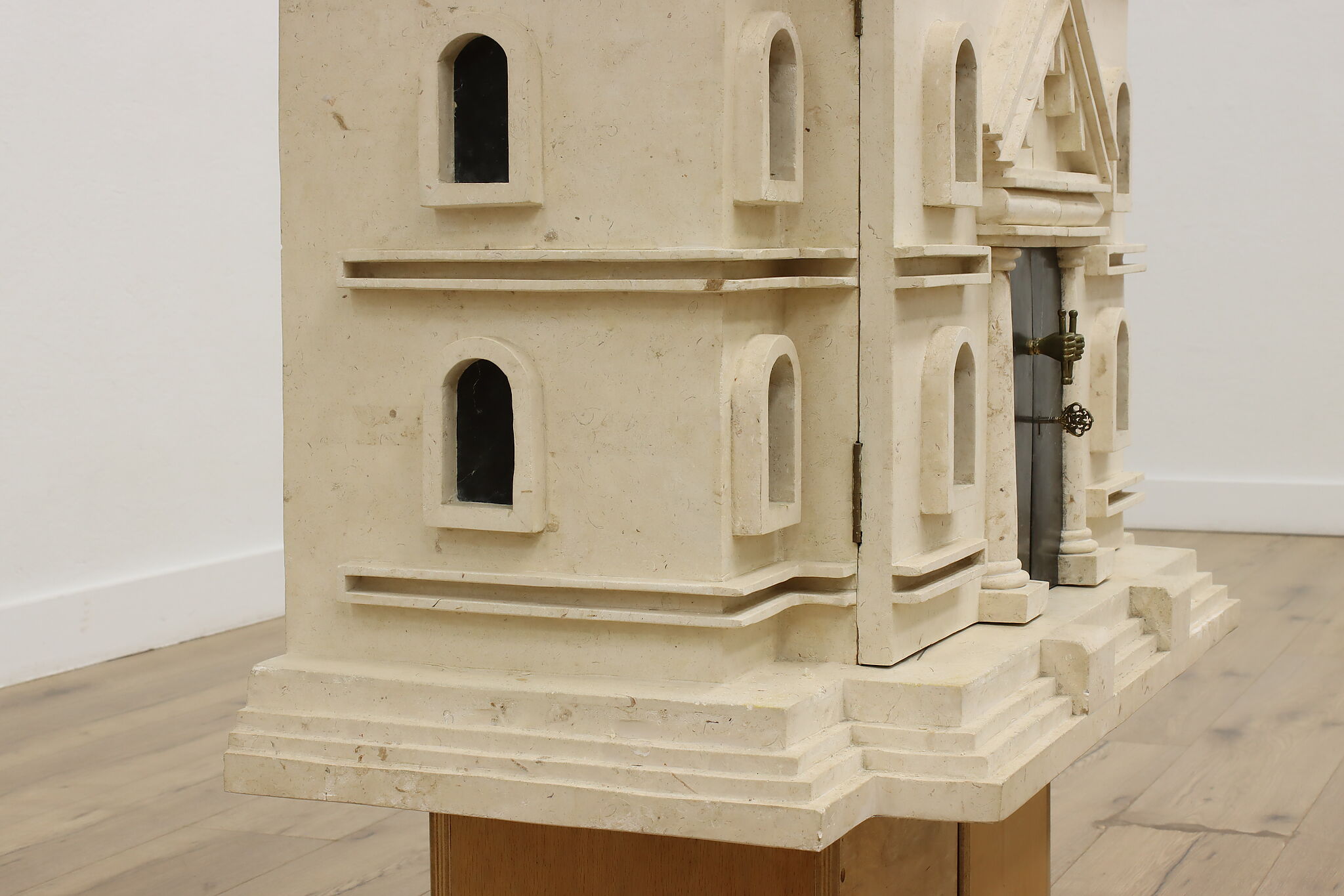 This unique tabletop bar or display cabinet is a grand classical mansion with charming "hand" door handles.