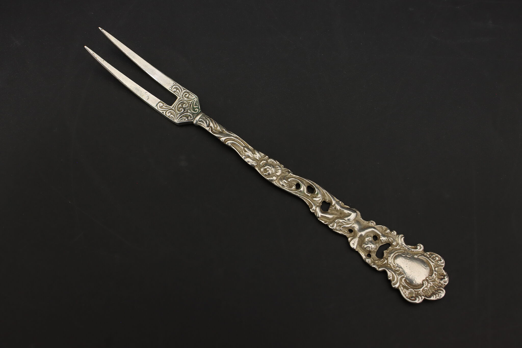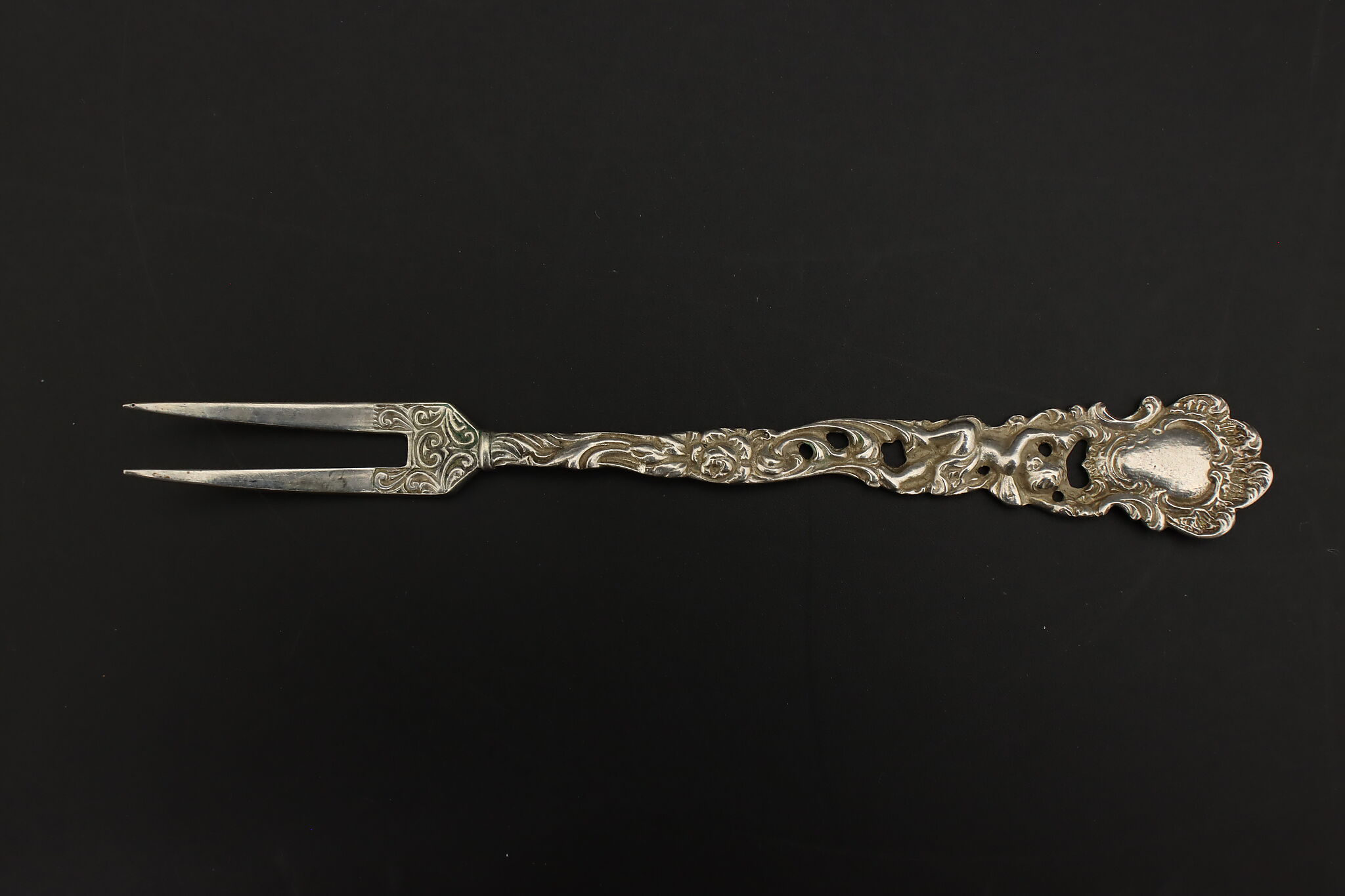 This dainty pickle or lemon fork has a fairy figure on its handle.