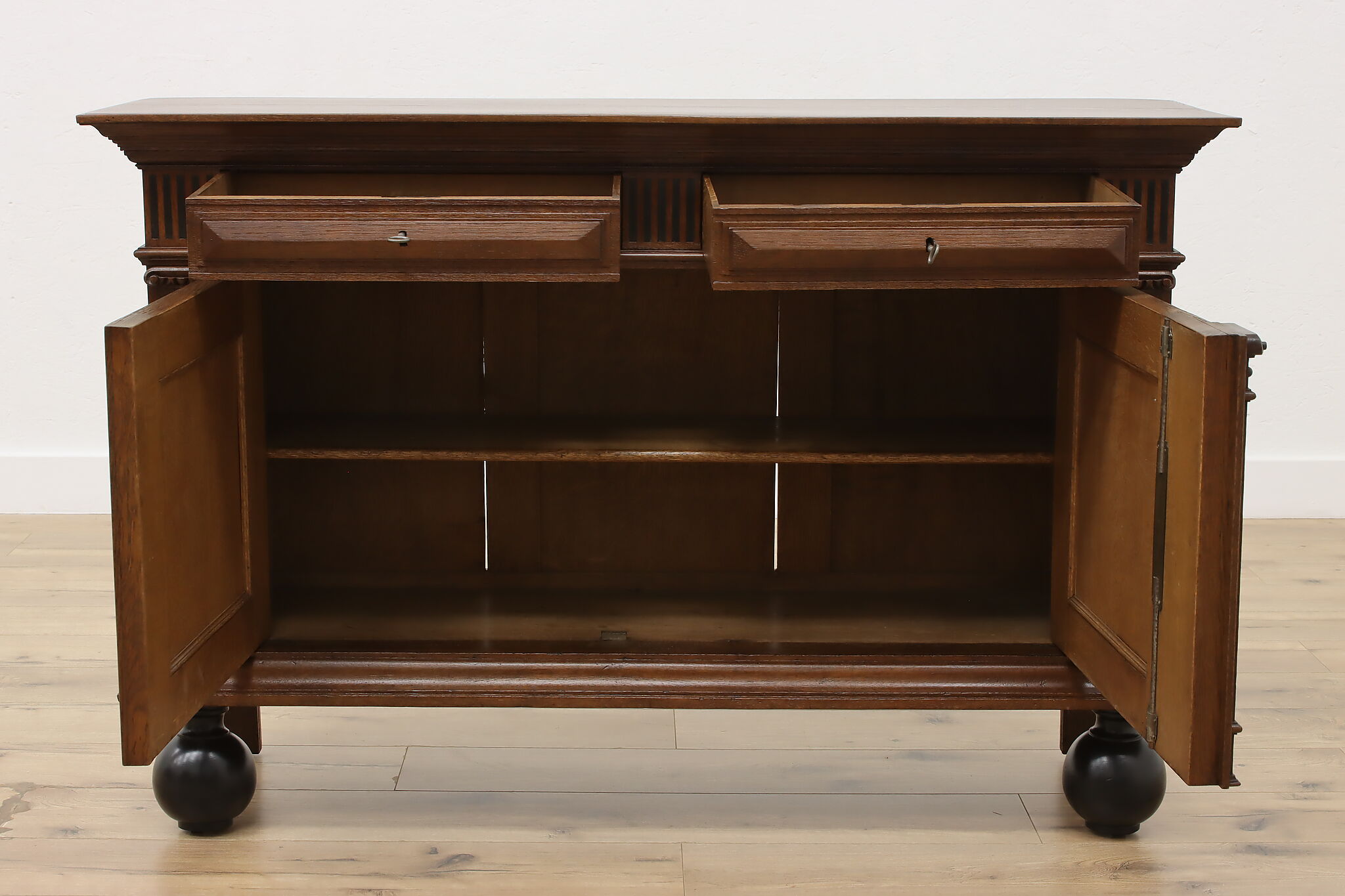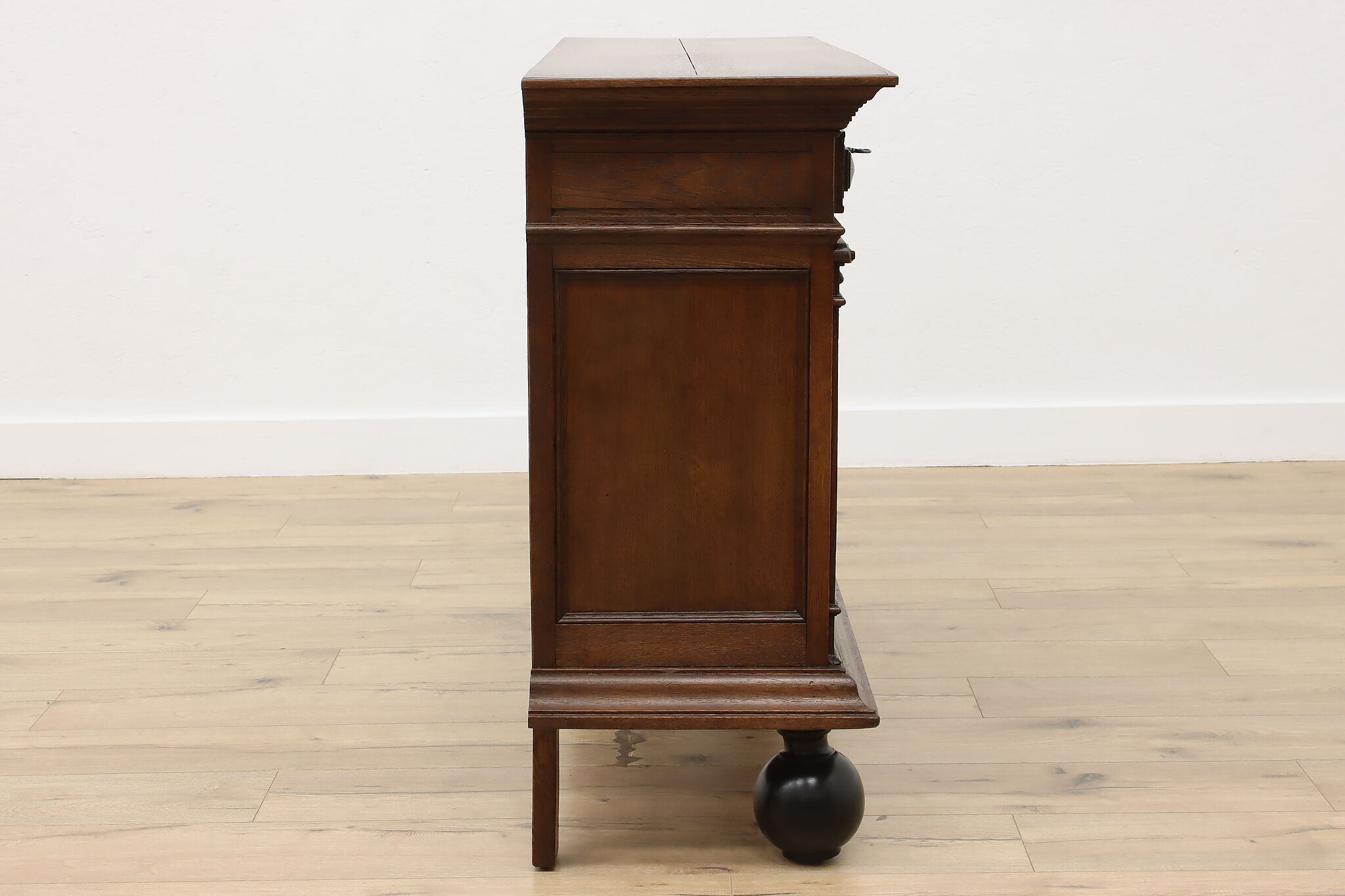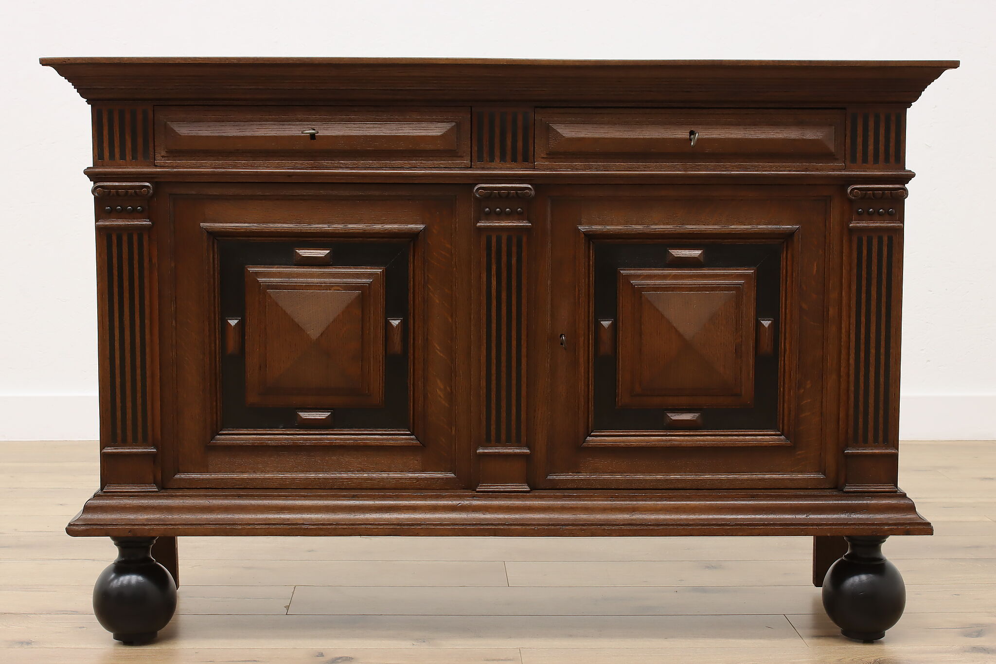 This bar cabinet or TV console was beautifully handcrafted in the Netherlands about 1900 with ebony accents from the Dutch colonies.