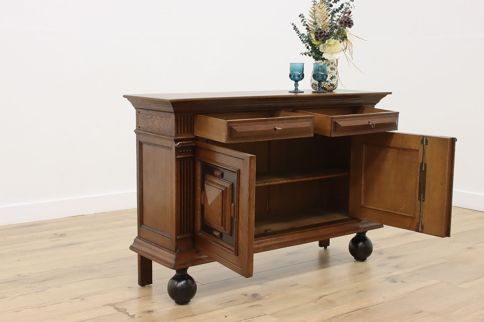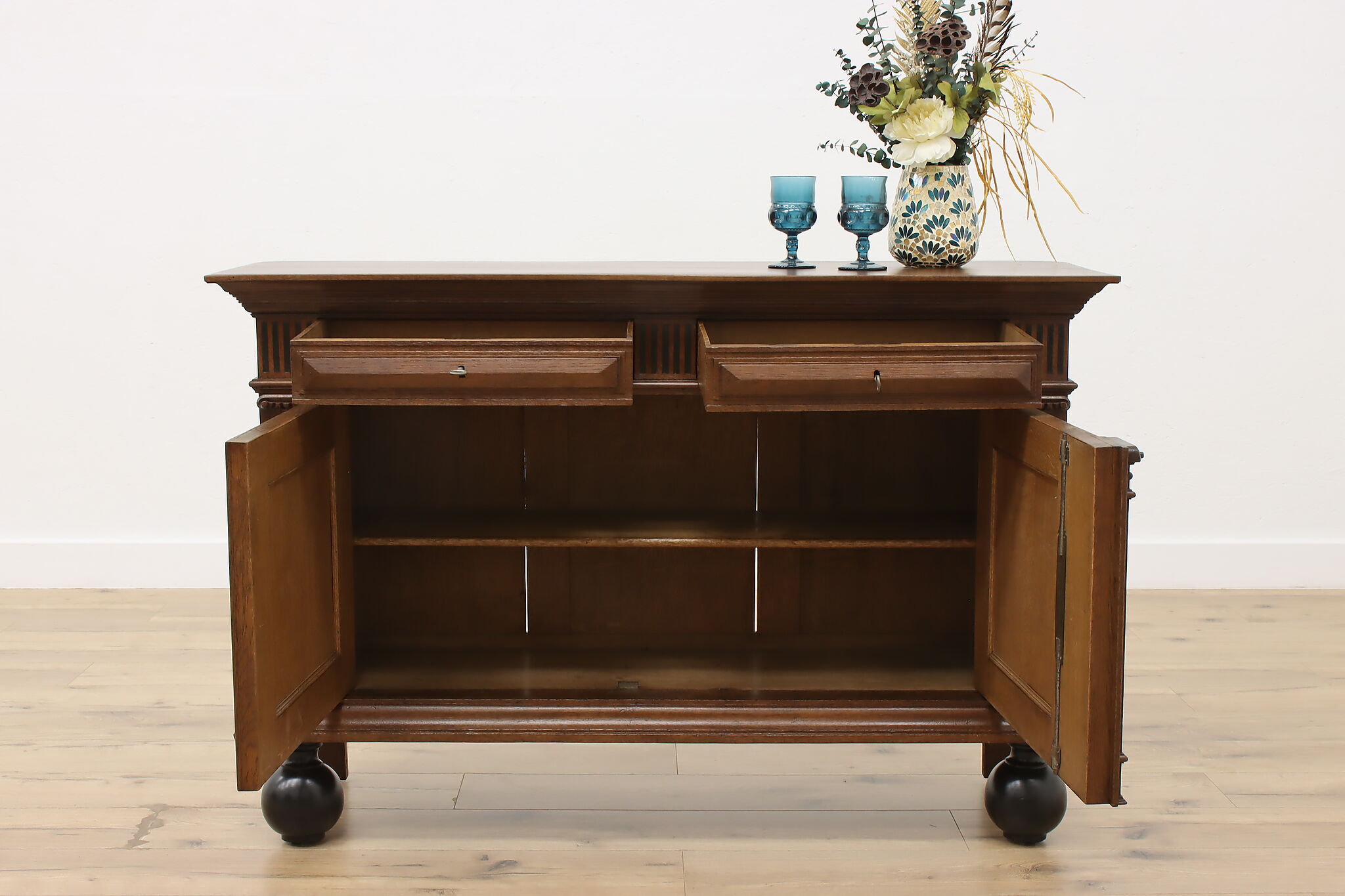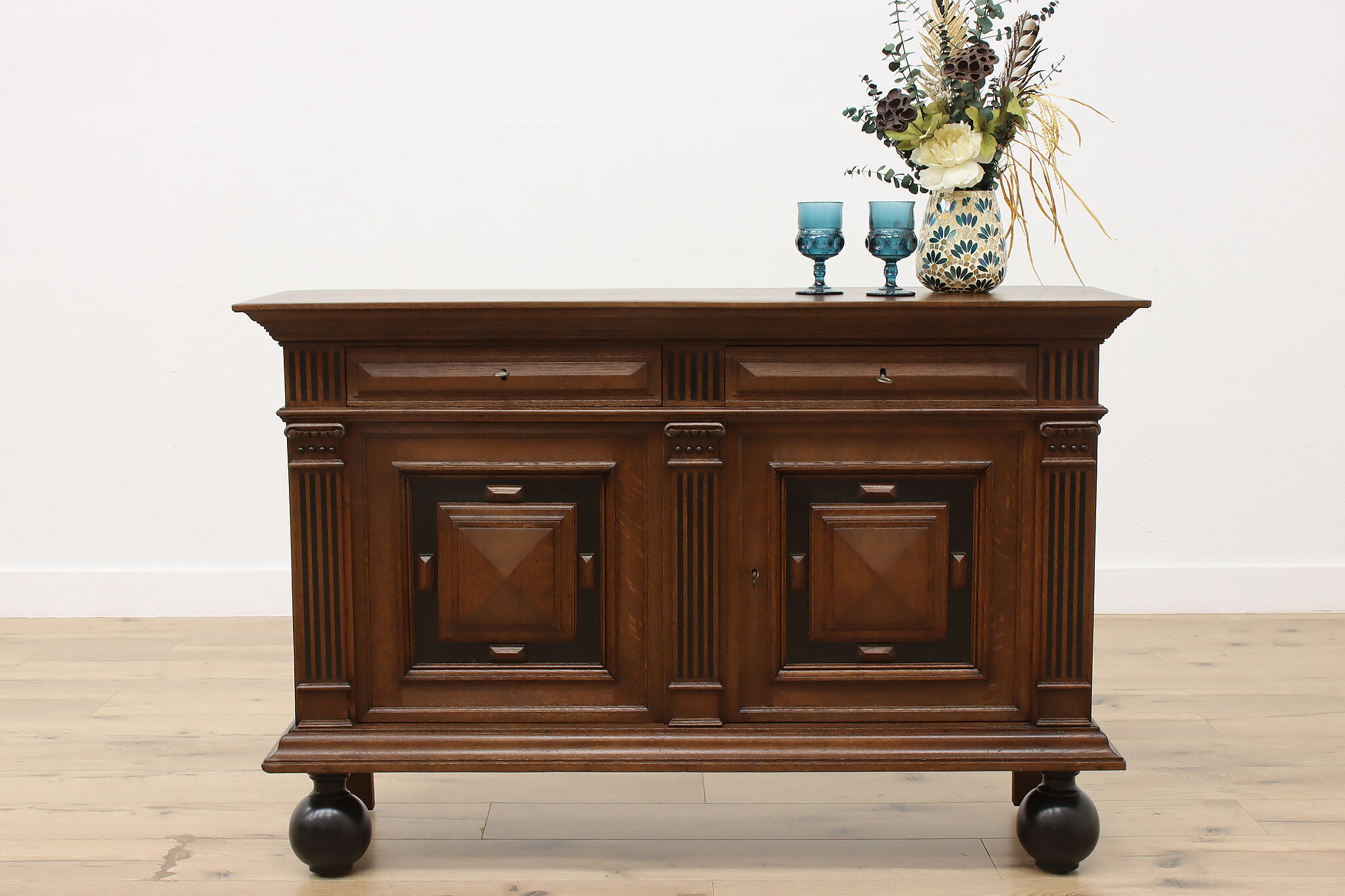 This bar cabinet or TV console was beautifully handcrafted in the Netherlands about 1900 with ebony accents from the Dutch colonies.