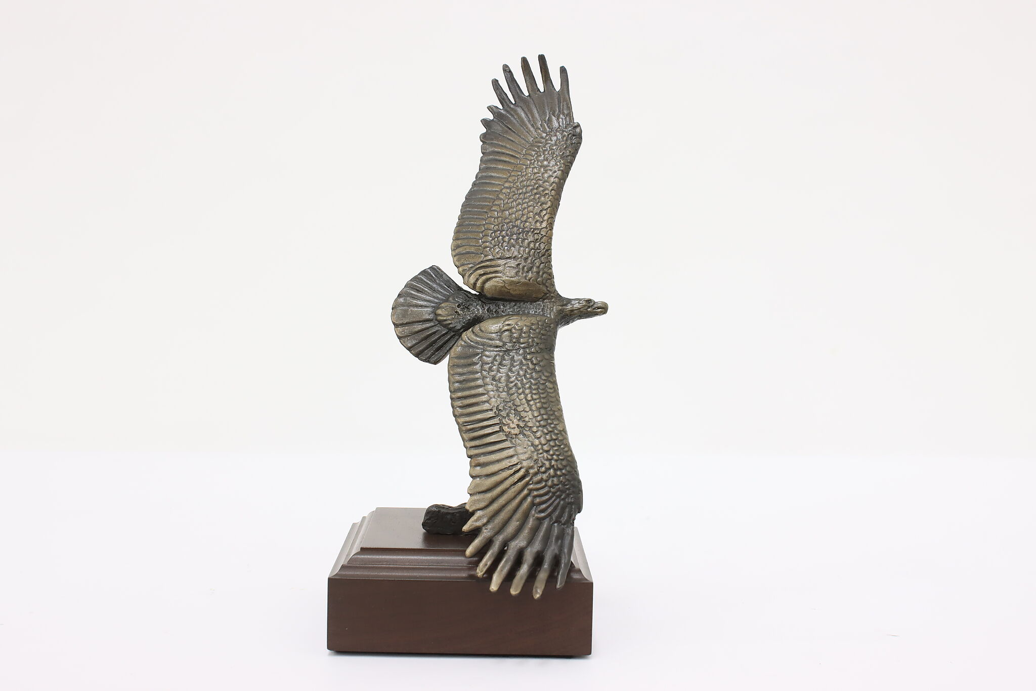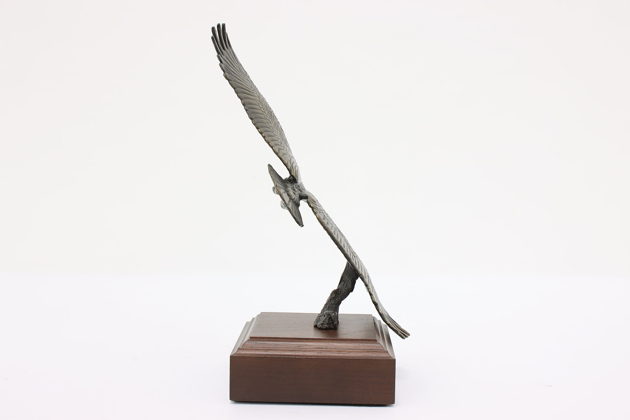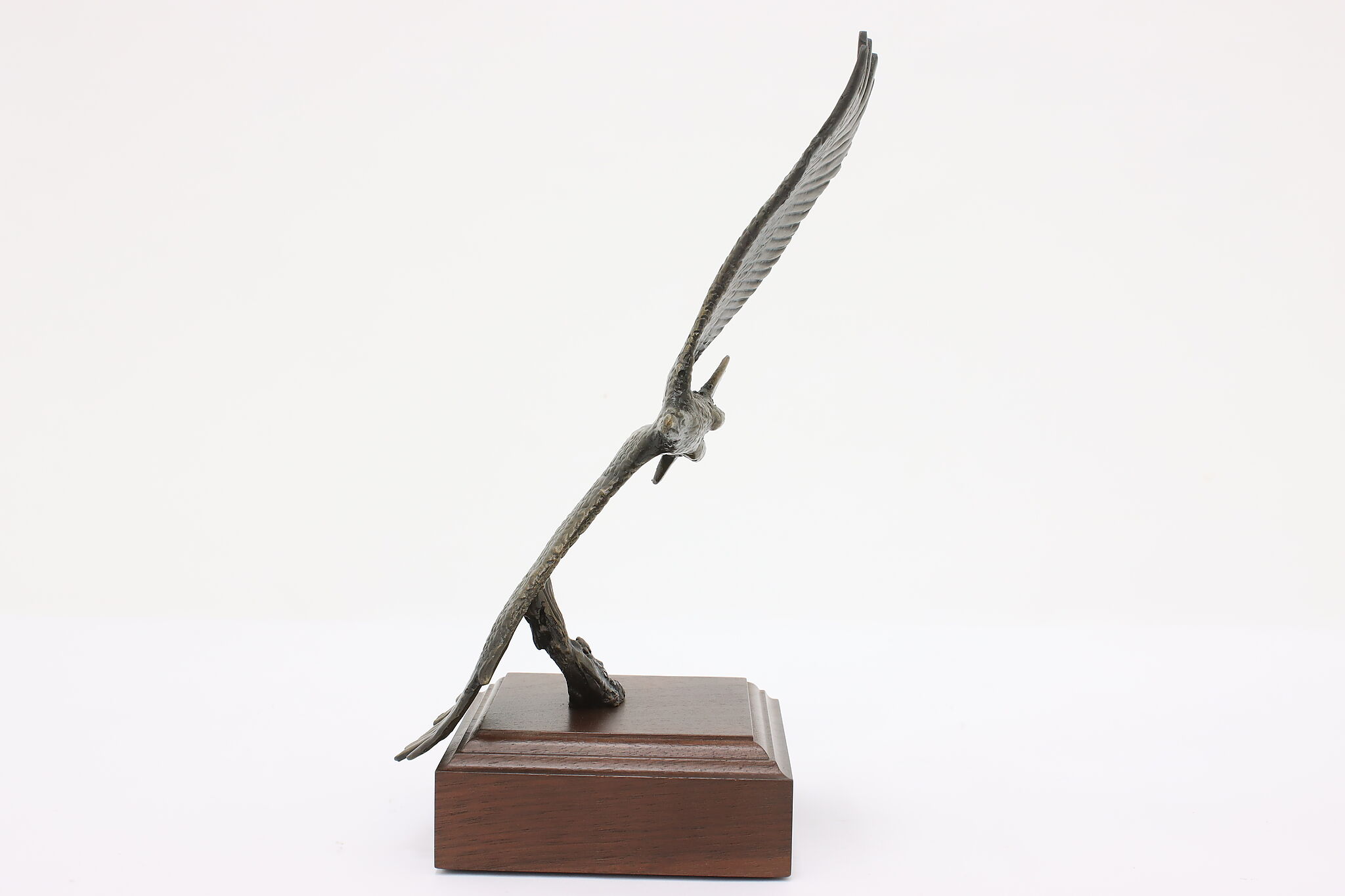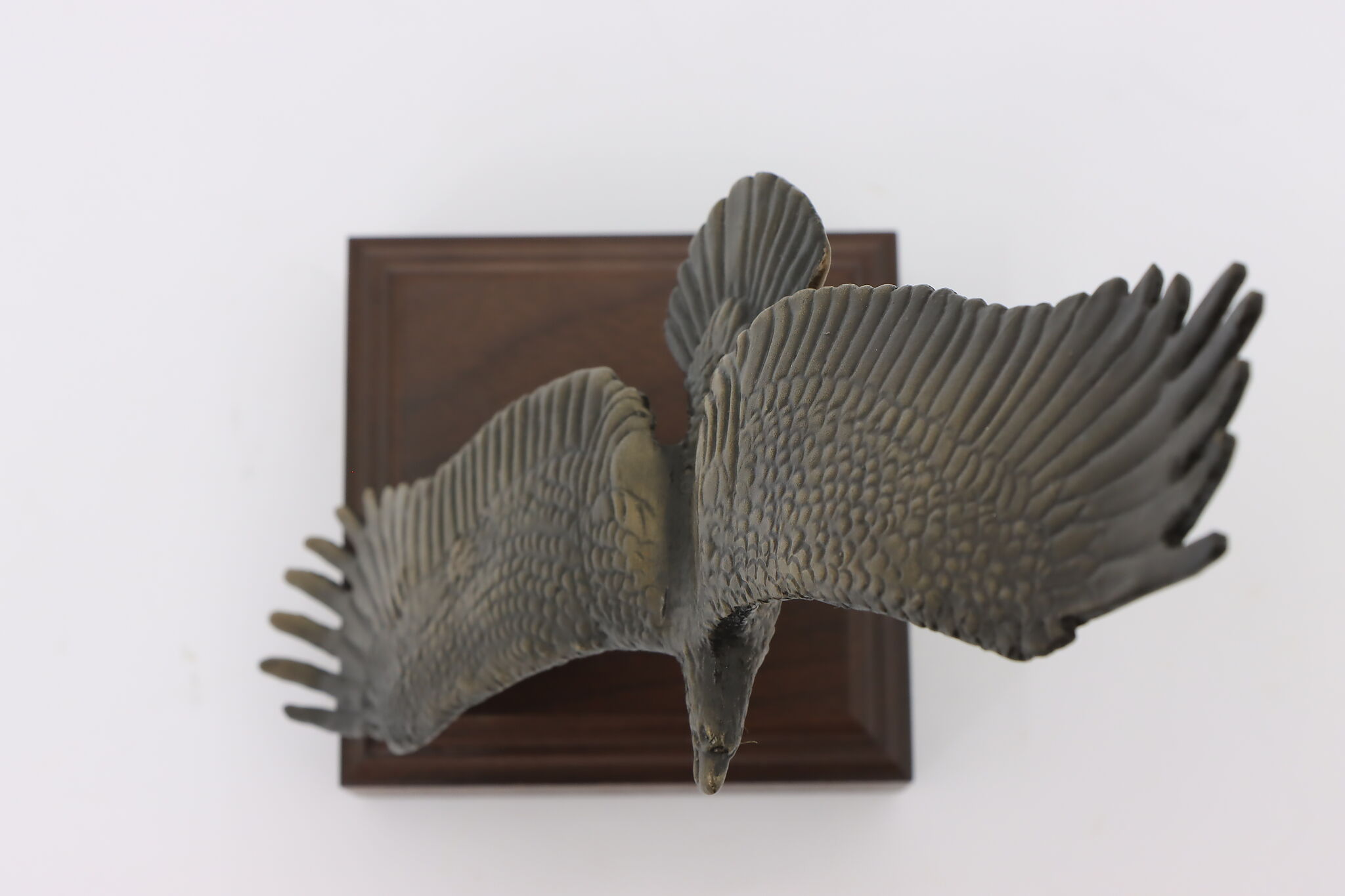 This sculpture of a soaring eagle is signed by Wally Shoop, a contemporary American Indian sculptor working since 1970 in Osceola, WI.