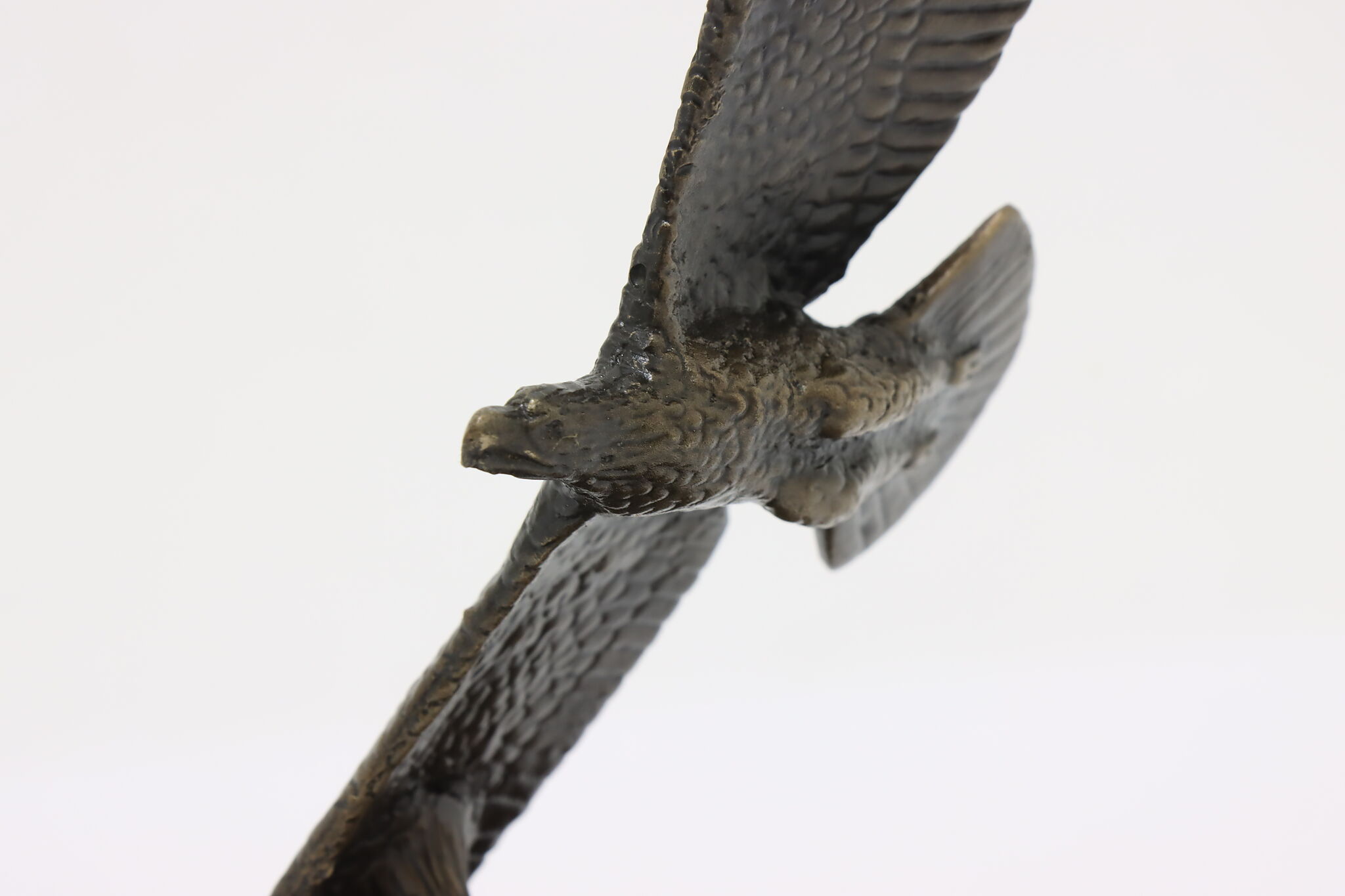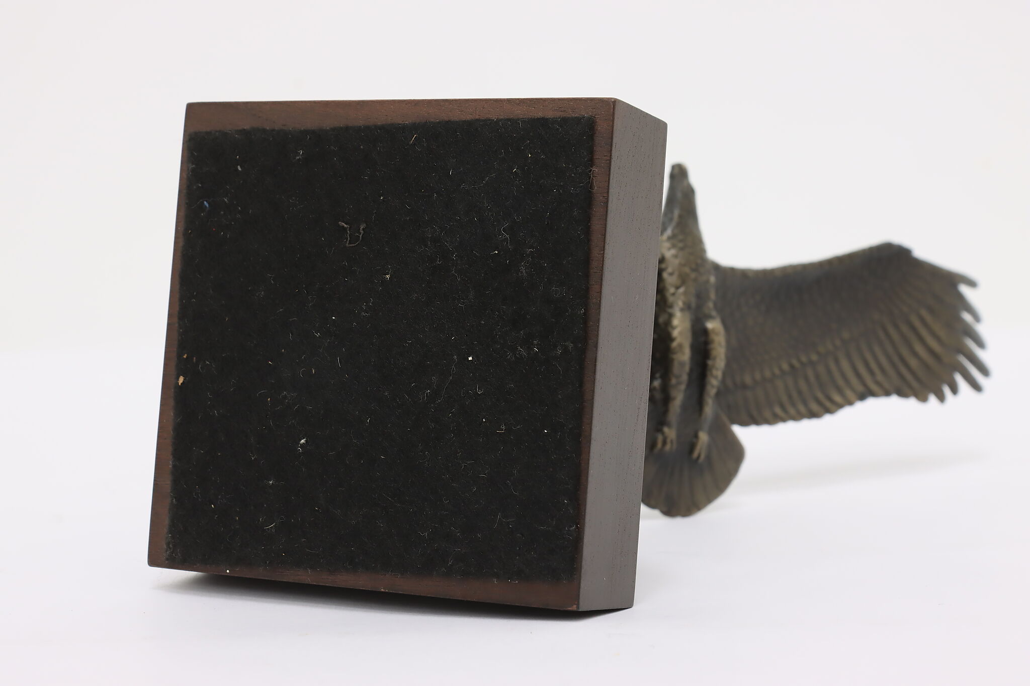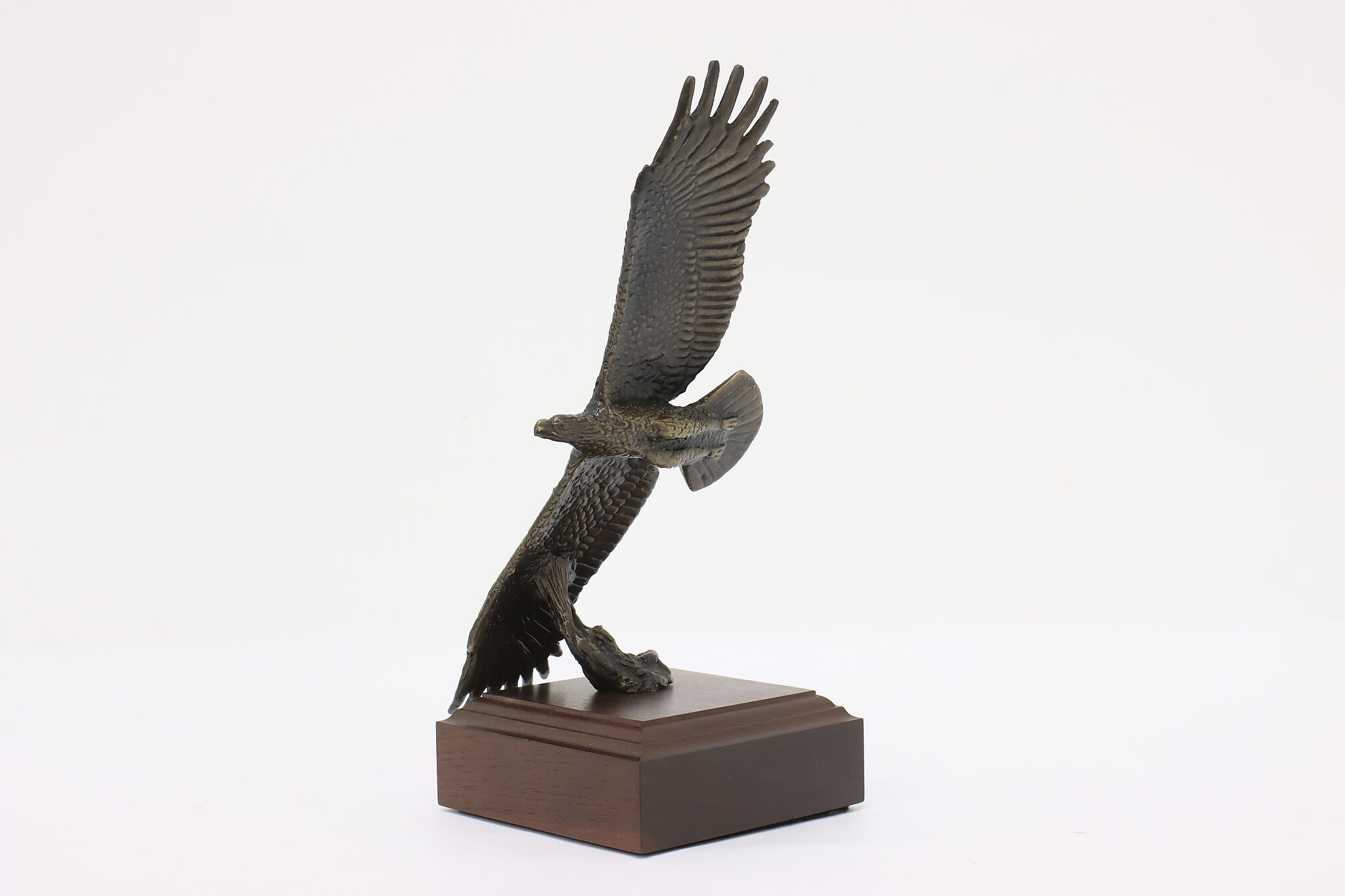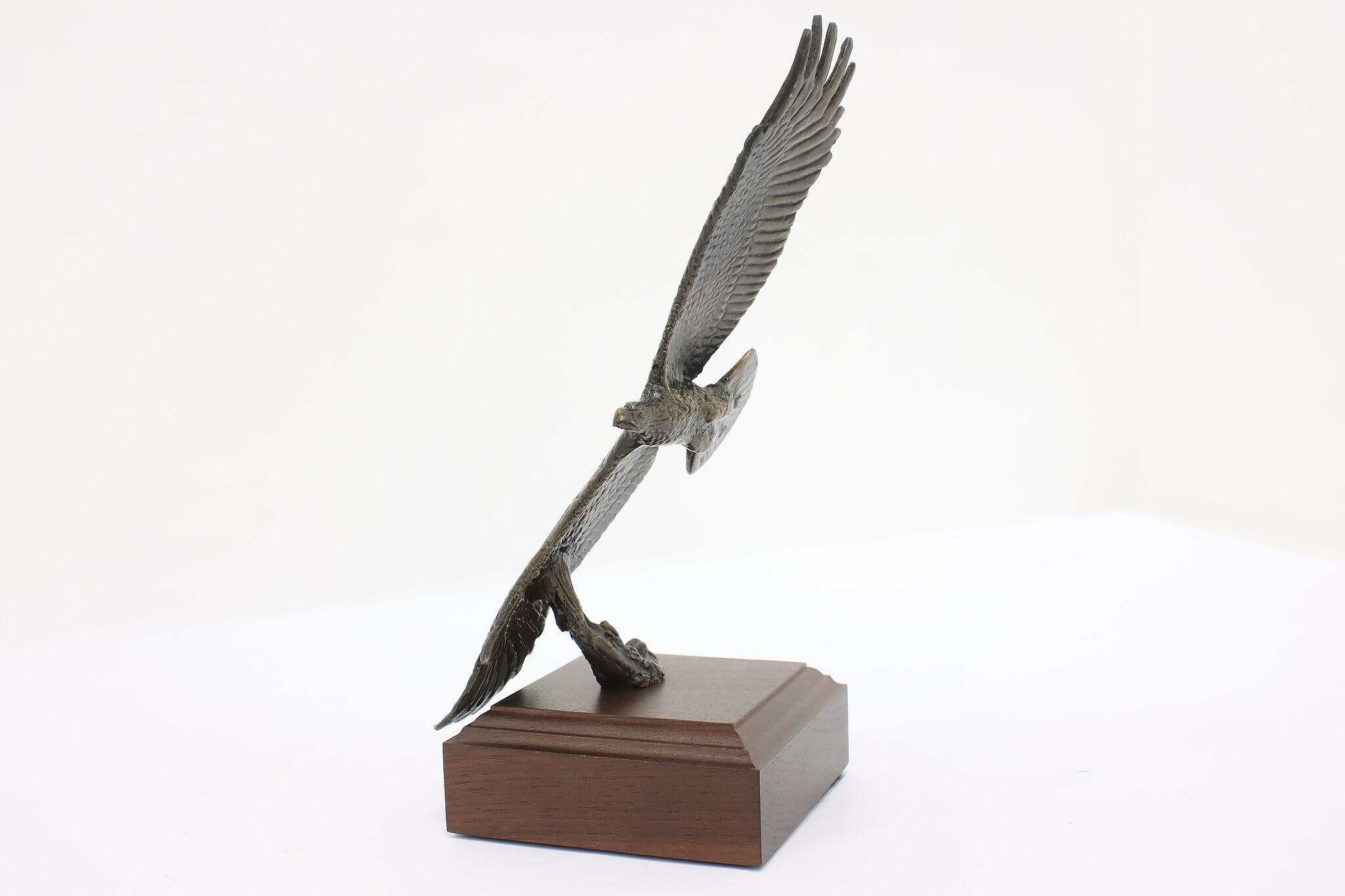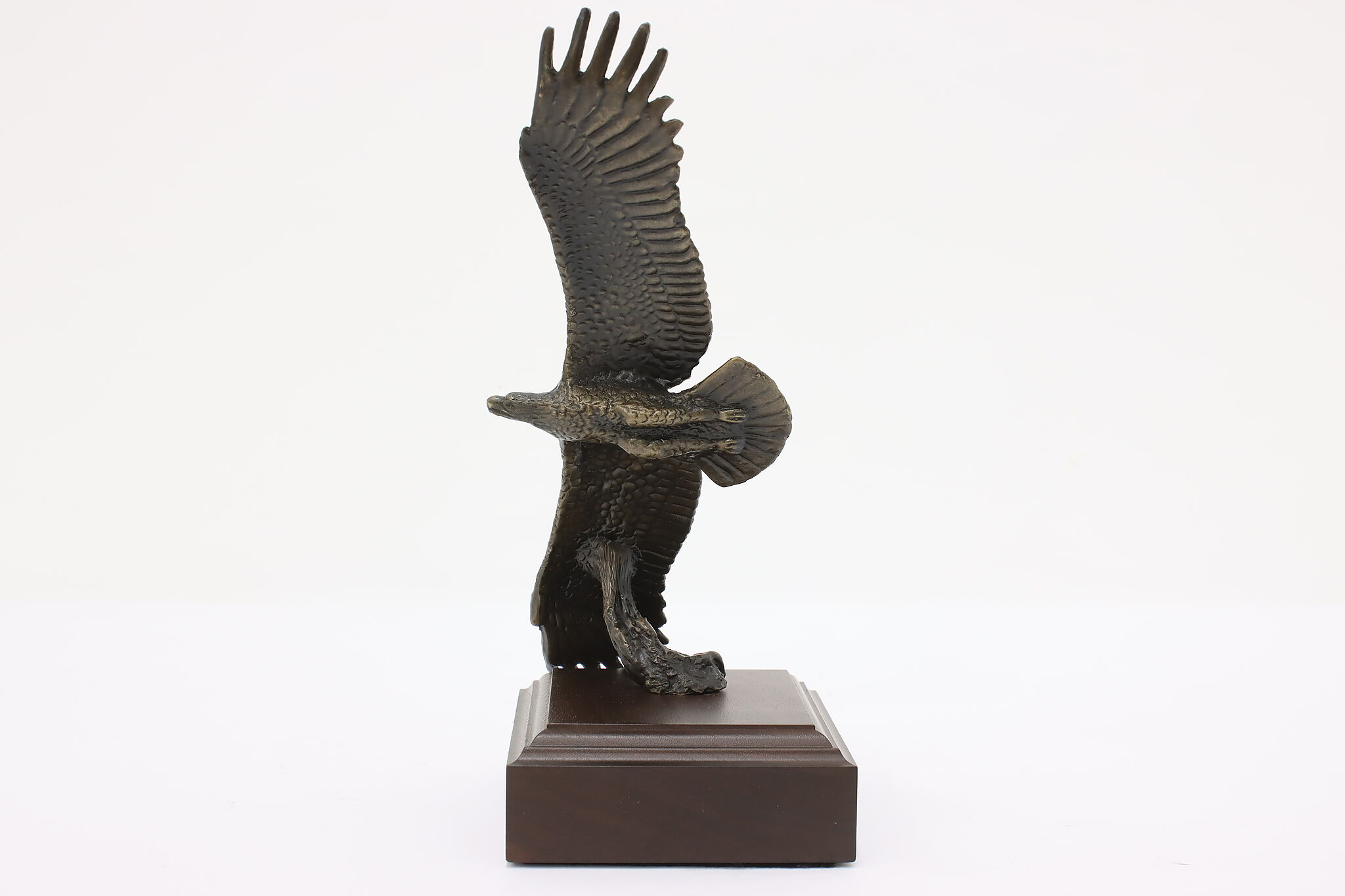 This sculpture of a soaring eagle is signed by Wally Shoop, a contemporary American Indian sculptor working since 1970 in Osceola, WI.