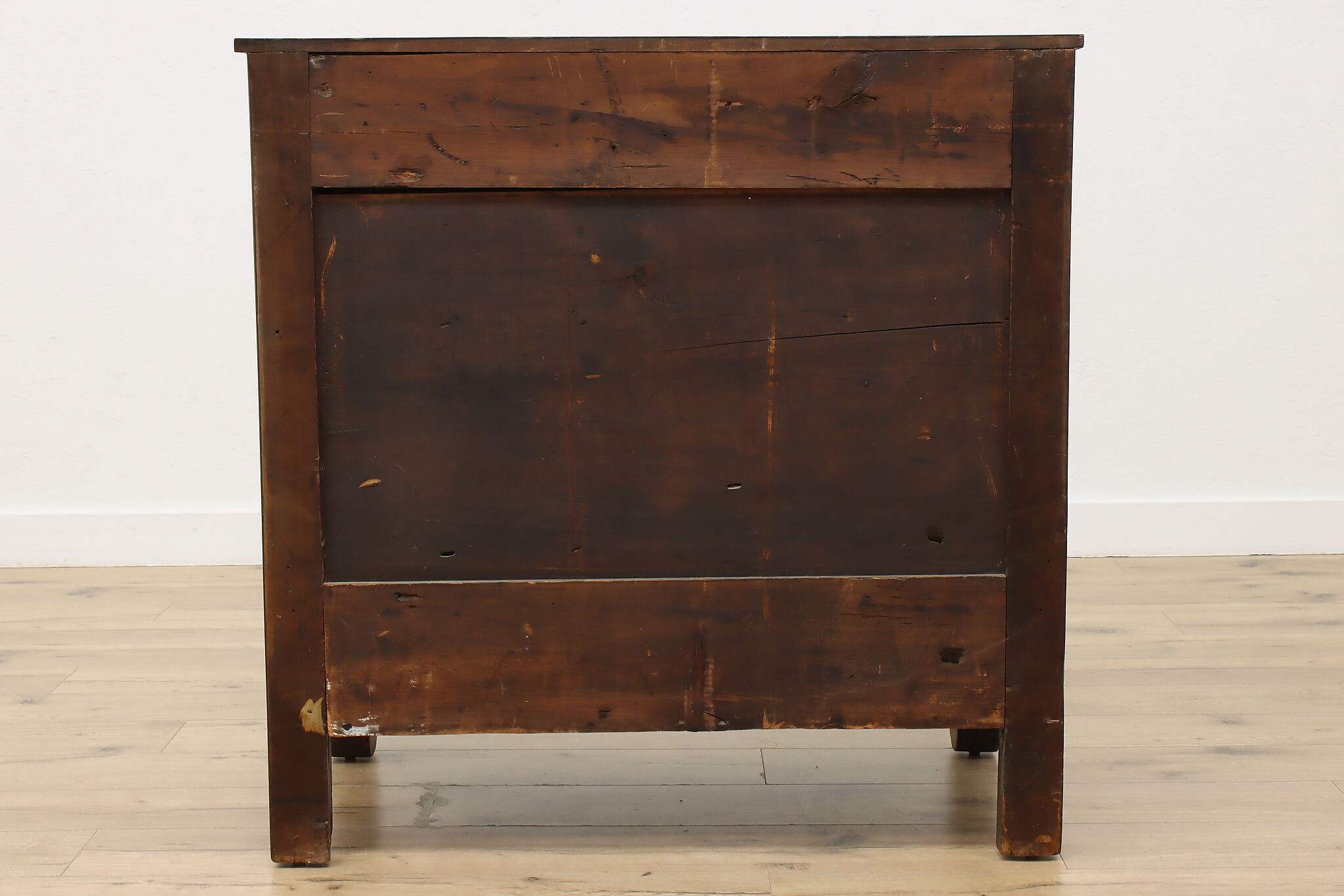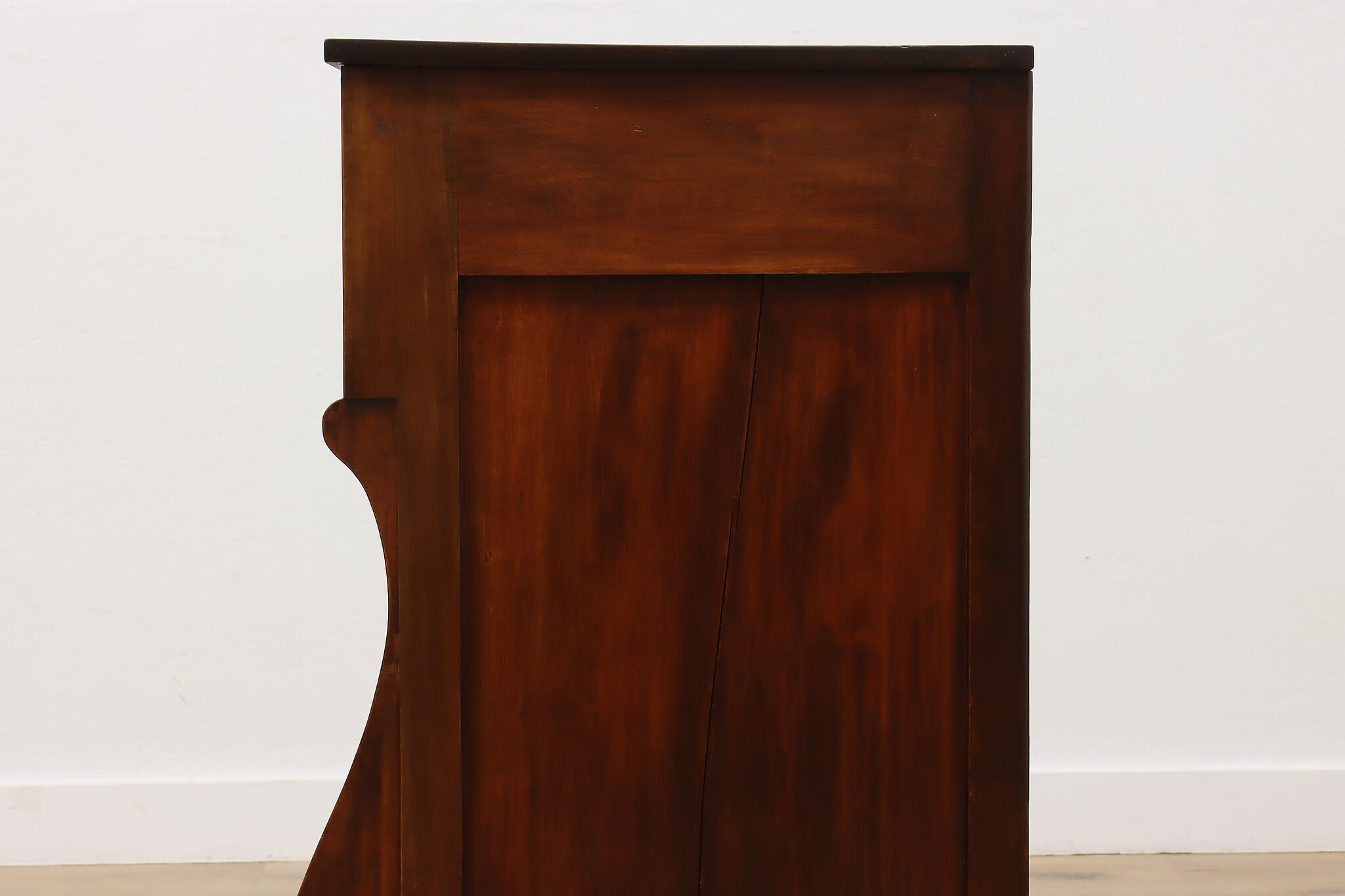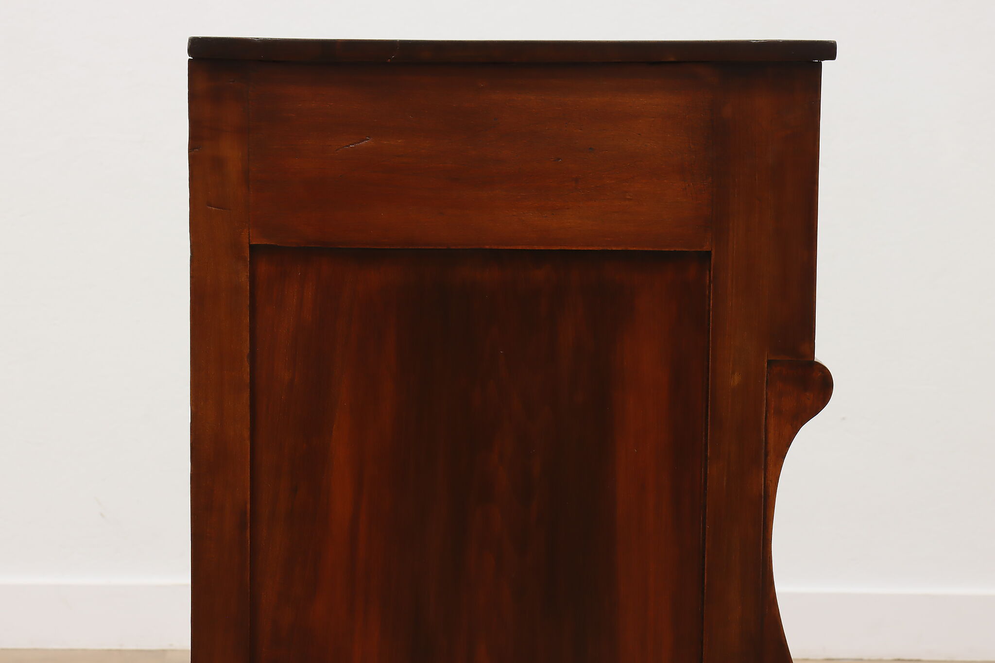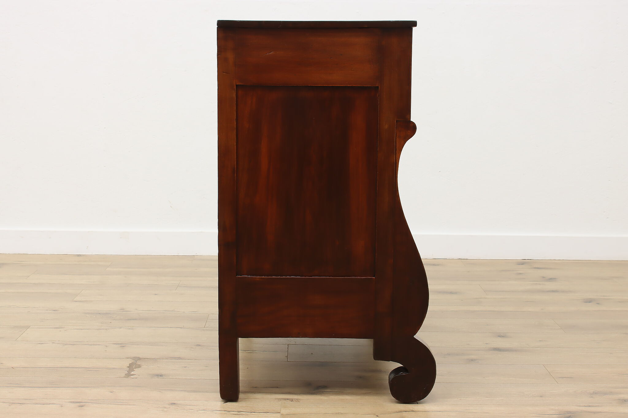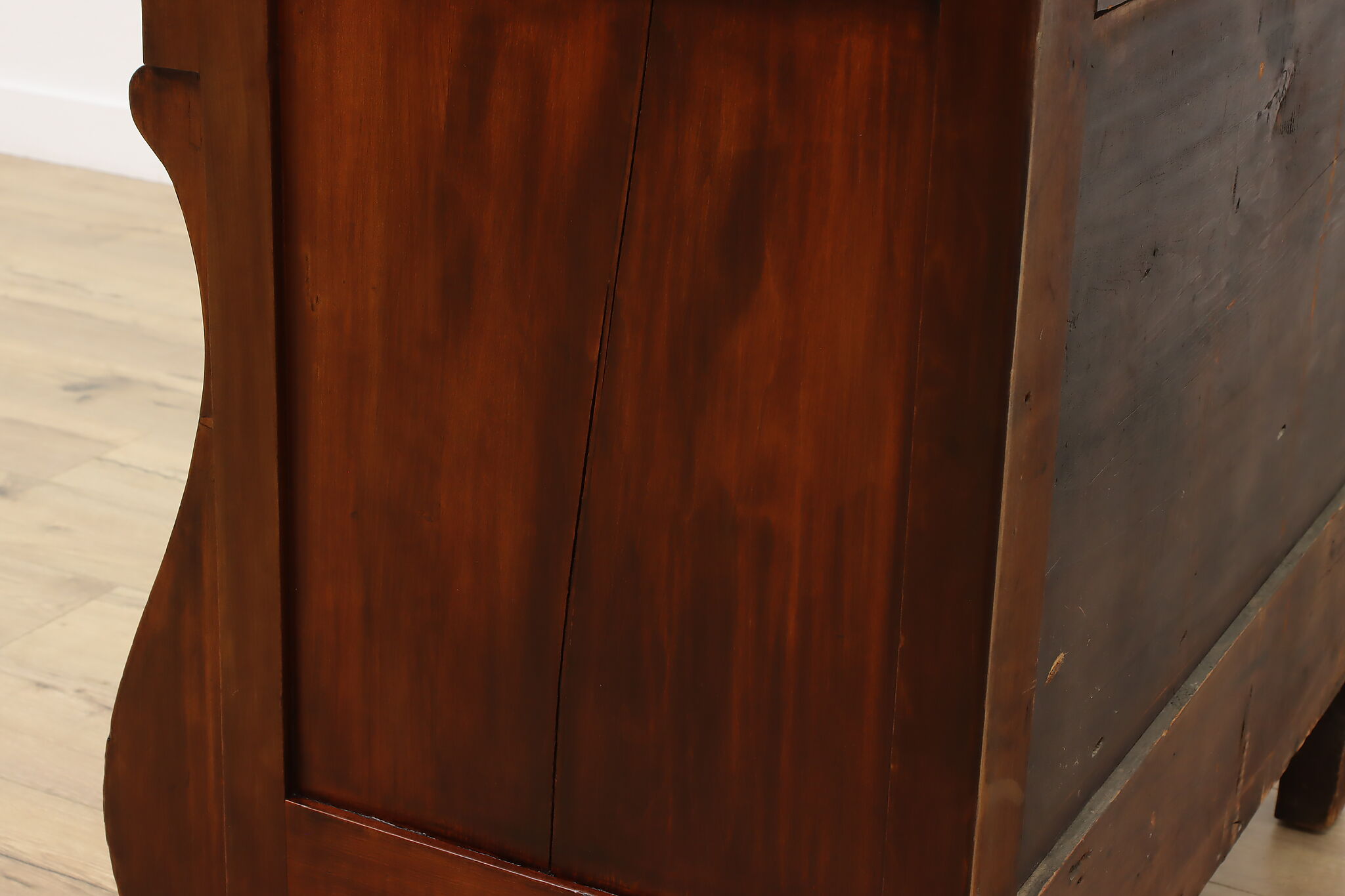 This Empire period dresser or tall chest has gorgeous bookmatched flame grain mahogany drawer fronts.