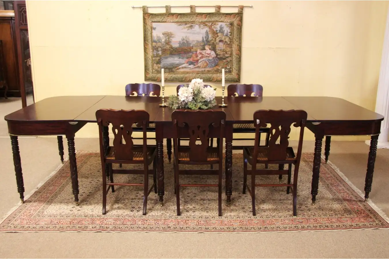 This is the finest American Empire banquet table we have ever seen. Hand-made of solid mahogany about 1820, we were told it was made in New York state.