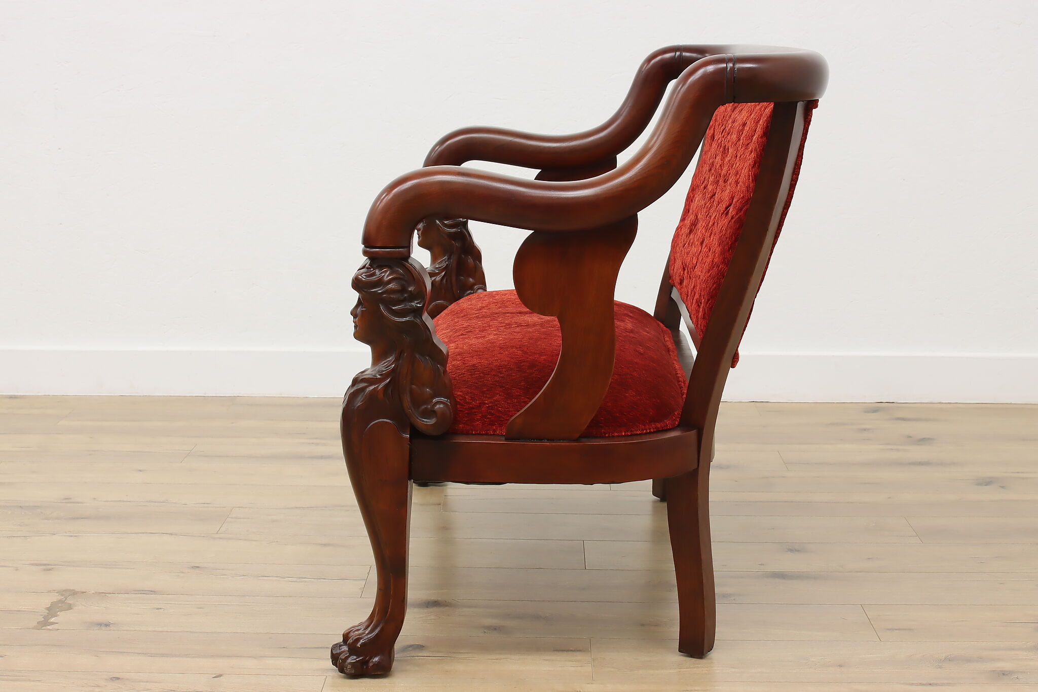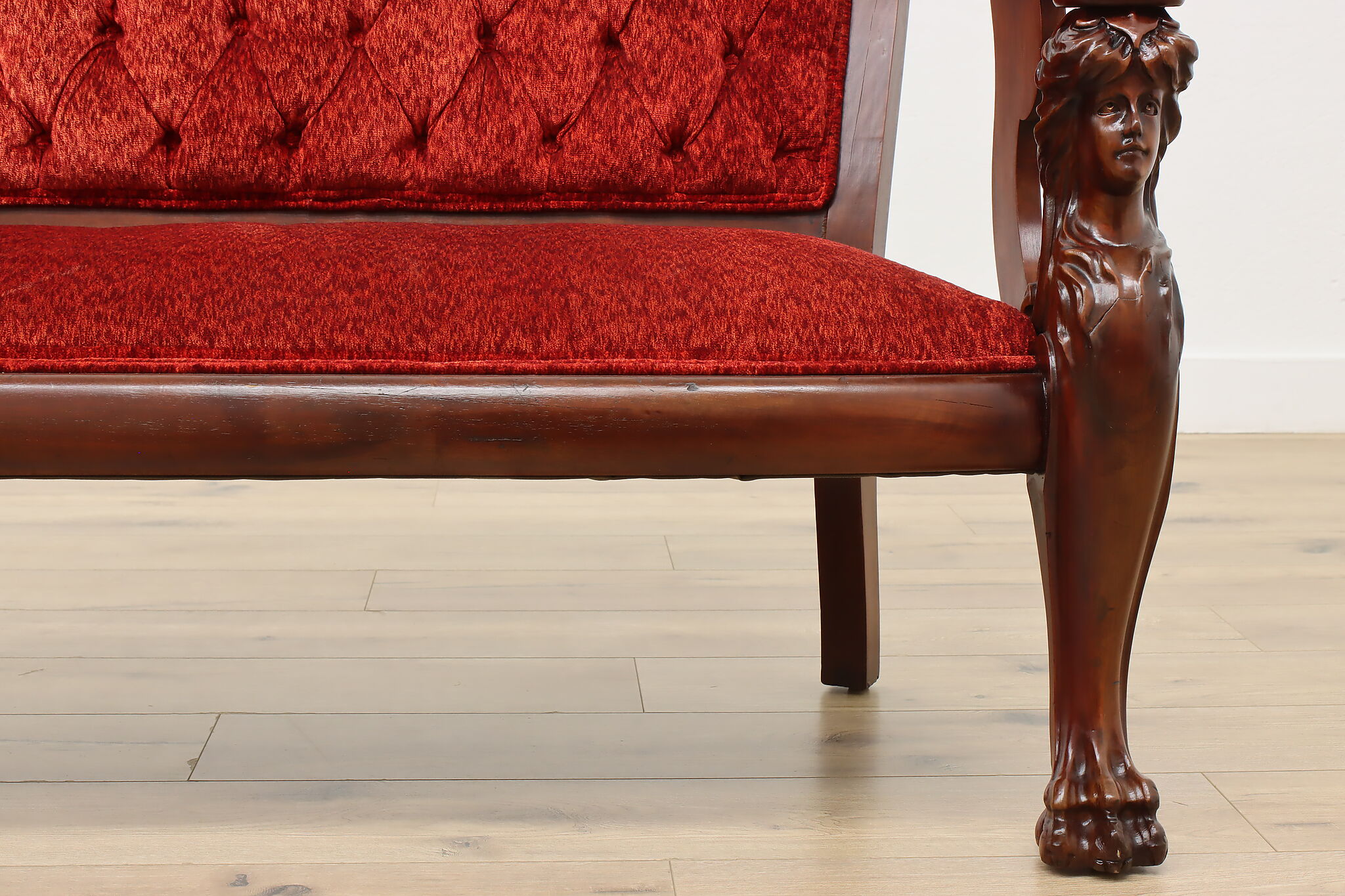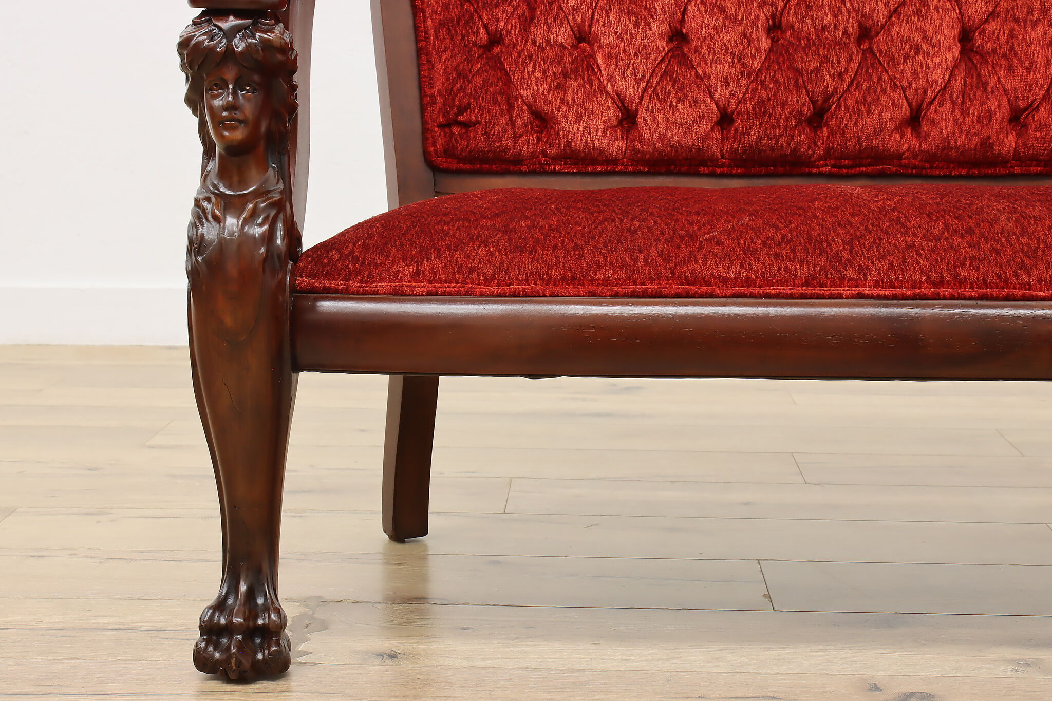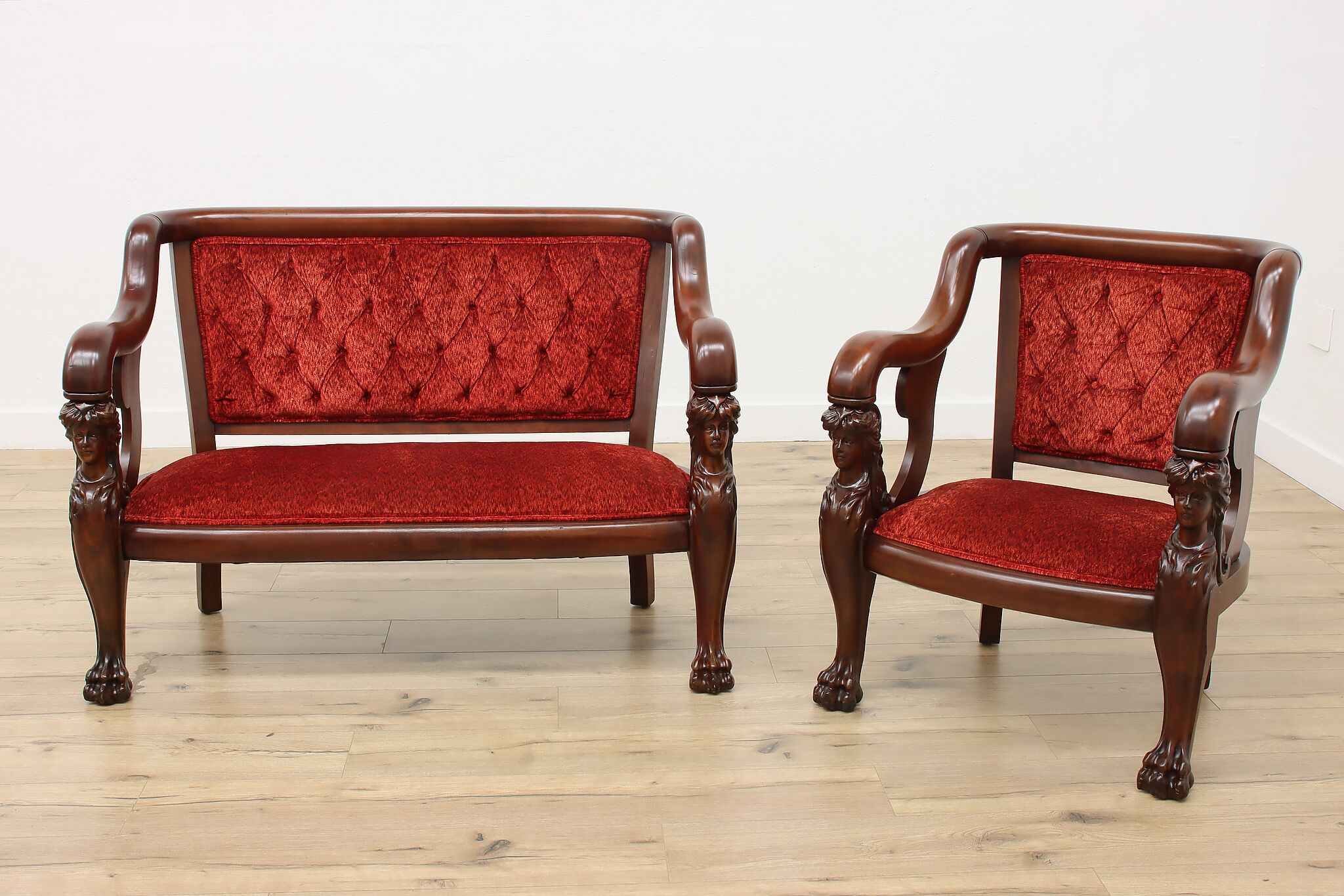 This darling Empire loveseat and chair set has beautiful sculptures of women with lion paw feet.