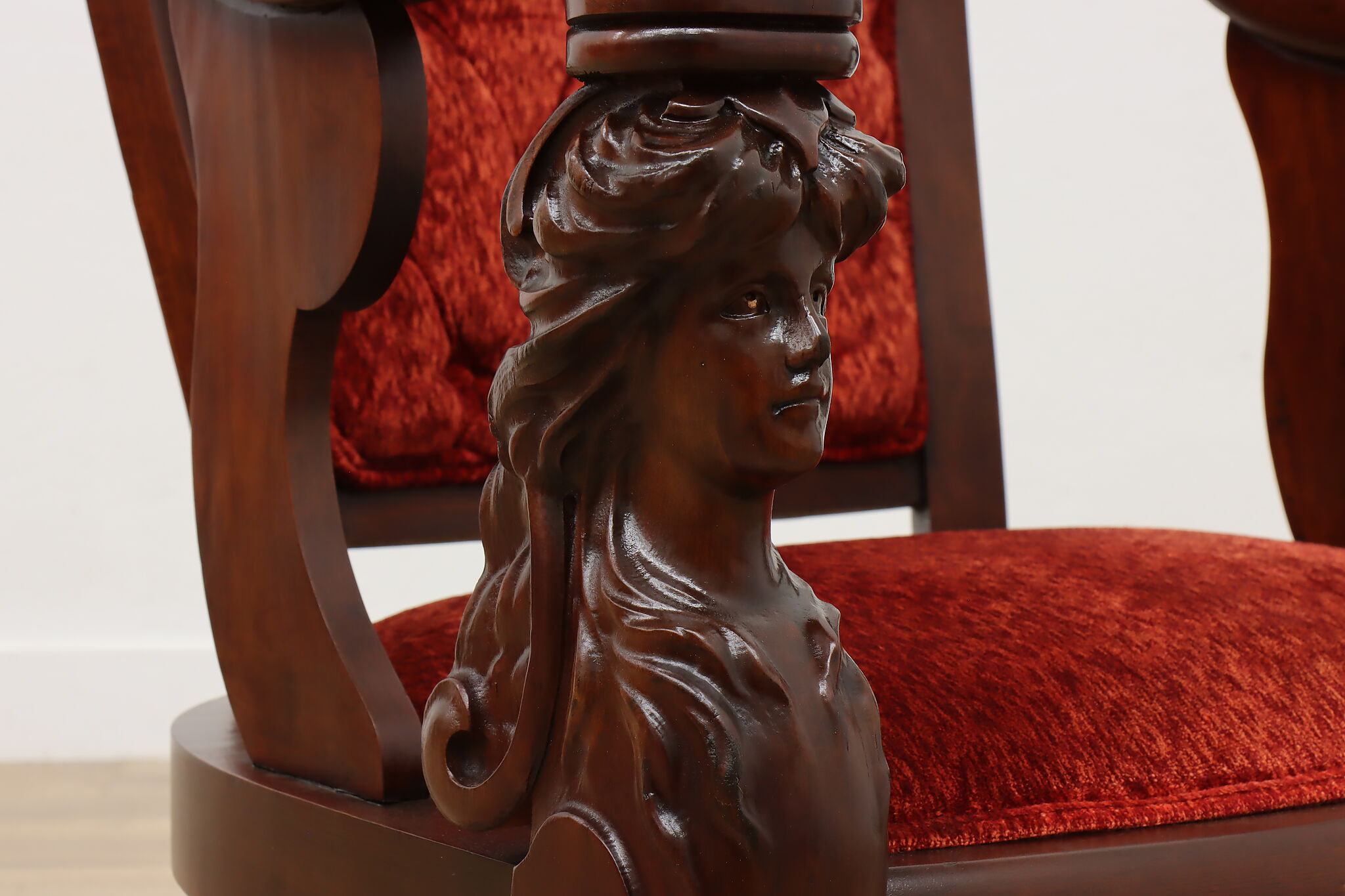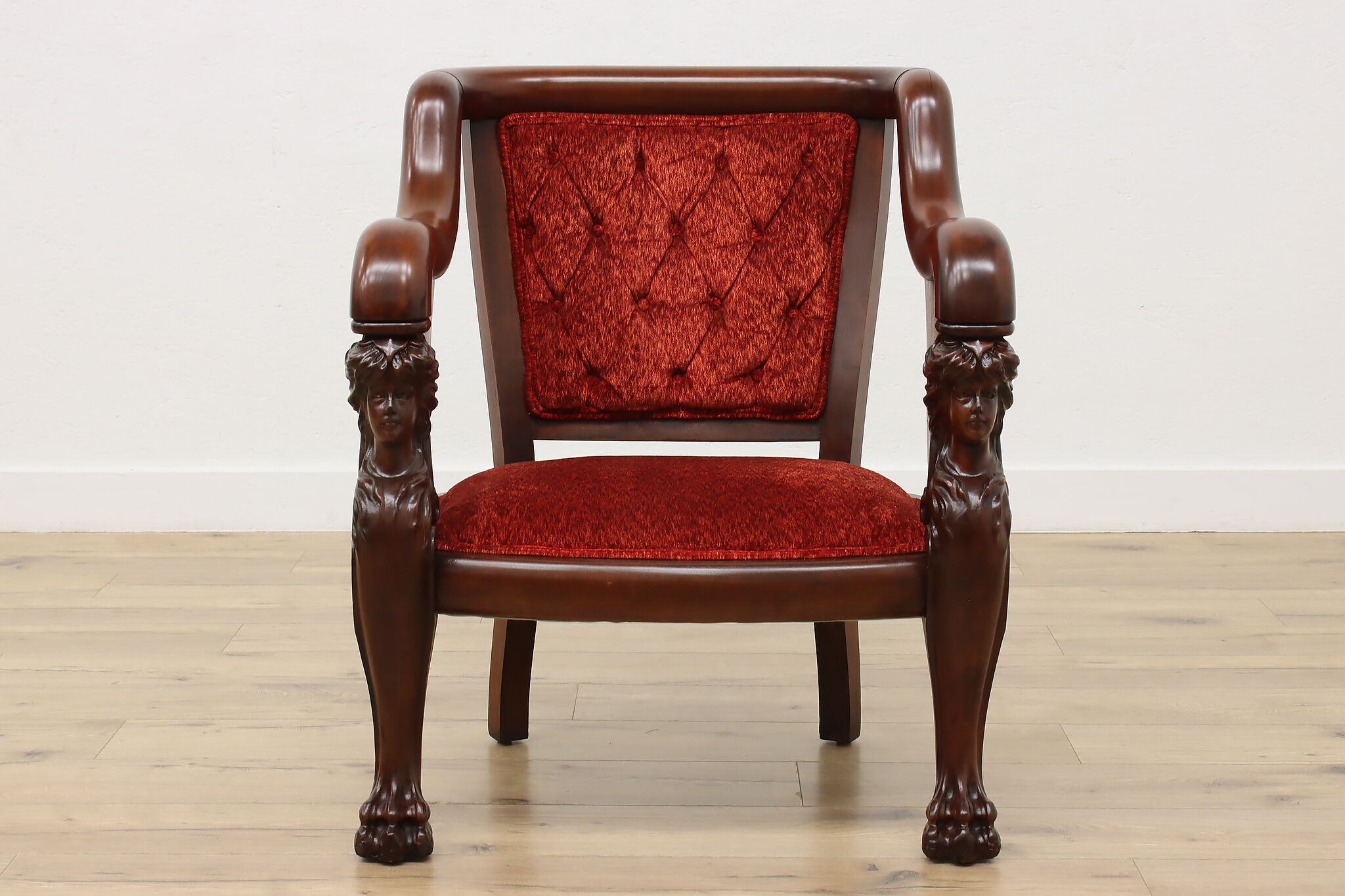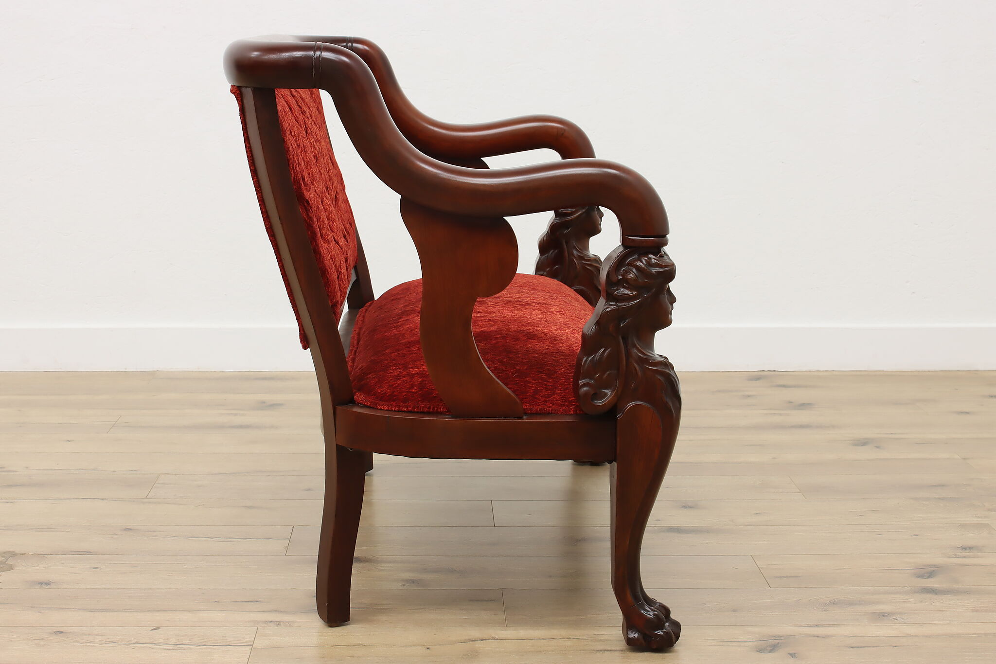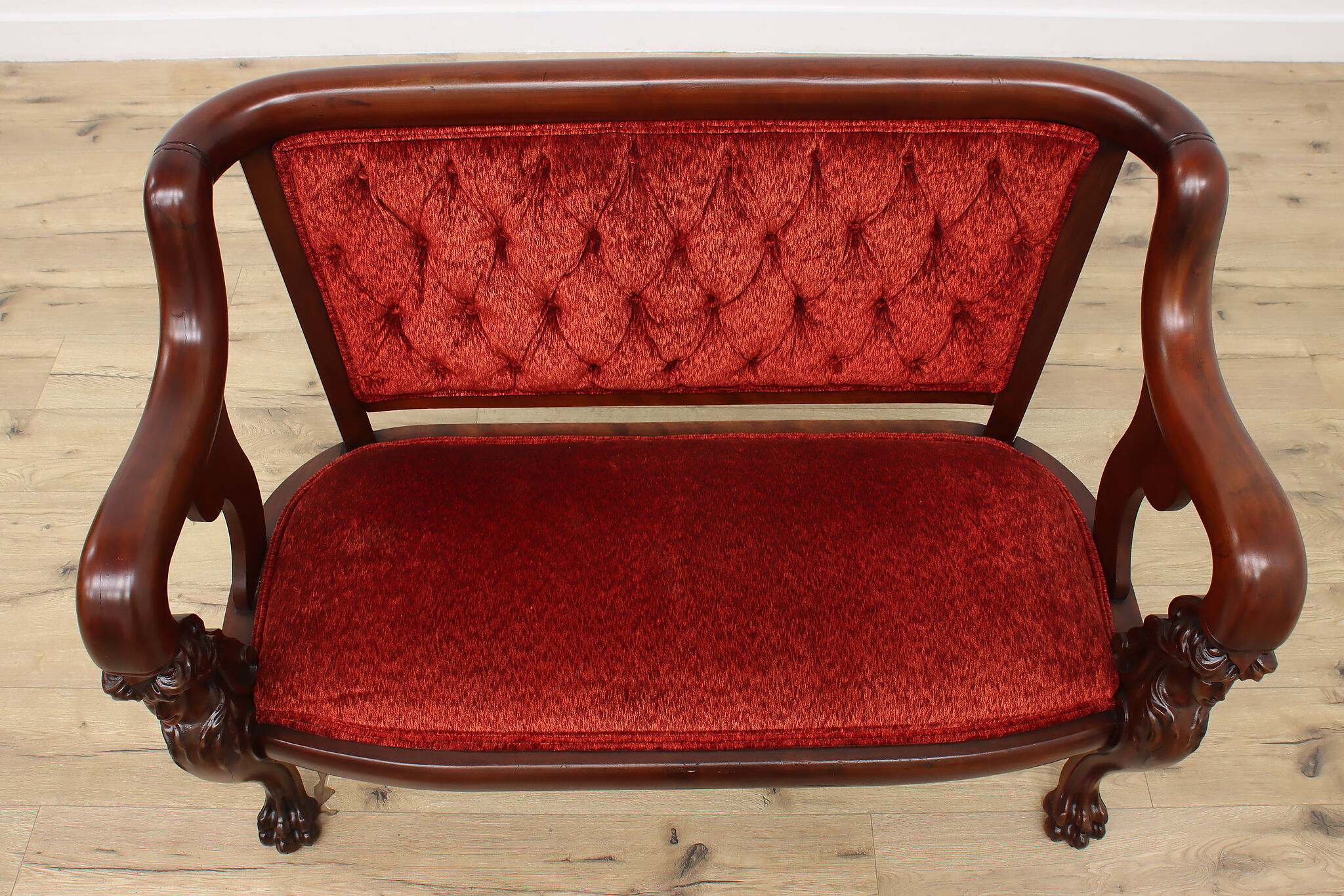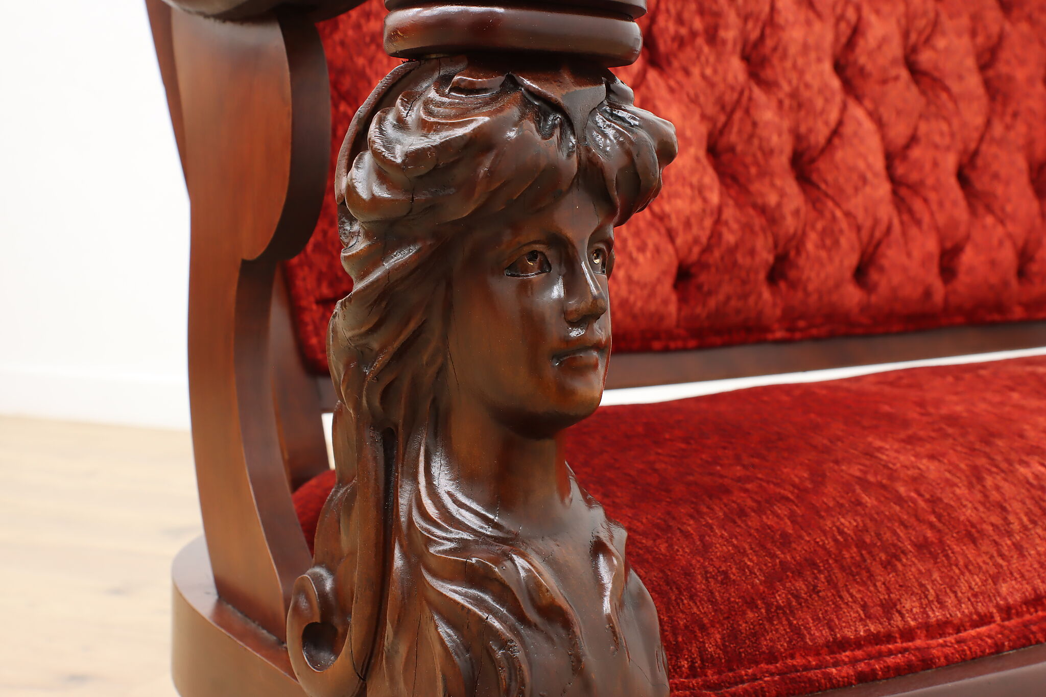 This darling Empire loveseat and chair set has beautiful sculptures of women with lion paw feet.
