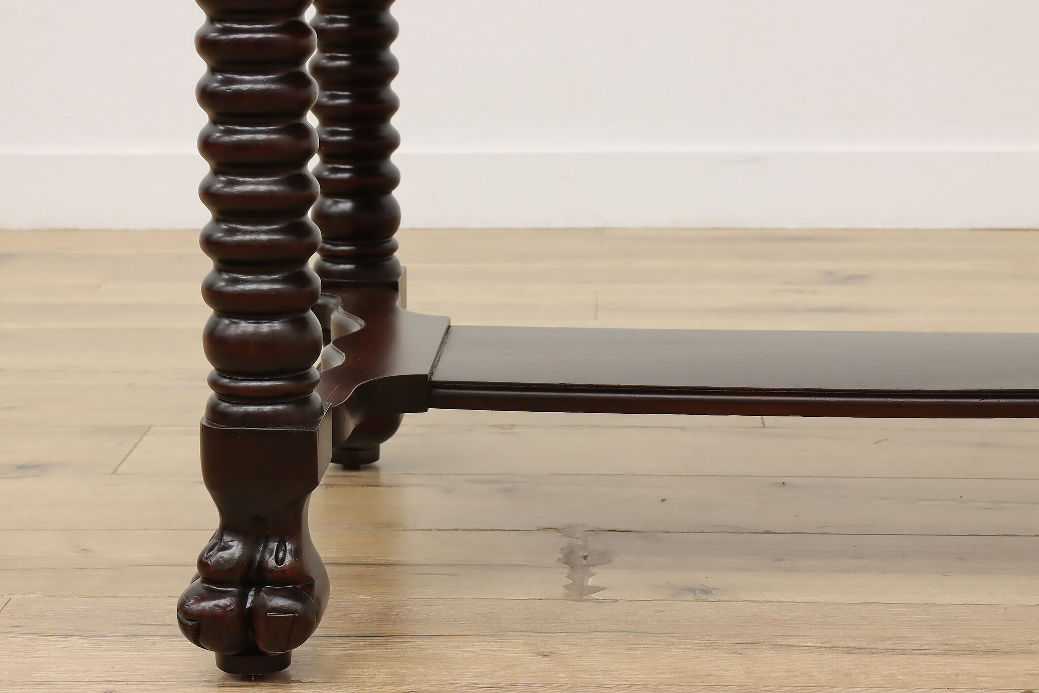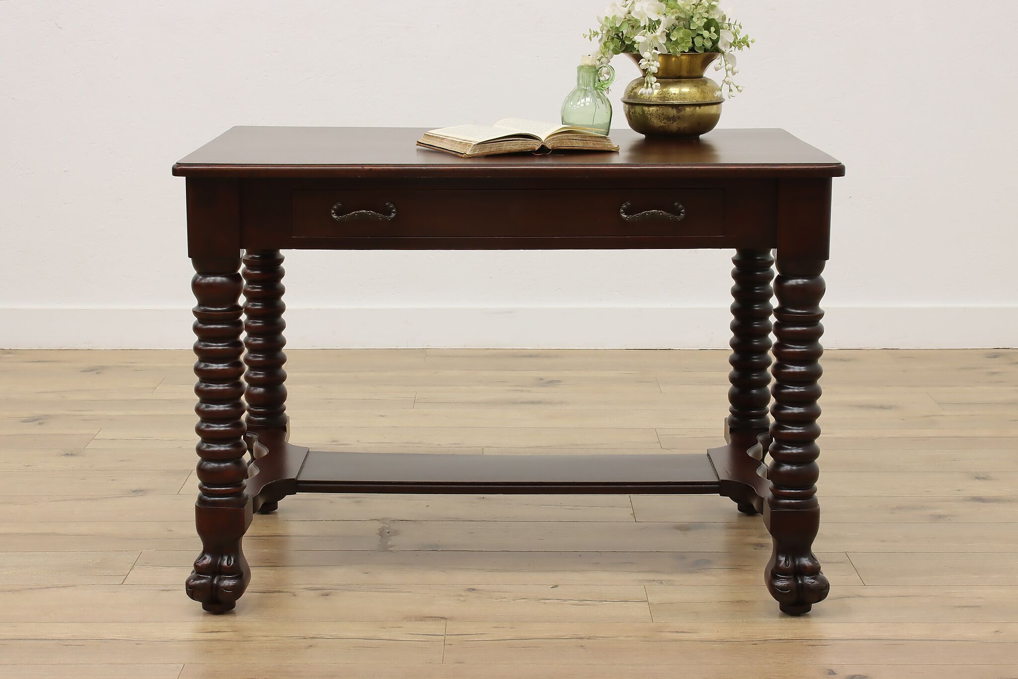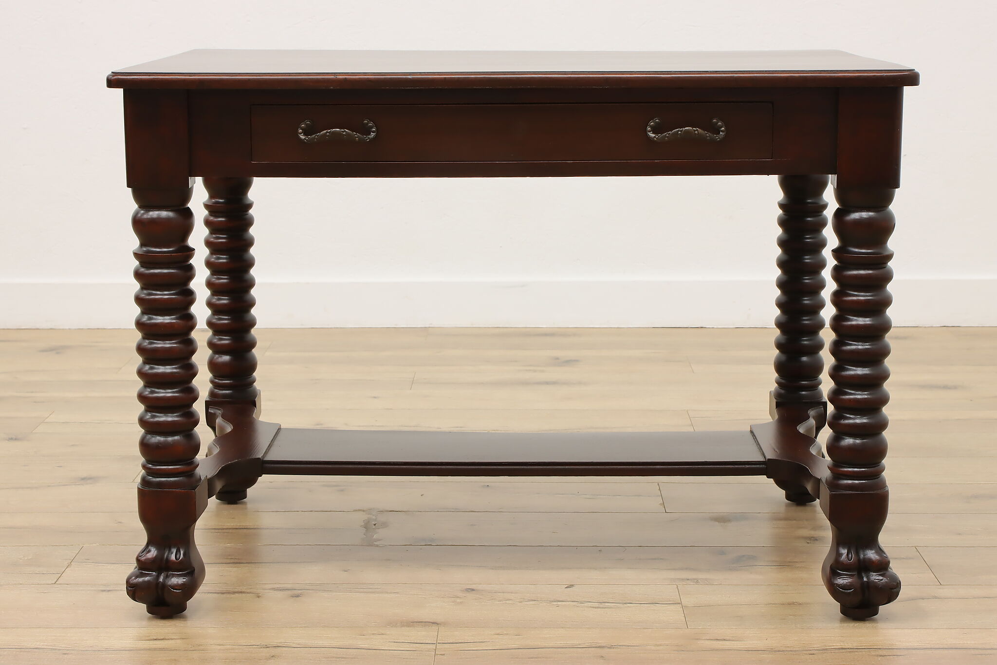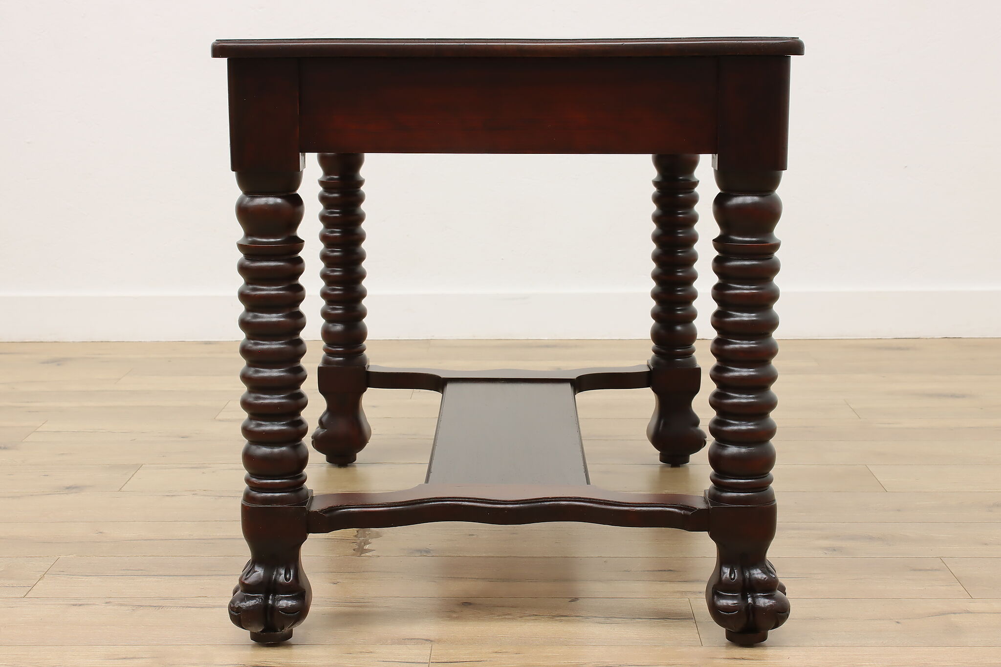 Designed after the Empire furniture period, this library desk or table has spiral legs and paw feet for an extra touch of charm.