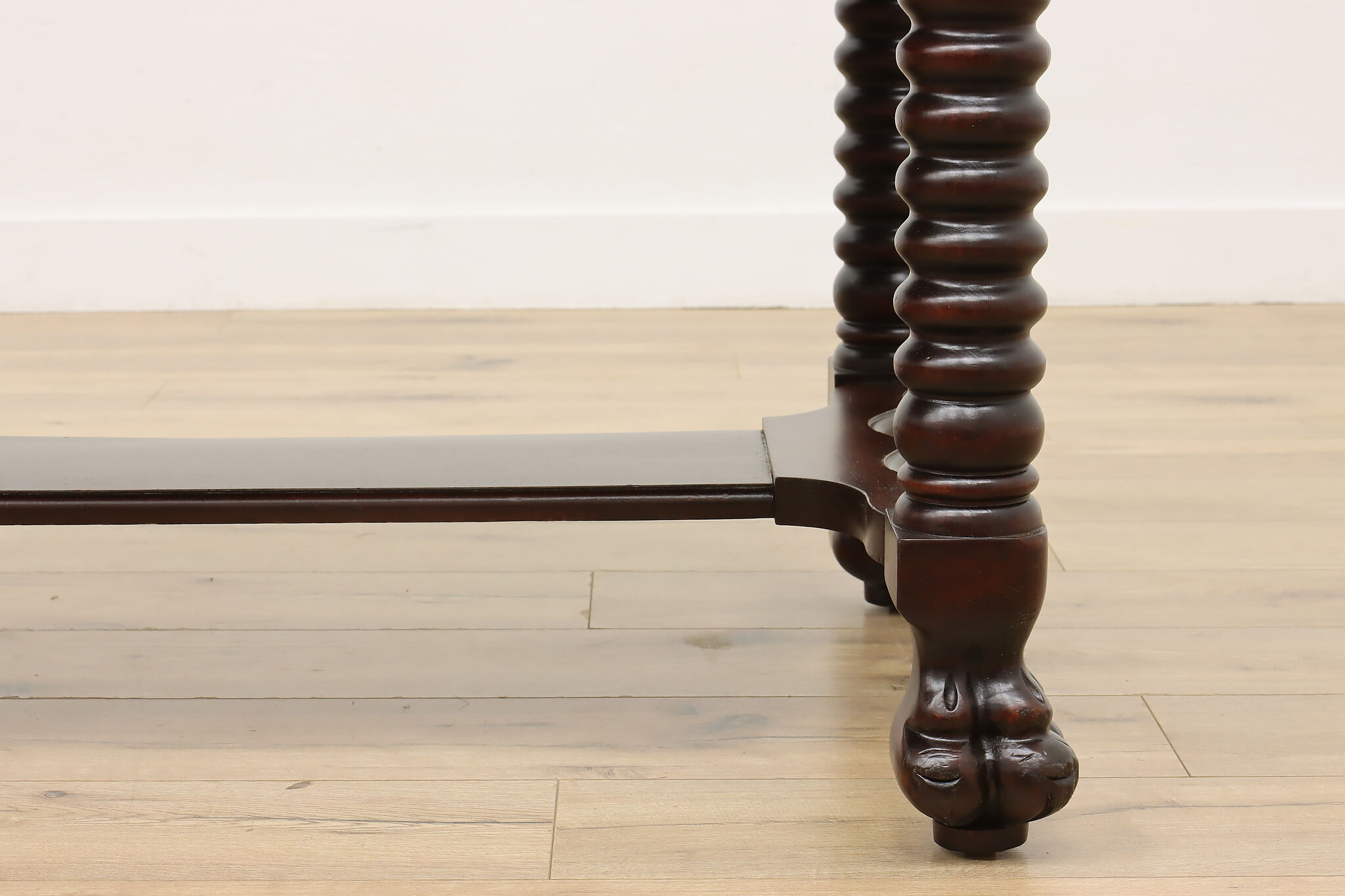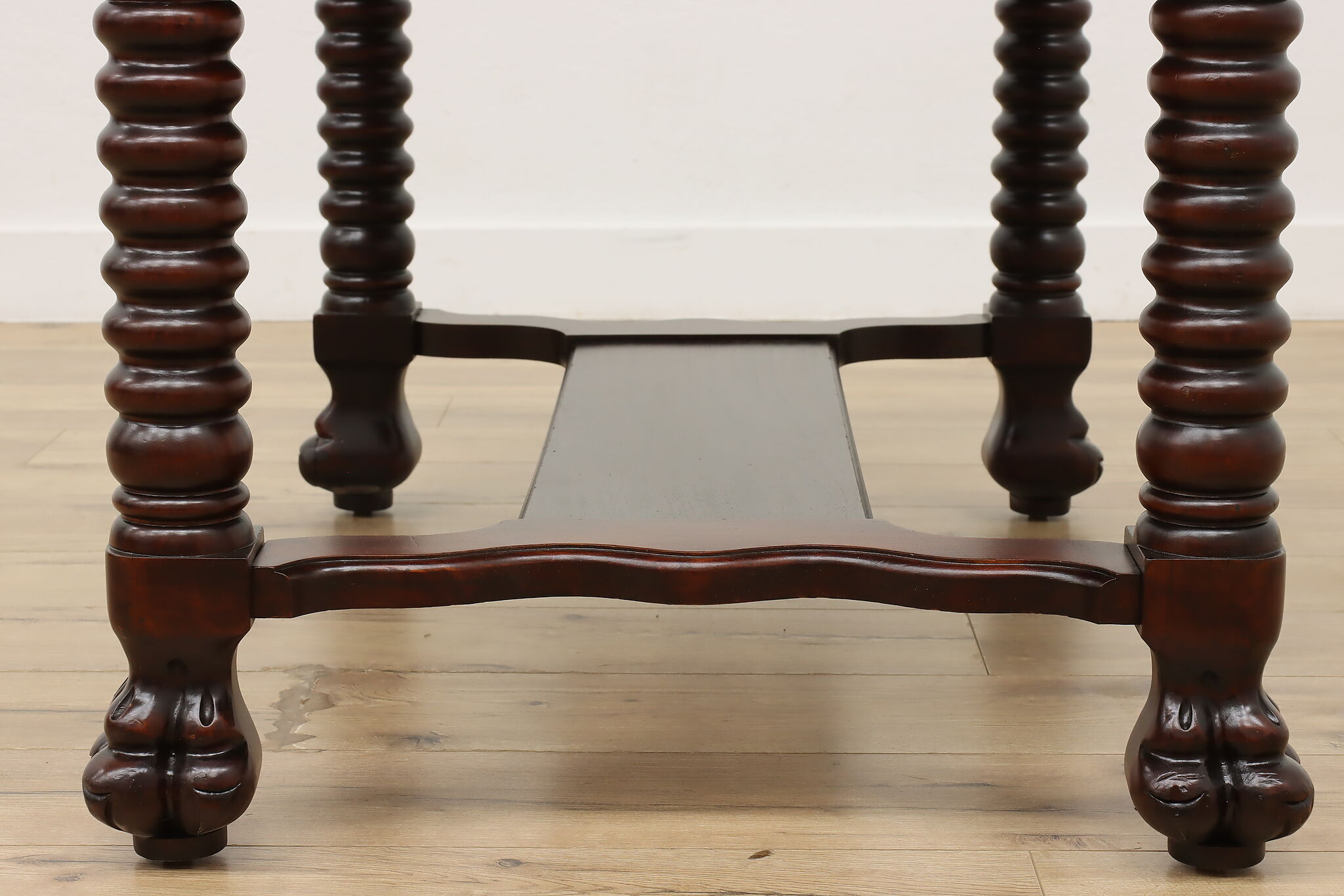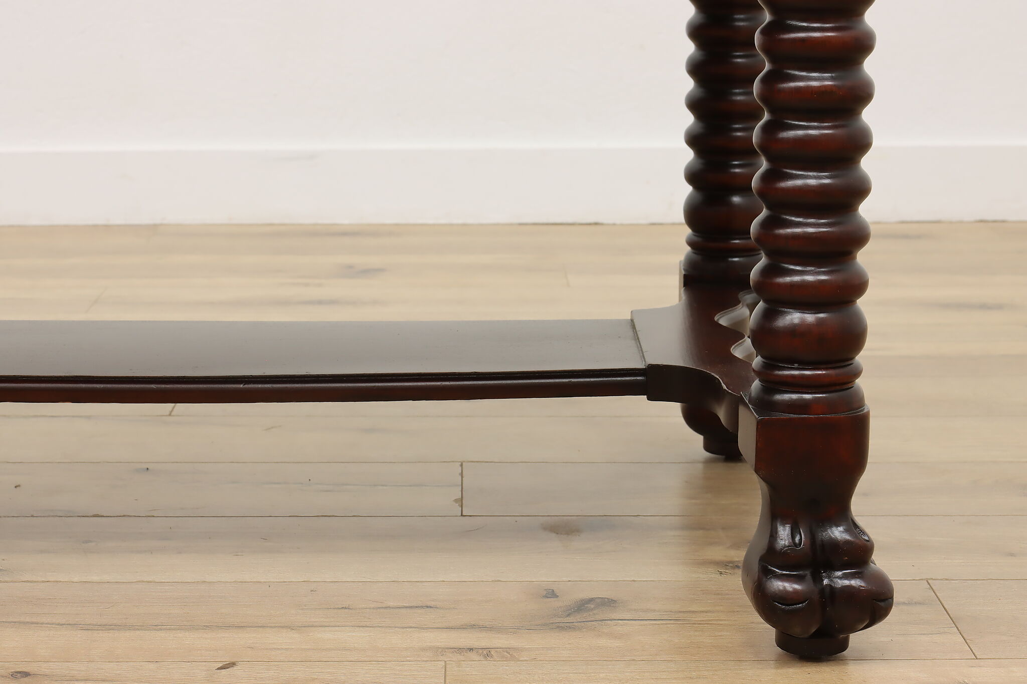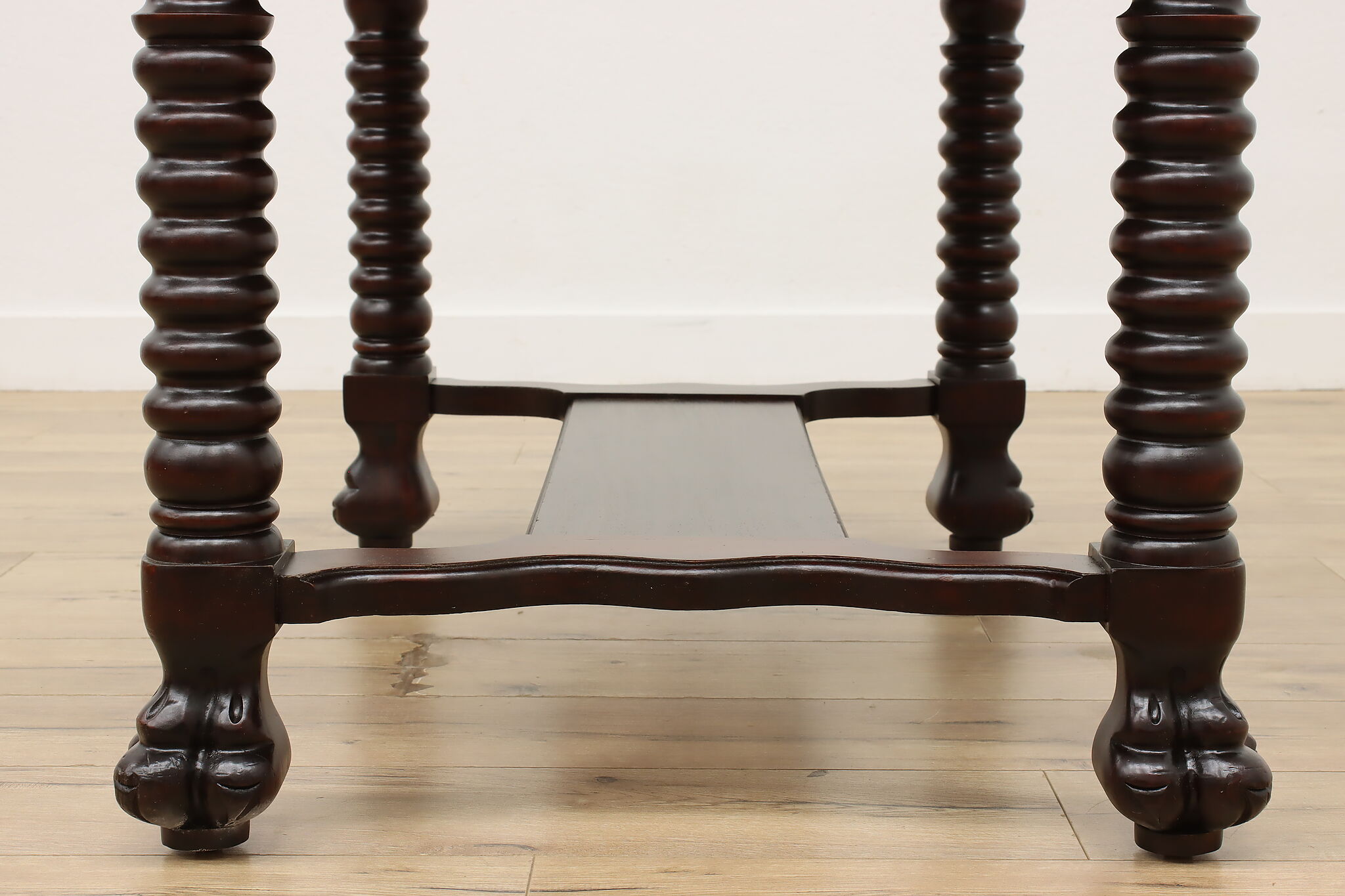 Designed after the Empire furniture period, this library desk or table has spiral legs and paw feet for an extra touch of charm.