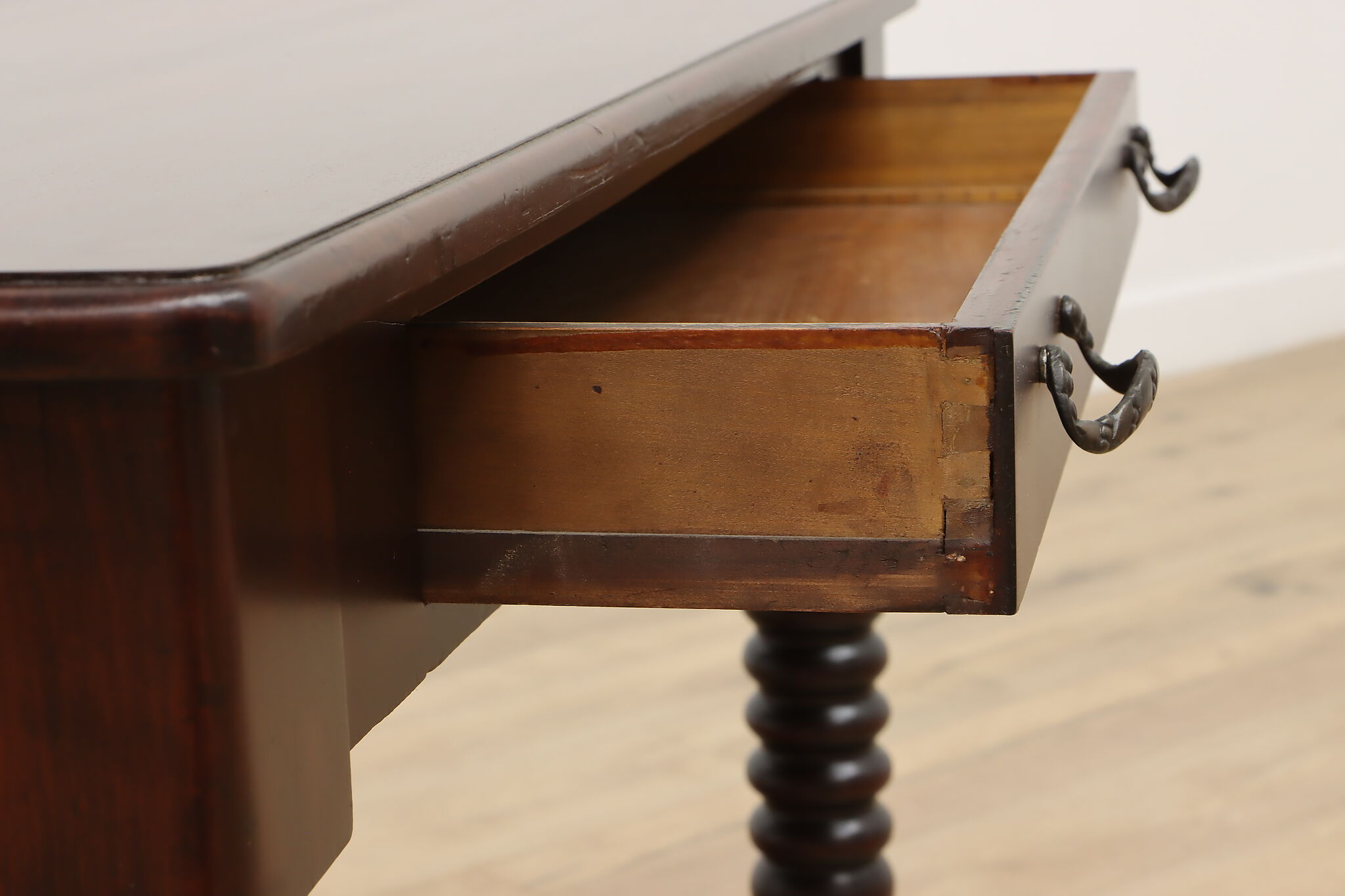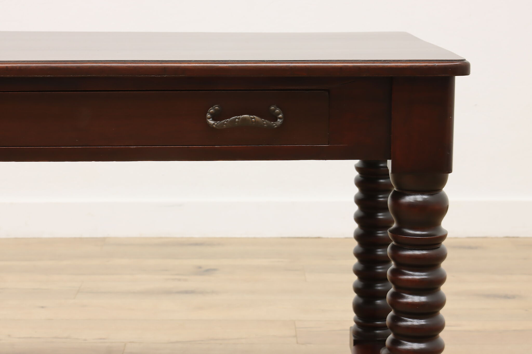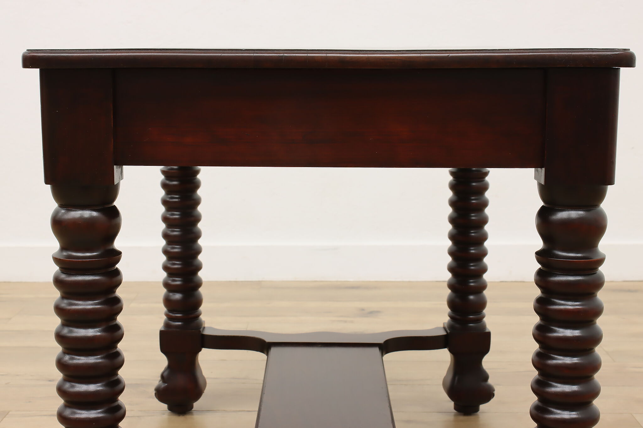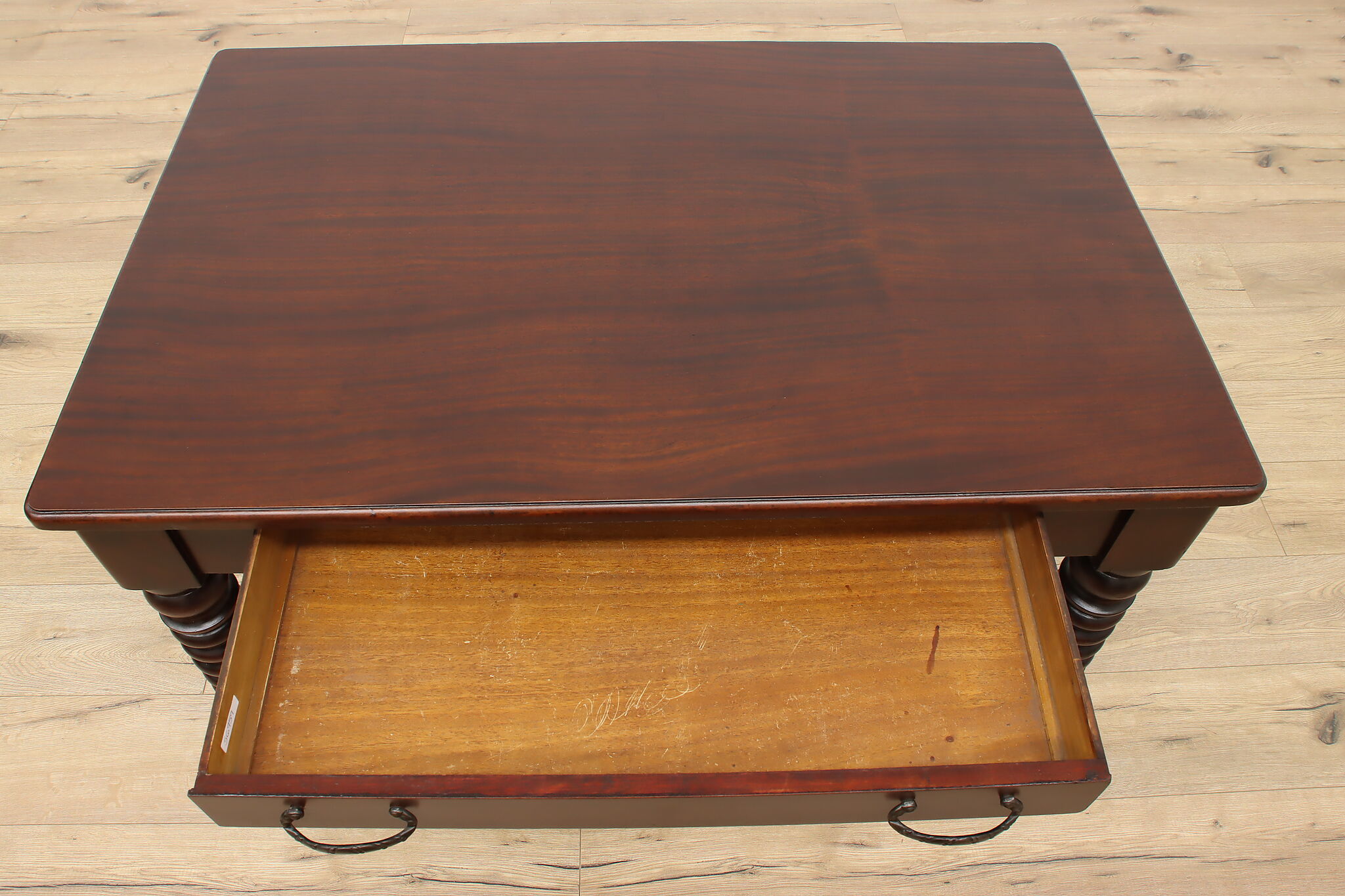 Designed after the Empire furniture period, this library desk or table has spiral legs and paw feet for an extra touch of charm.