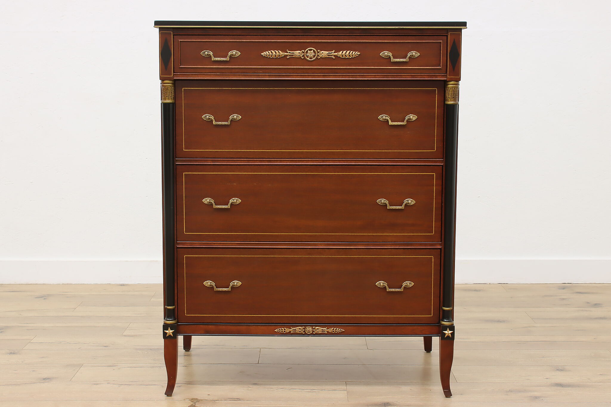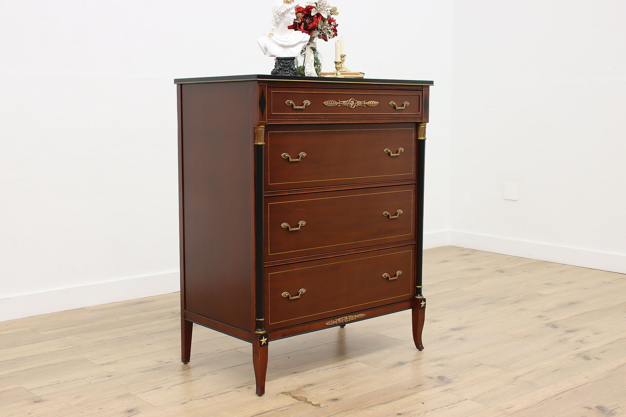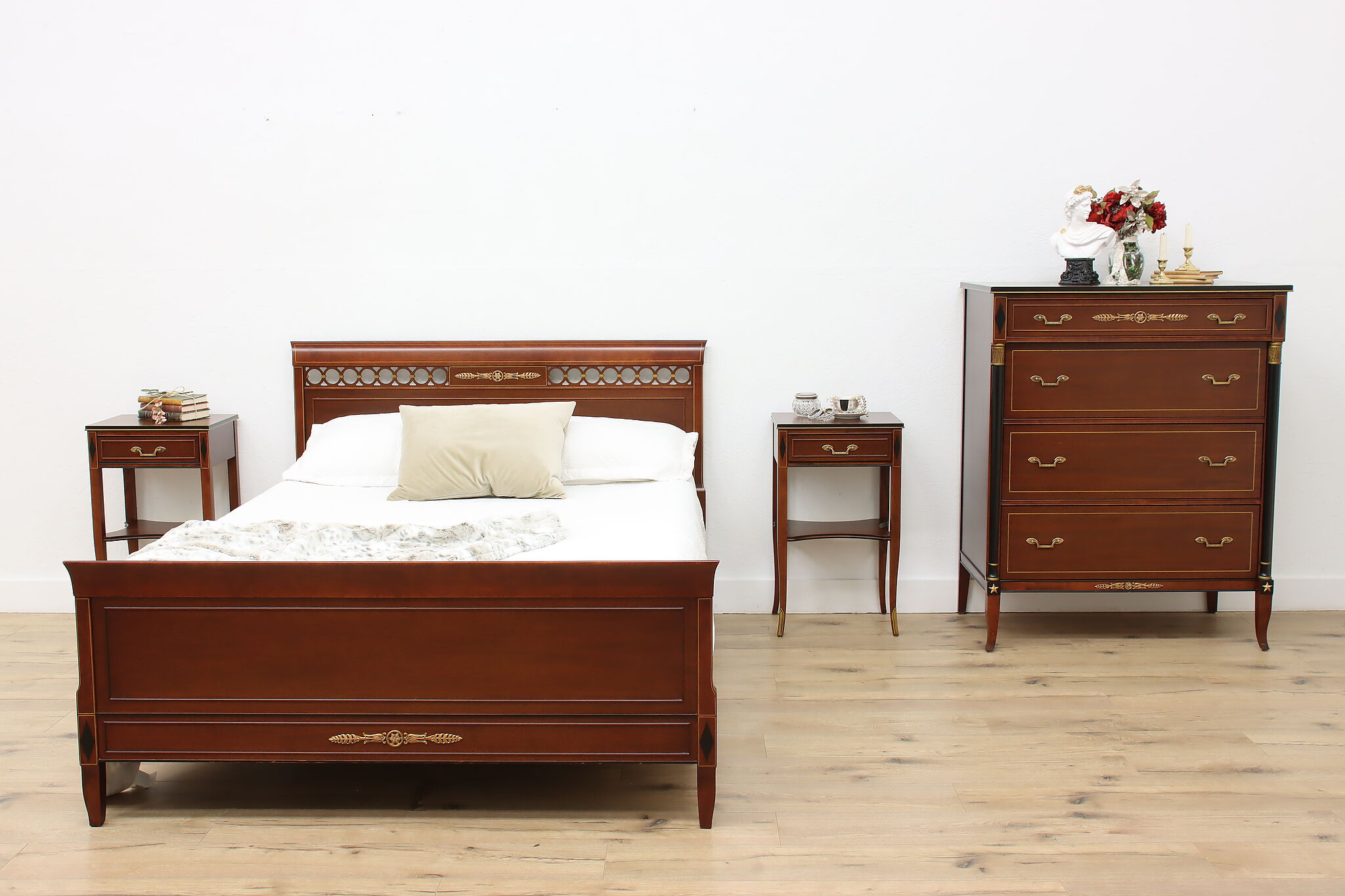 This fantastic five piece bedroom set is in the gorgeous French Empire design, fit only for the royalist of households.