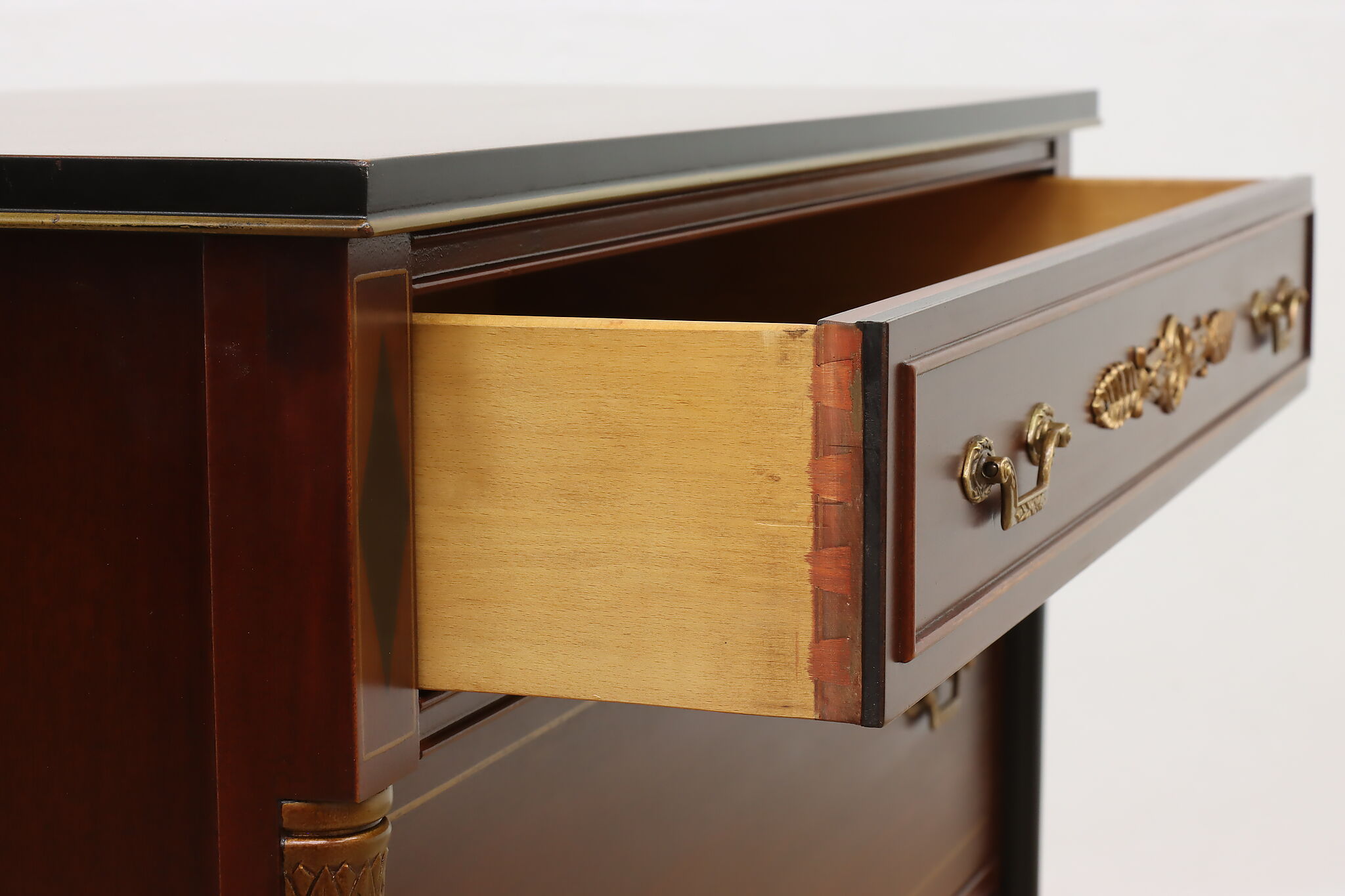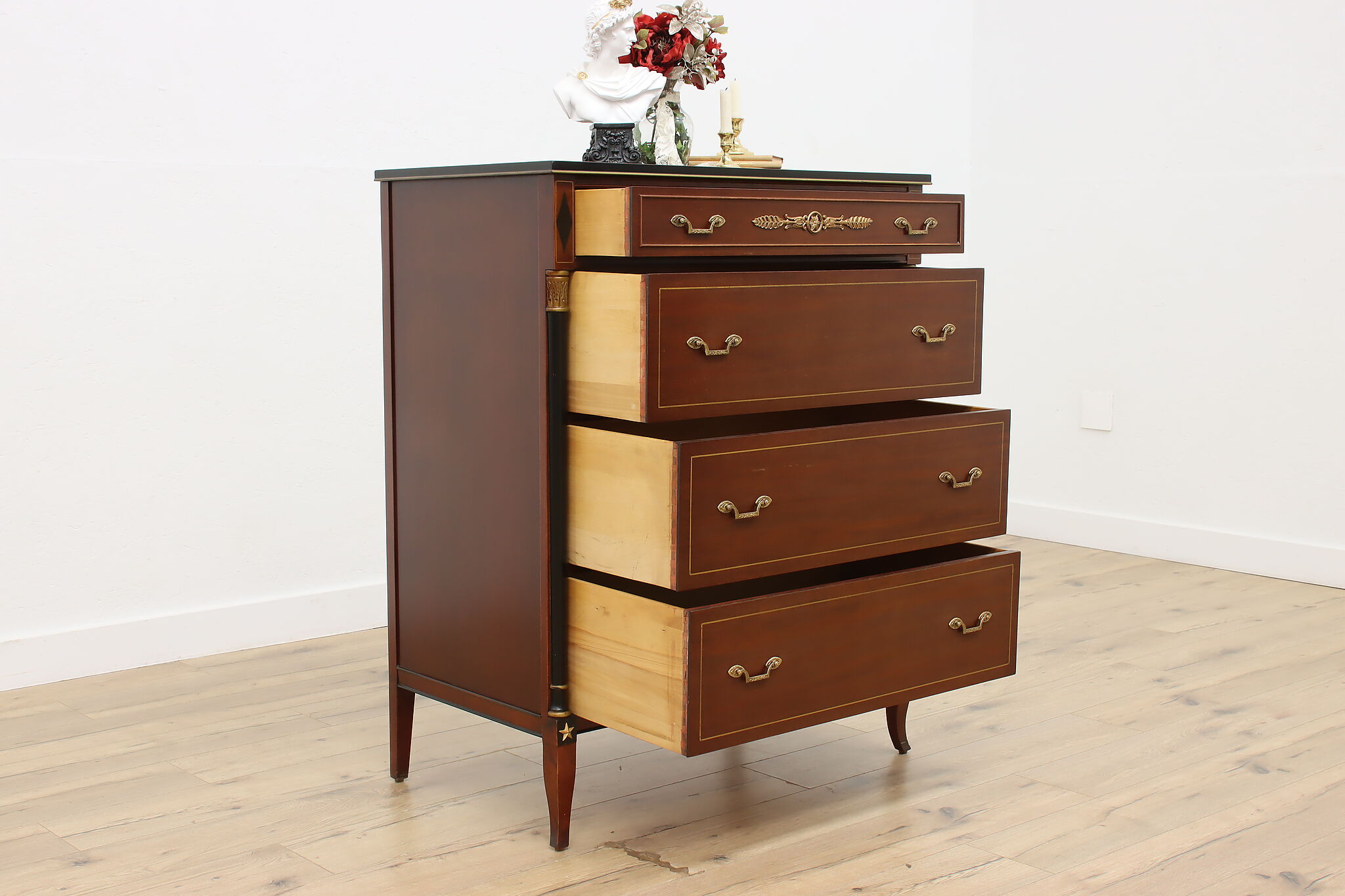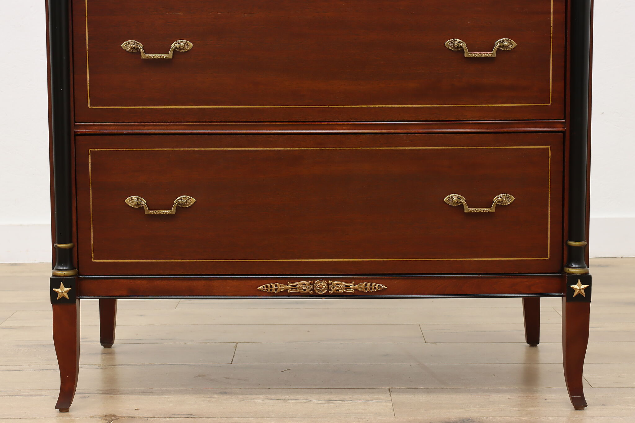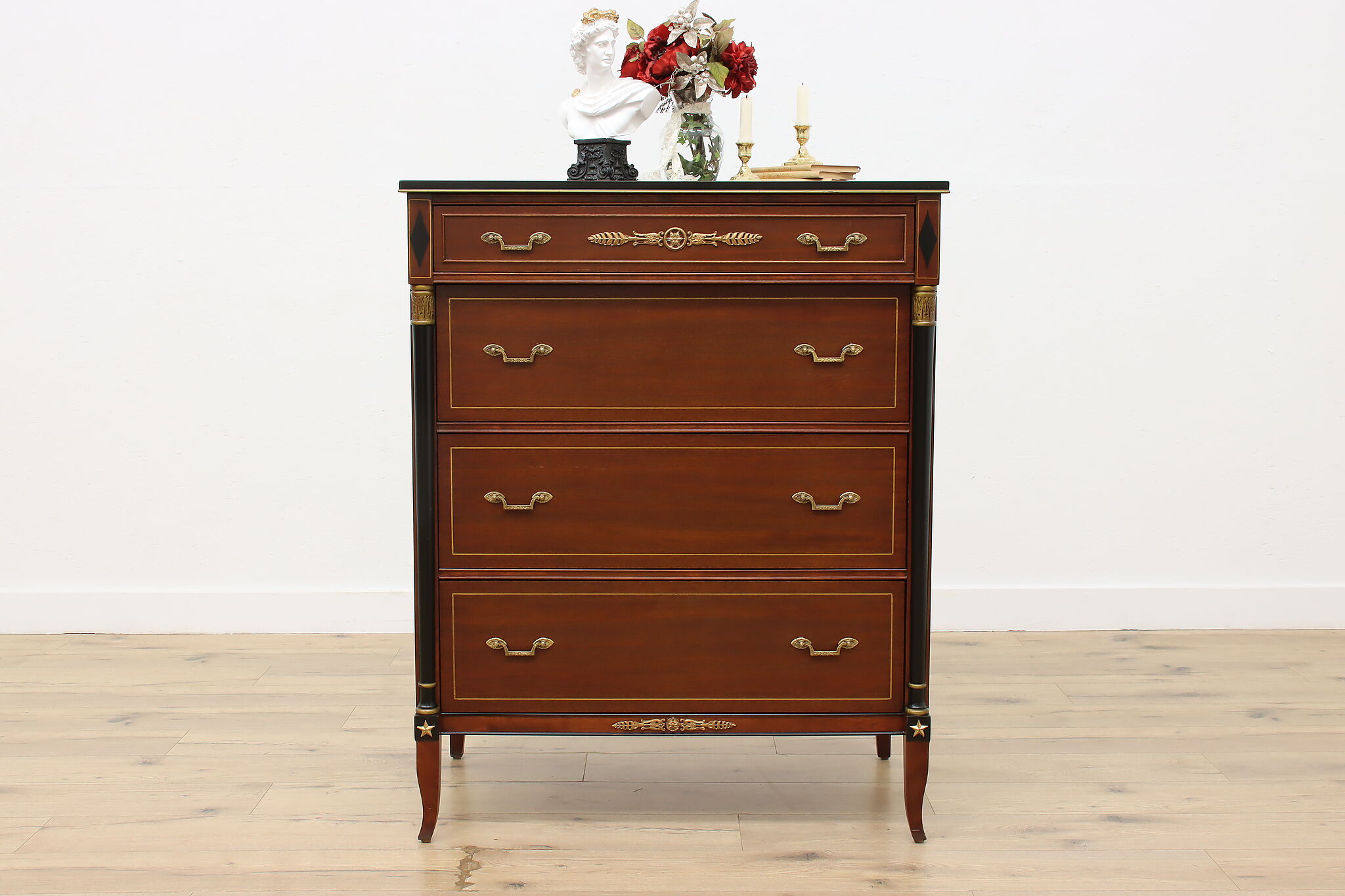 This fantastic five piece bedroom set is in the gorgeous French Empire design, fit only for the royalist of households.