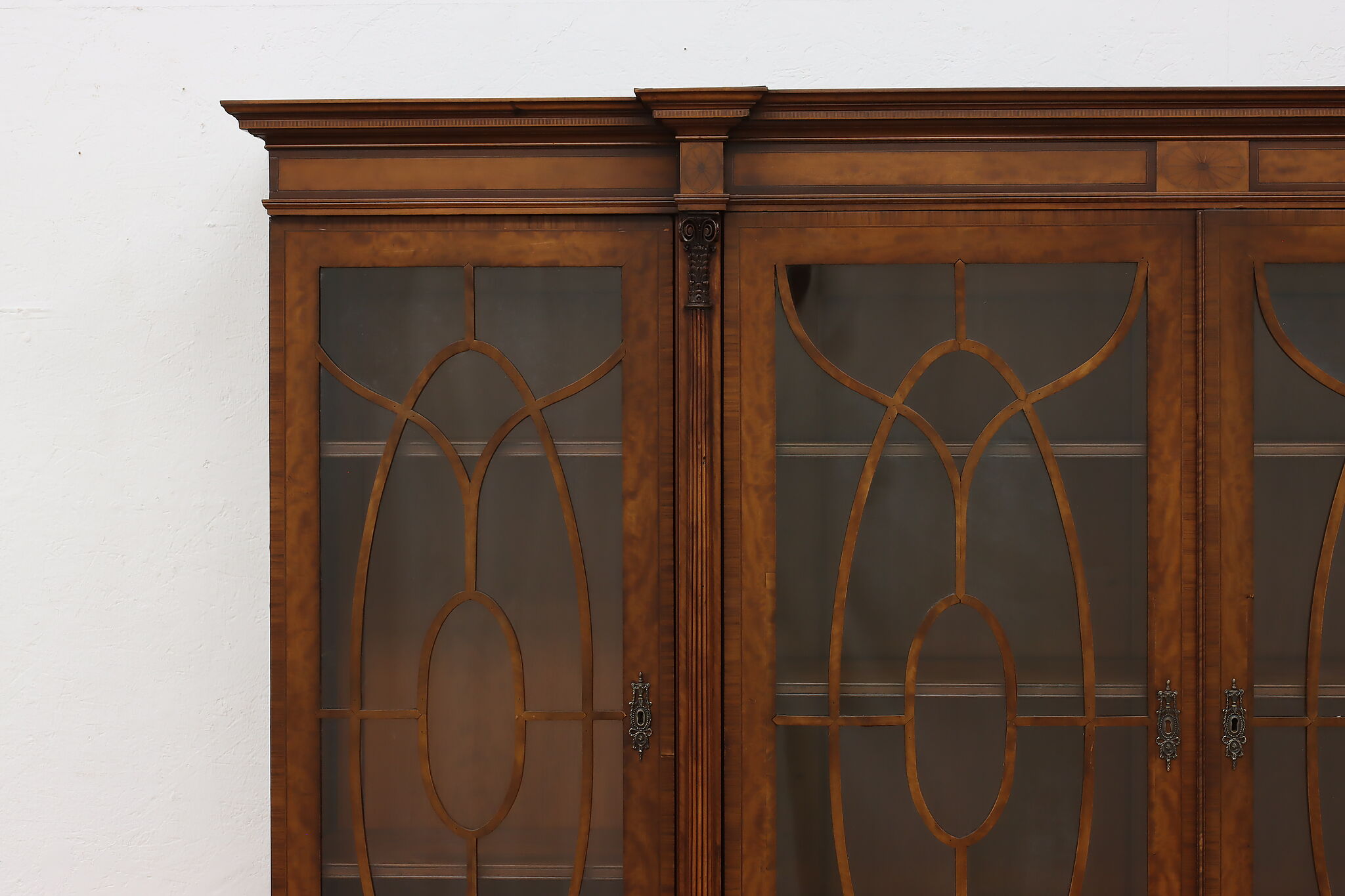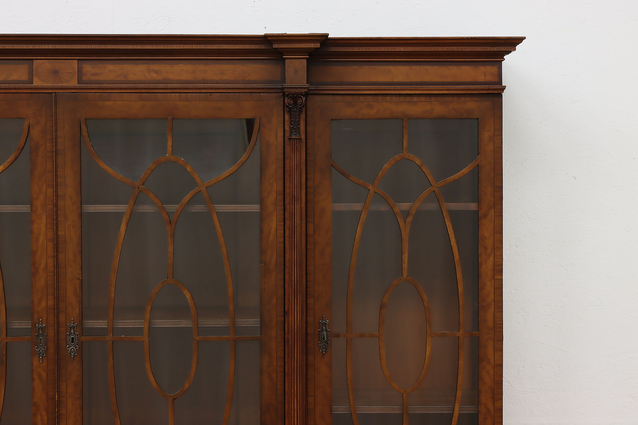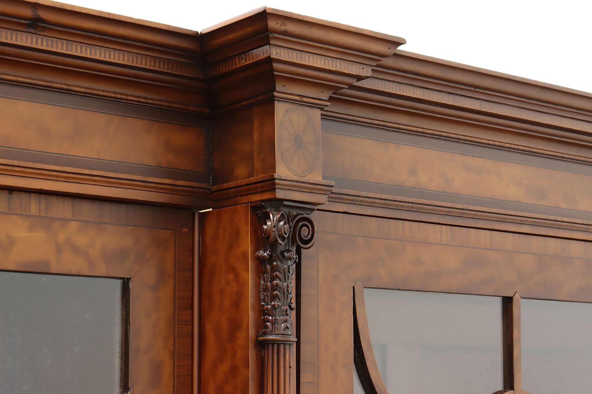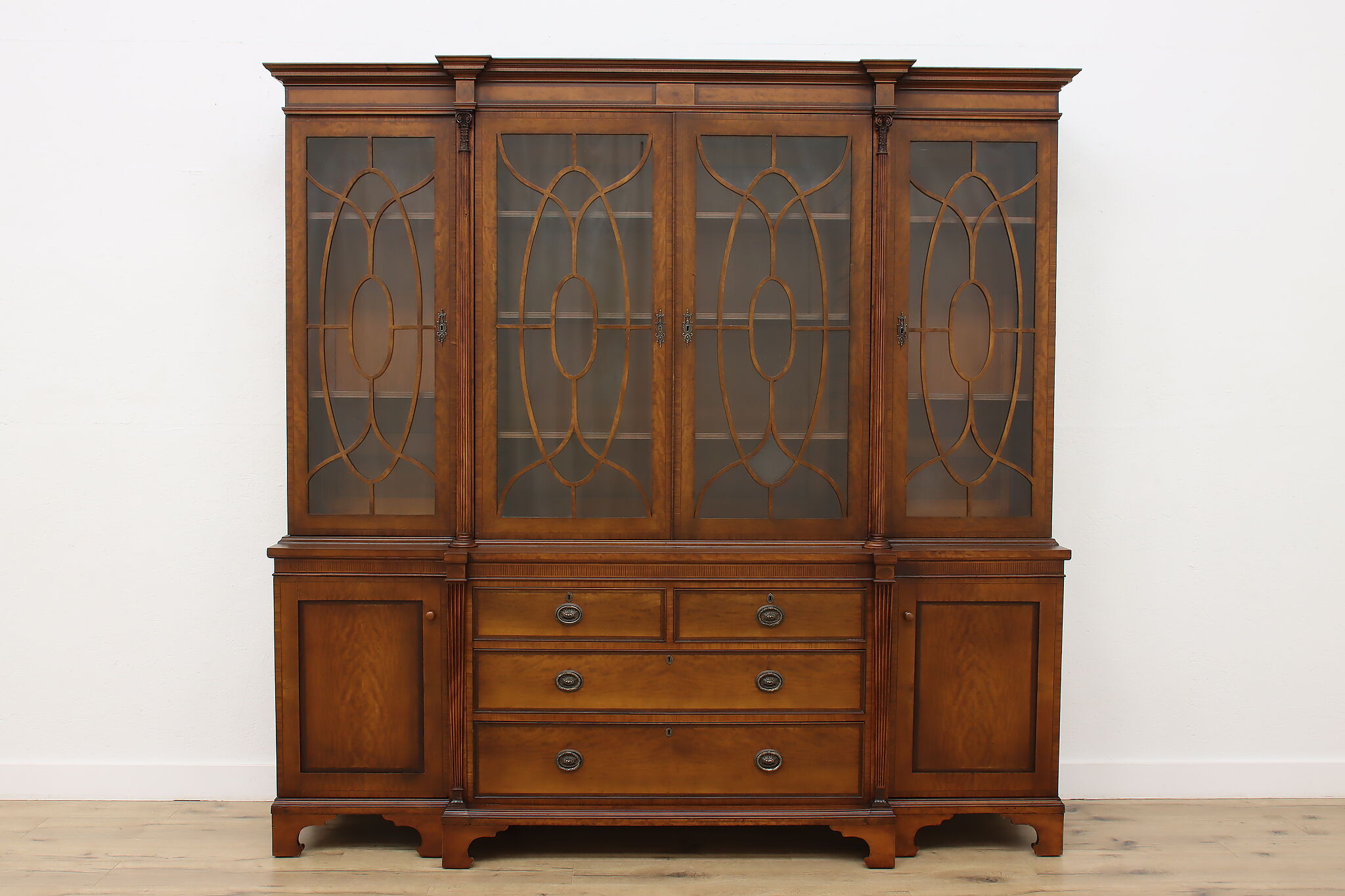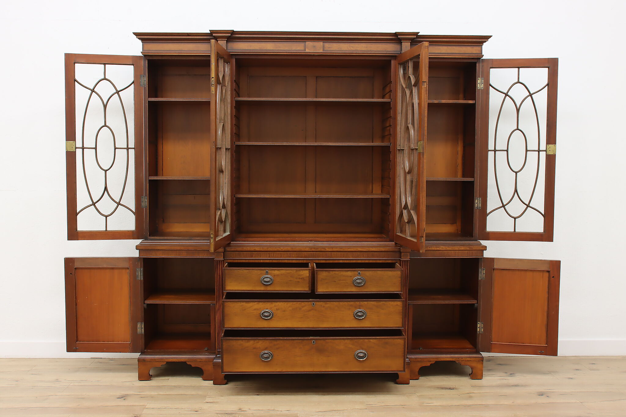Handcrafted in England, this gorgeous classical design breakfront should be filled with favorite novels and family heirloom china!