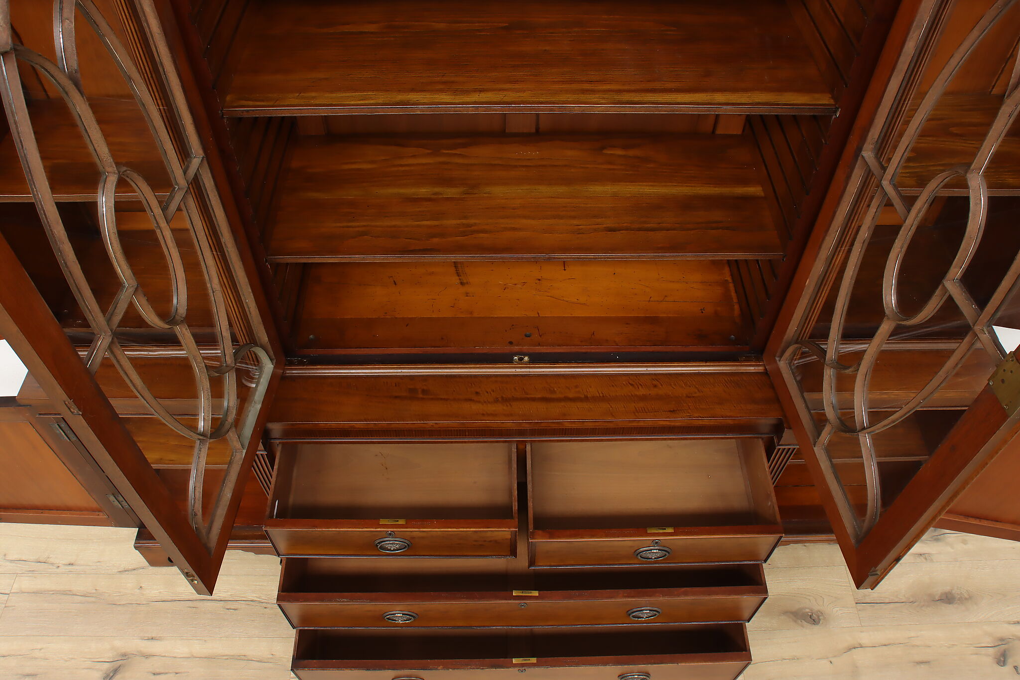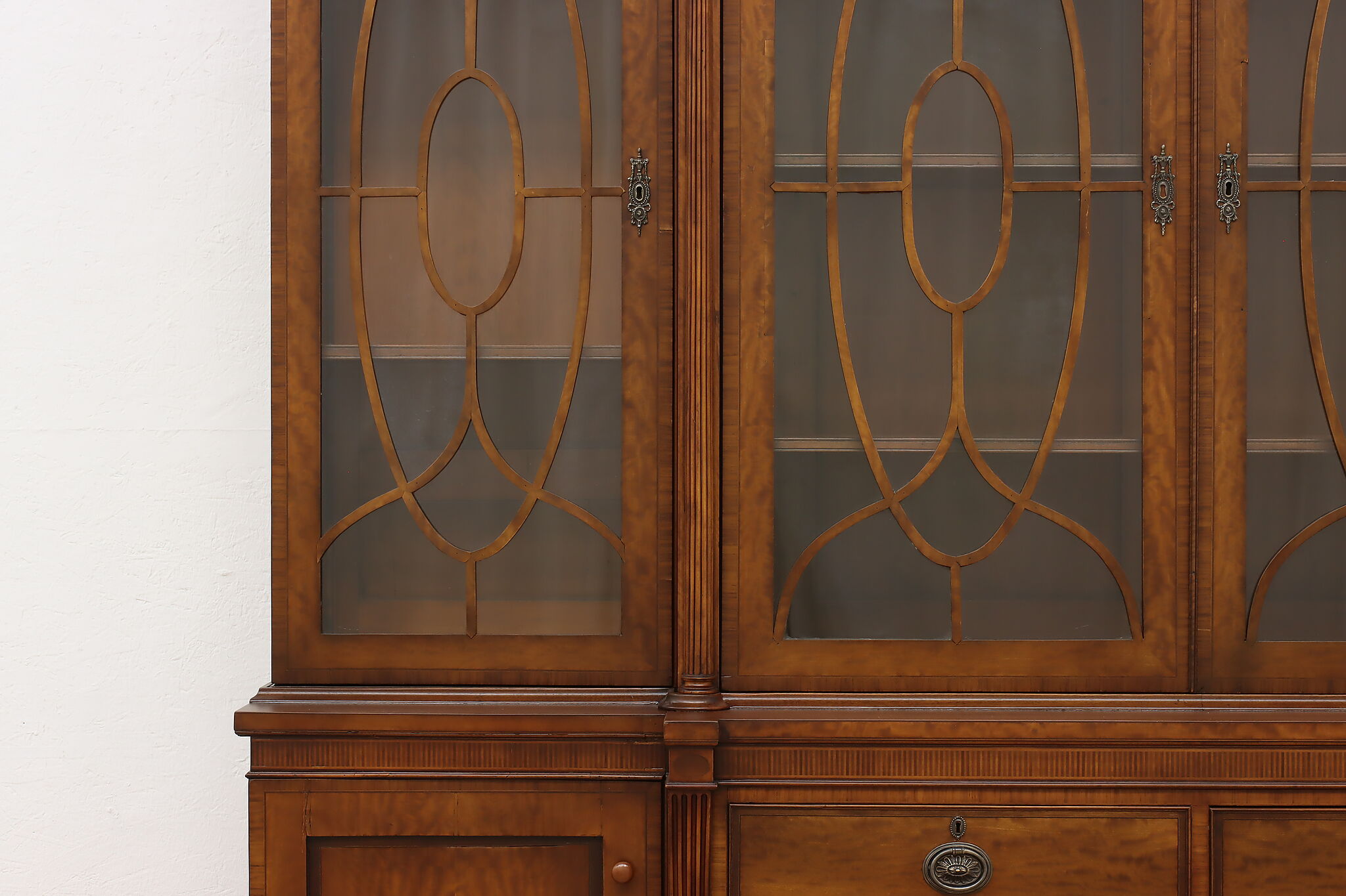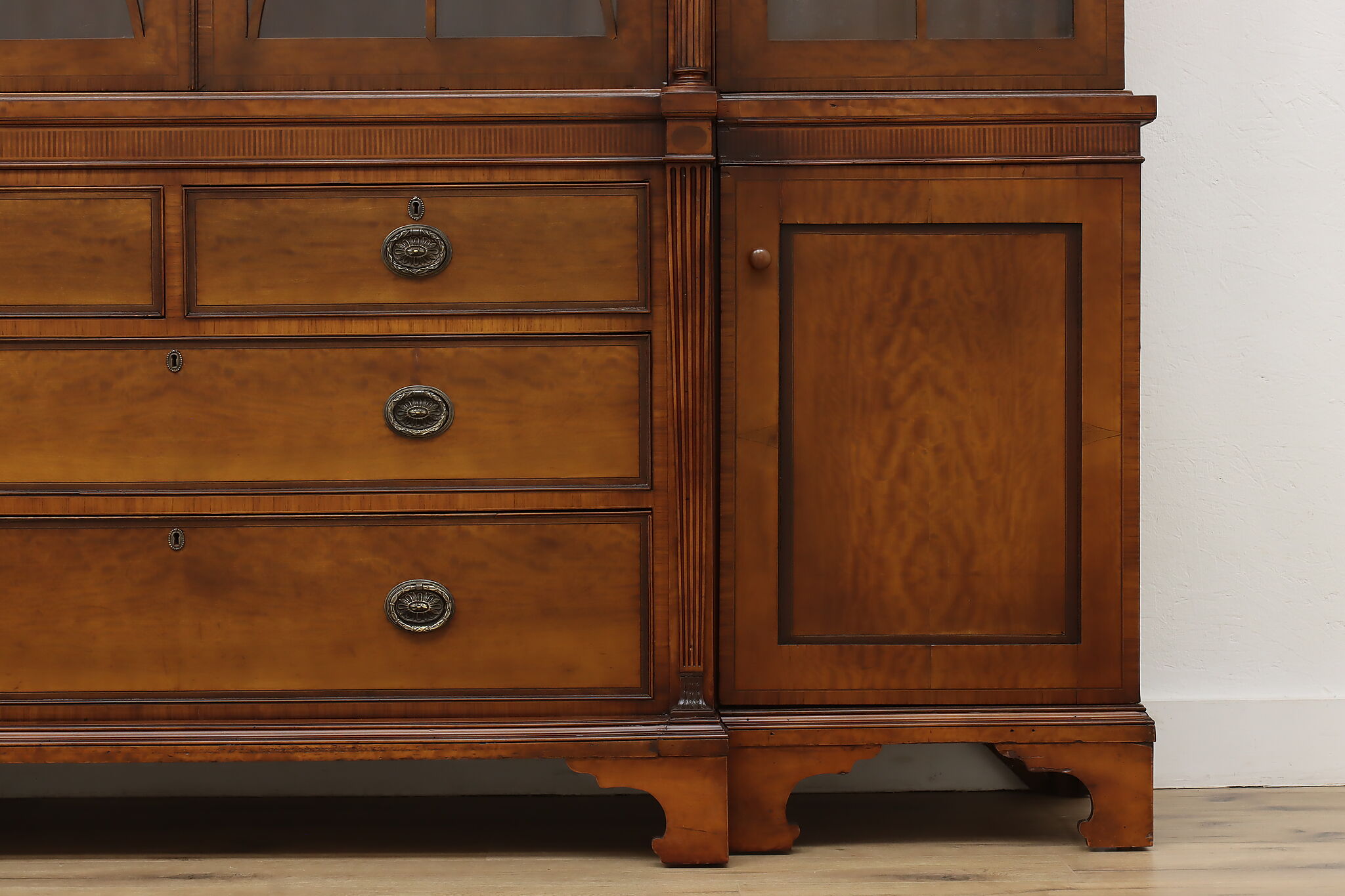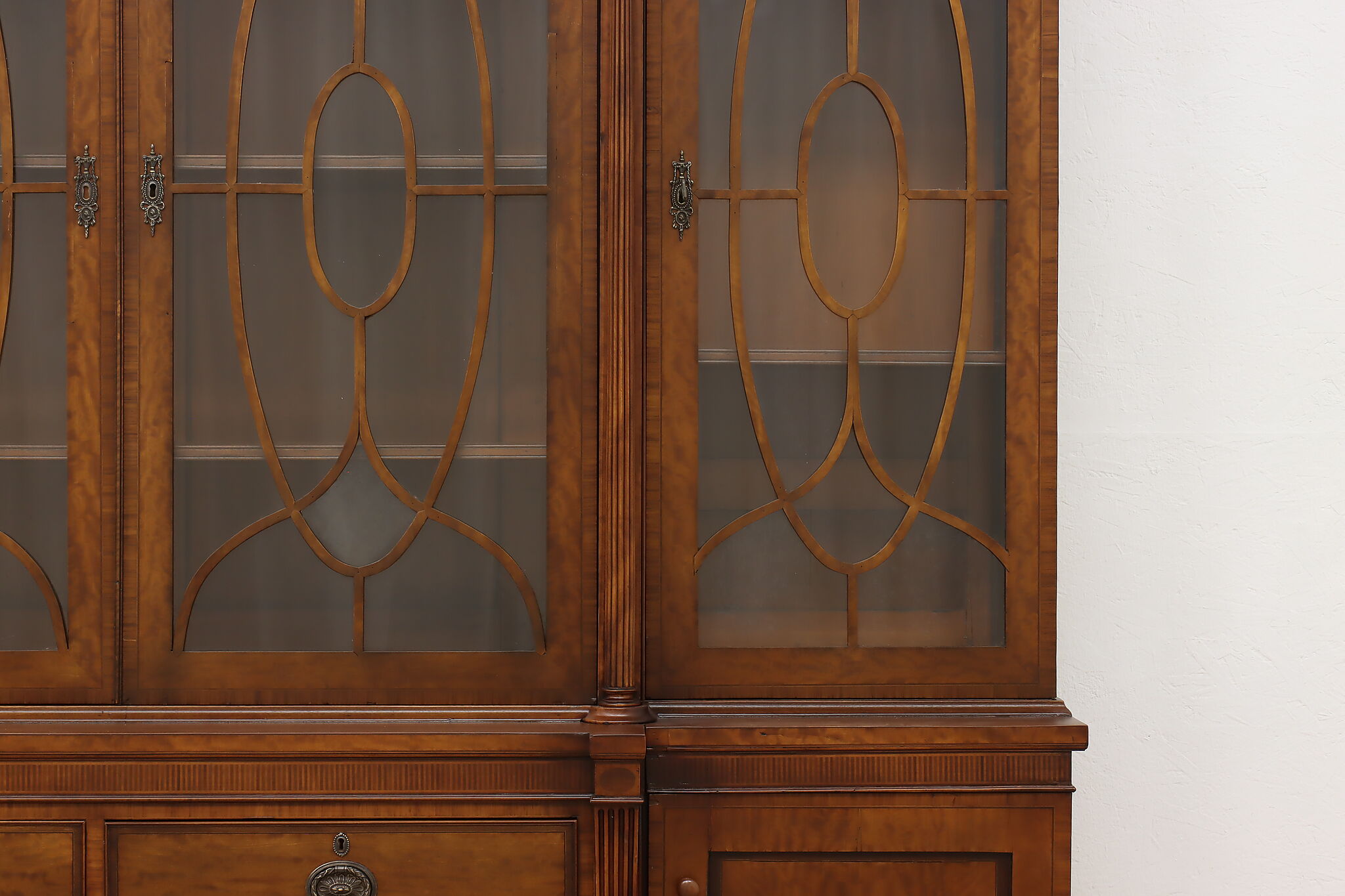 Handcrafted in England, this gorgeous classical design breakfront should be filled with favorite novels and family heirloom china!
