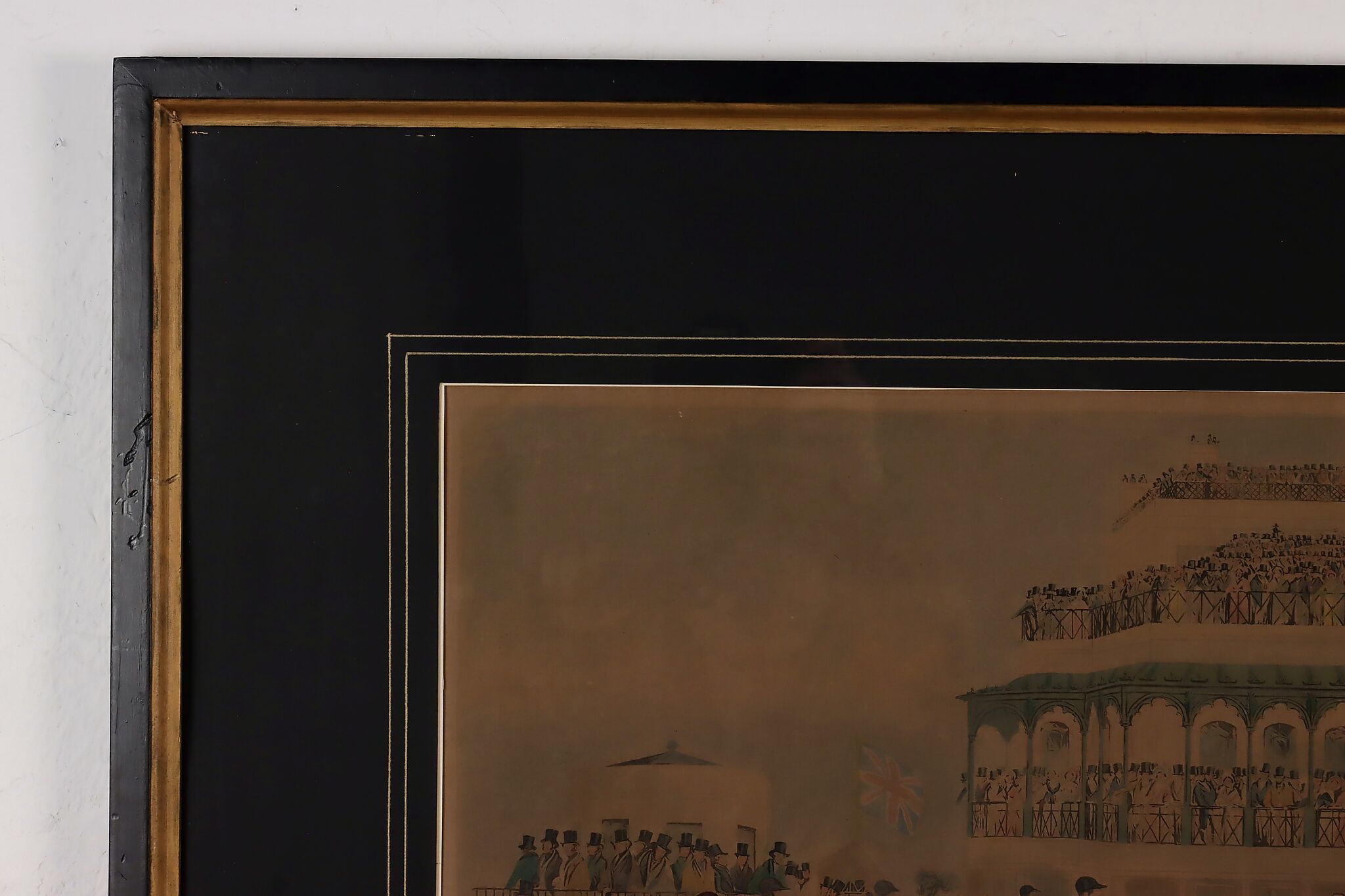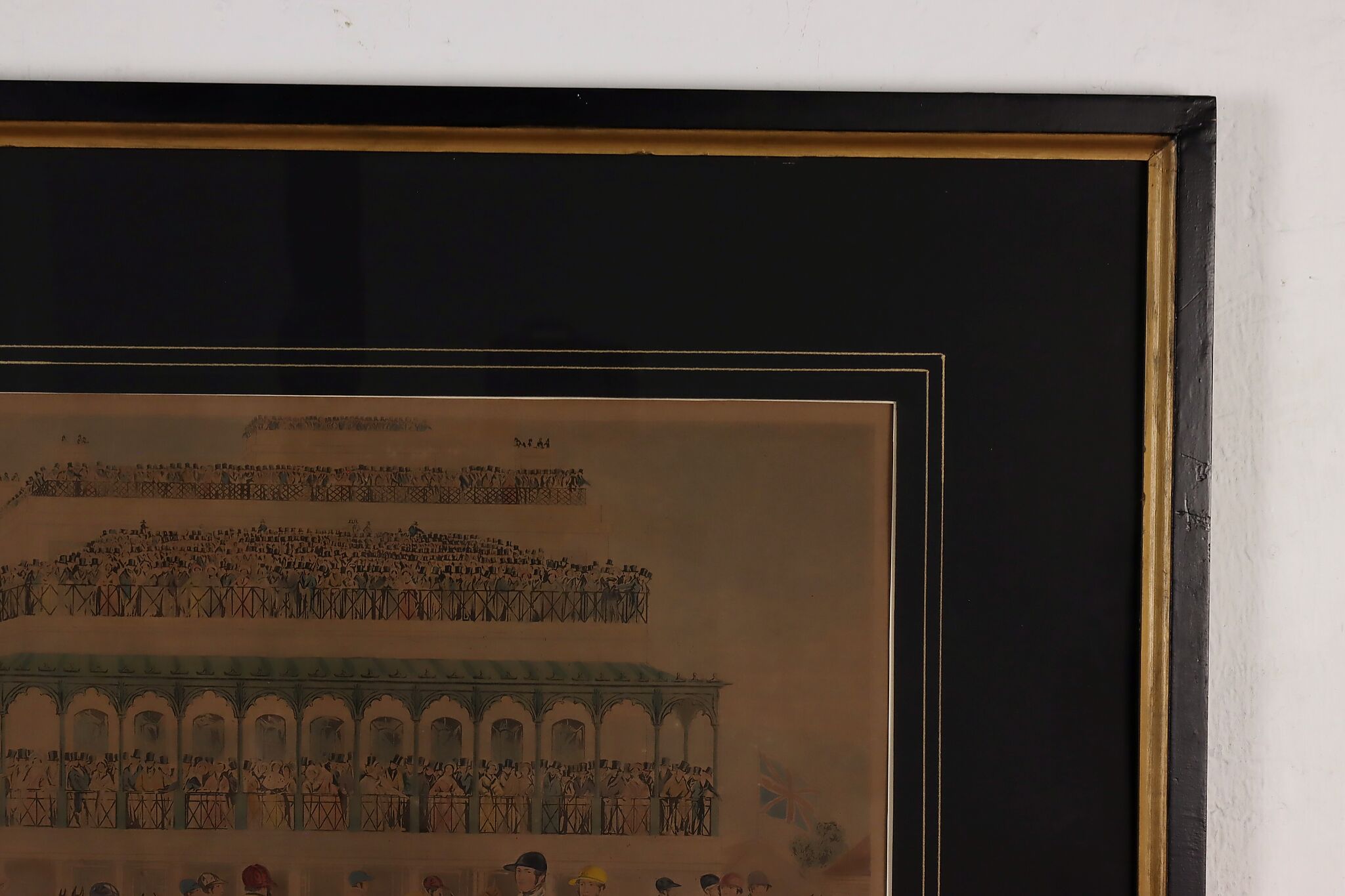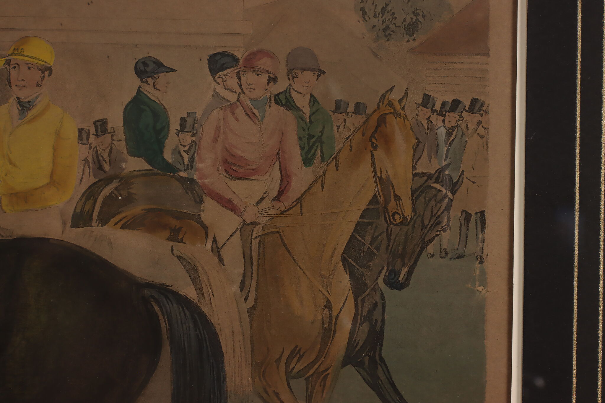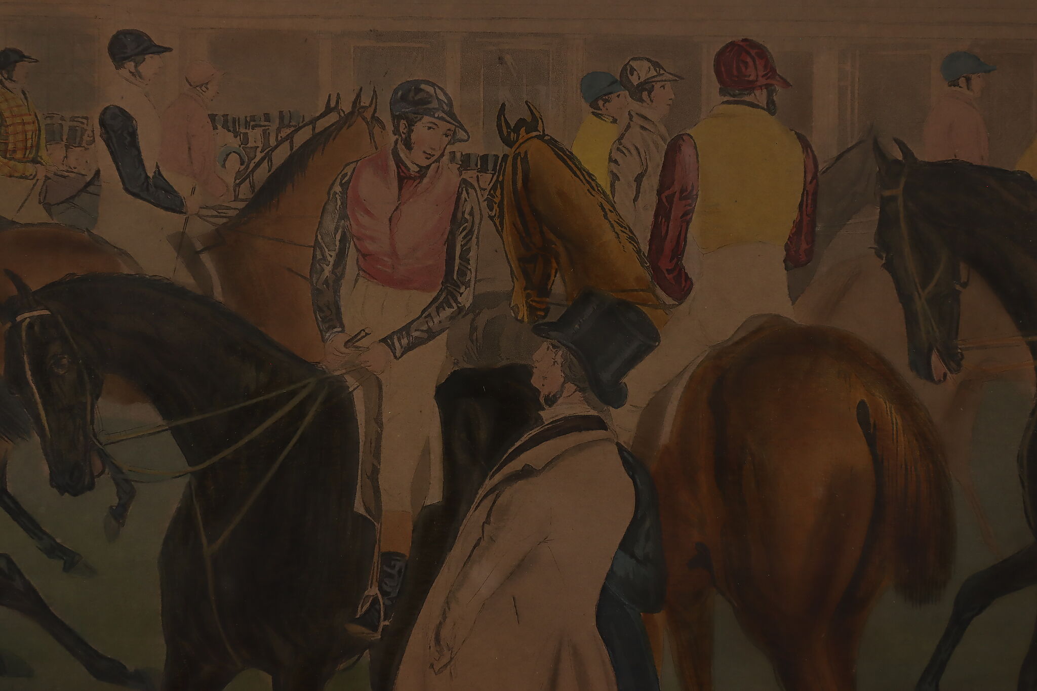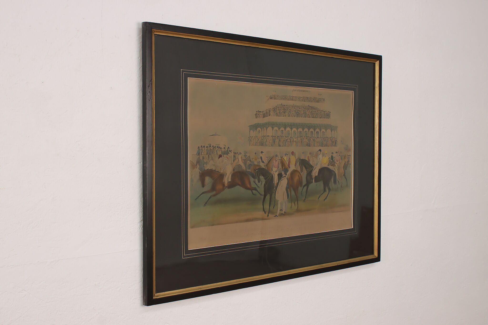 This engraving is Plate One of Francis Calcraft Turner's original "The Liverpool Great National Steeple Chase" series of four paintings. Turner was known for his realistic animal and sport paintings.