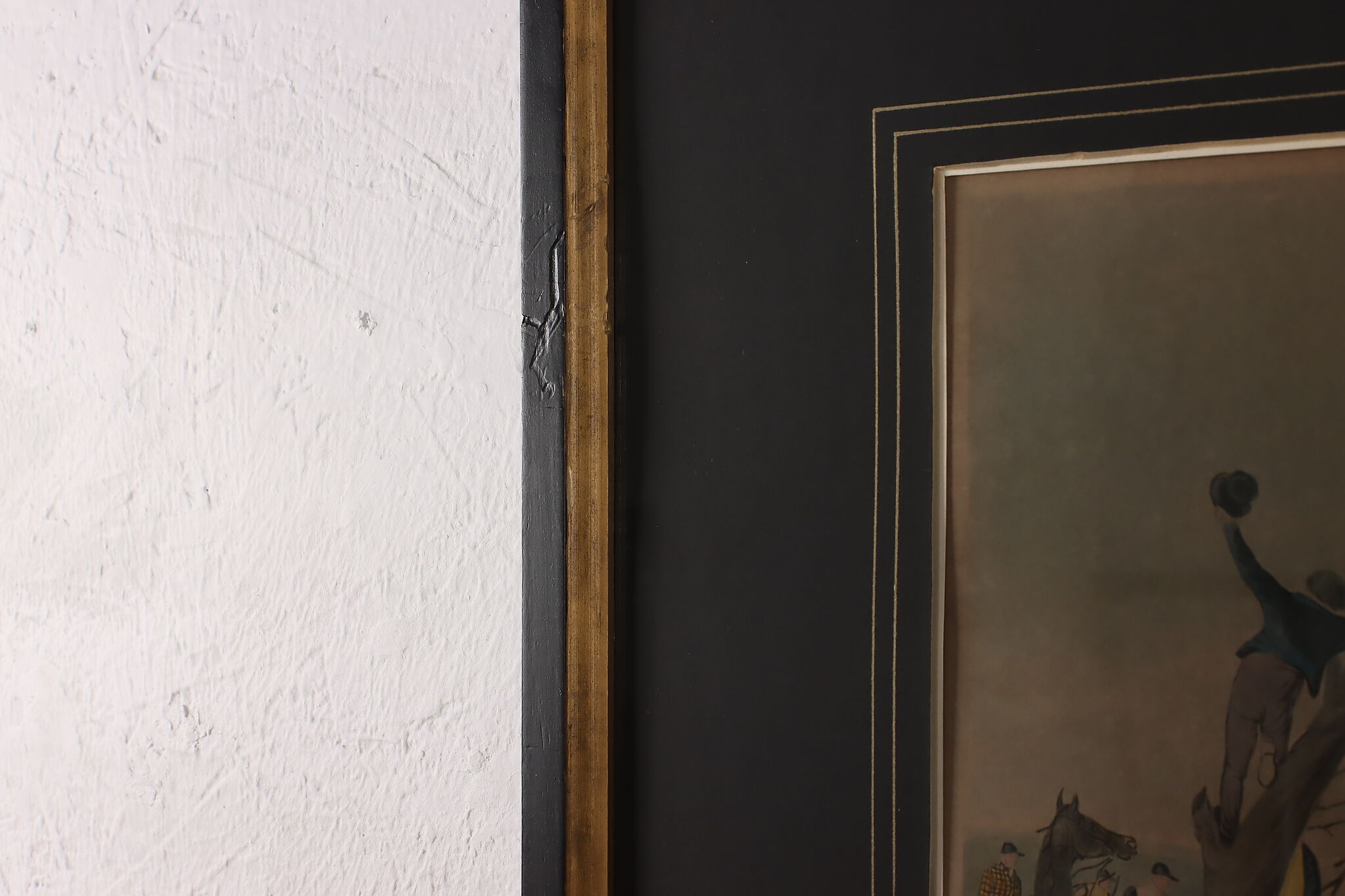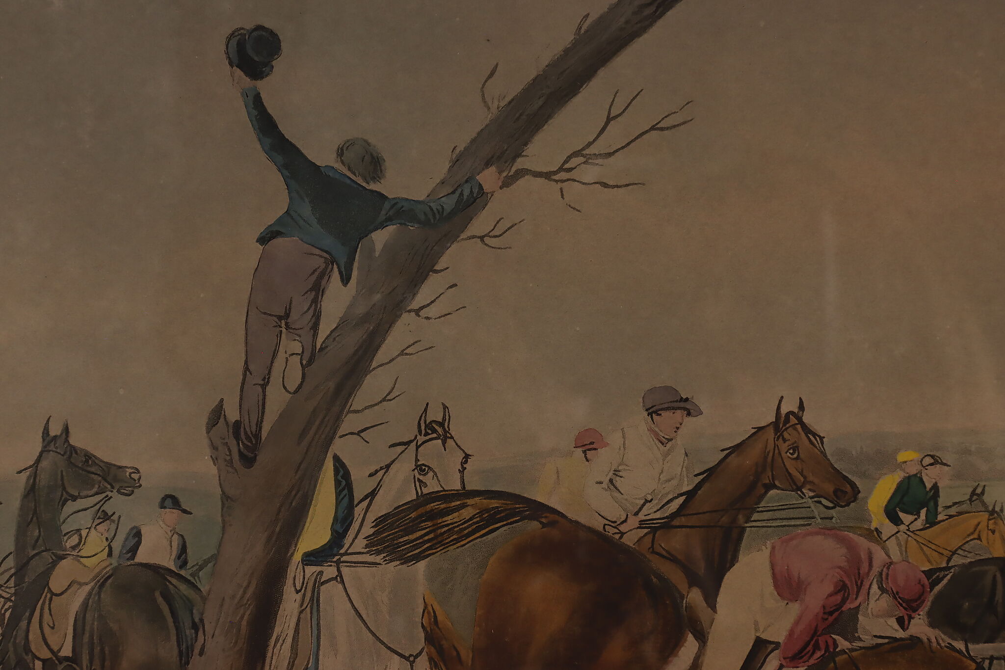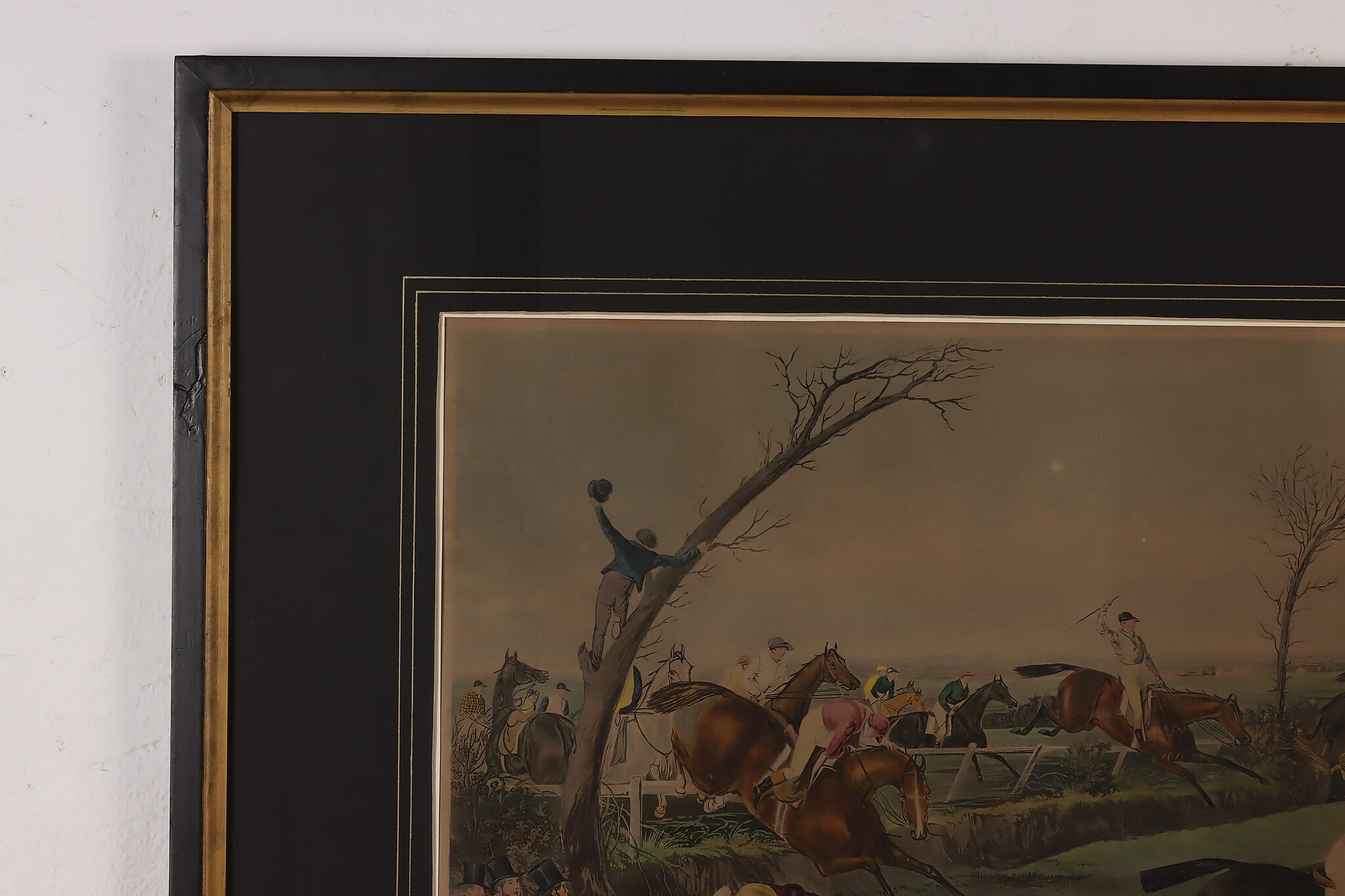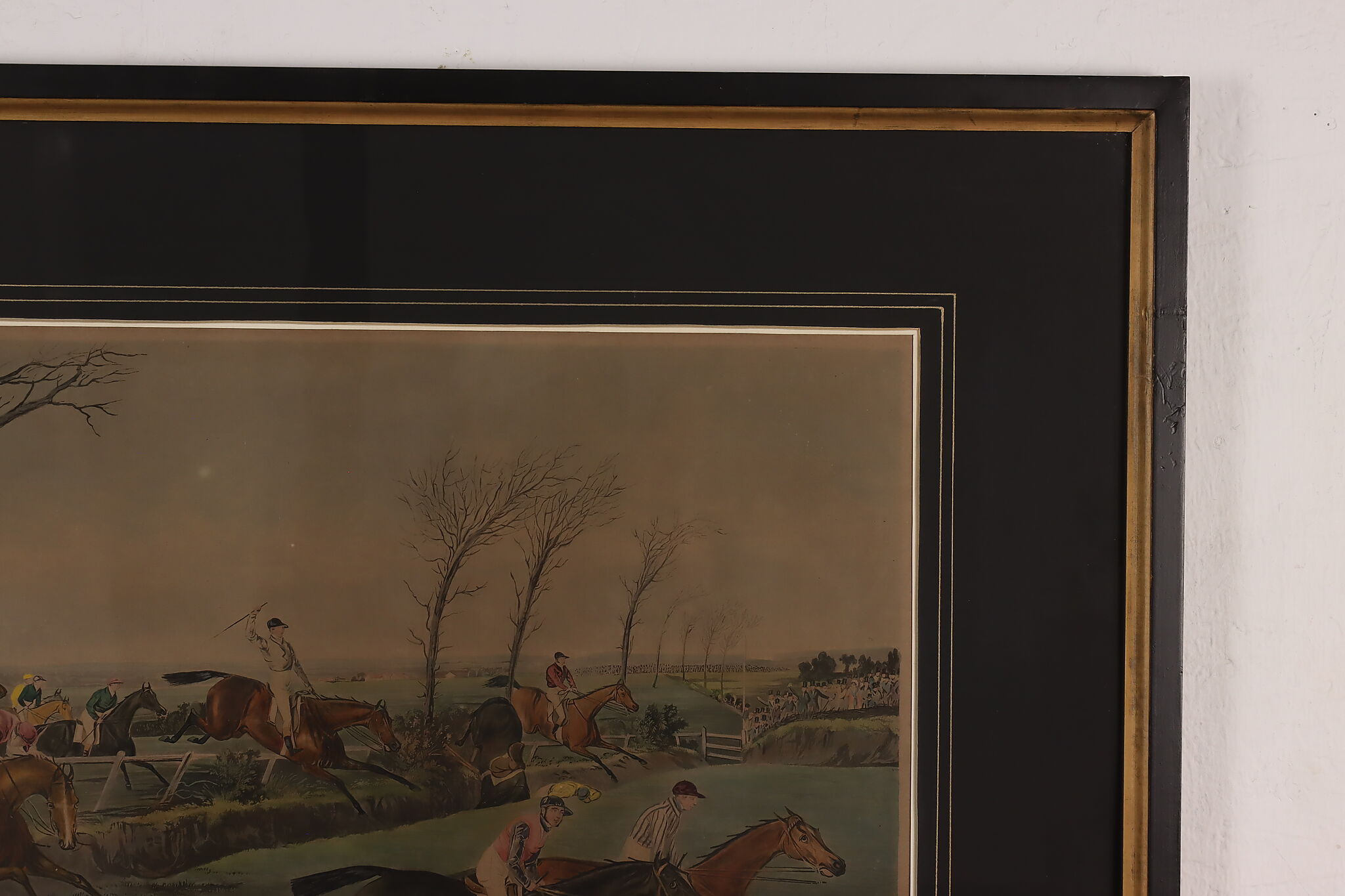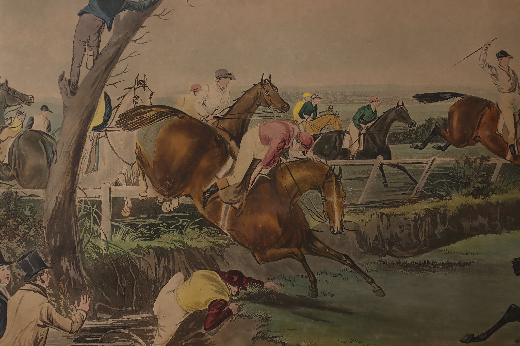 This engraving is plate two of Francis Calcraft Turner's original "The Liverpool Great National Steeple Chase" series of four paintings. Turner was known for his realistic animal and sport paintings.