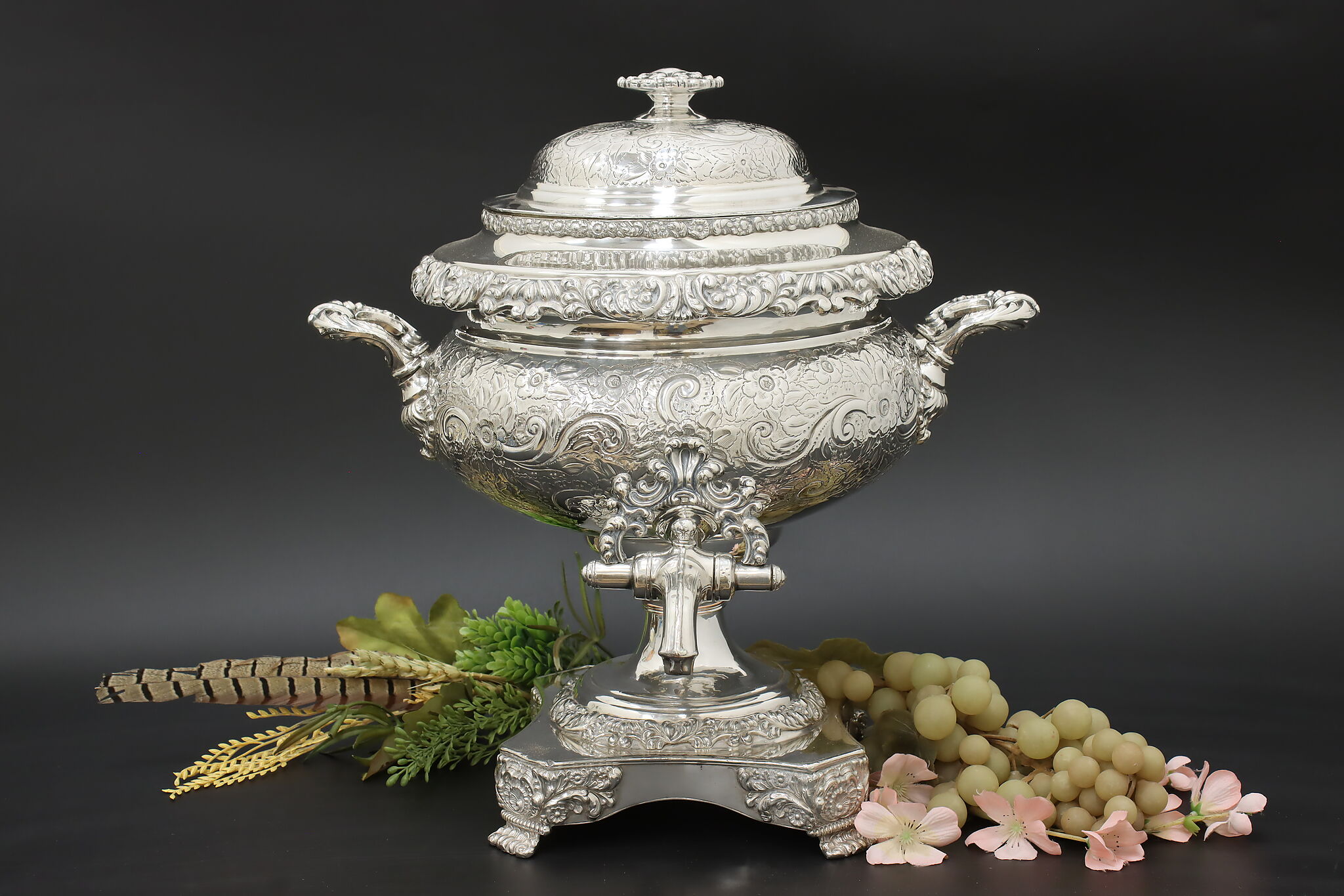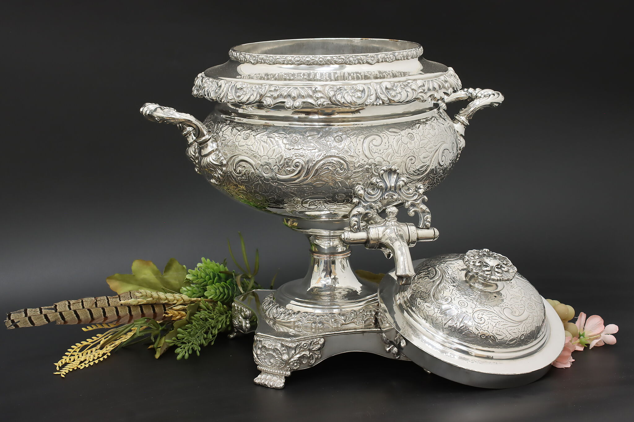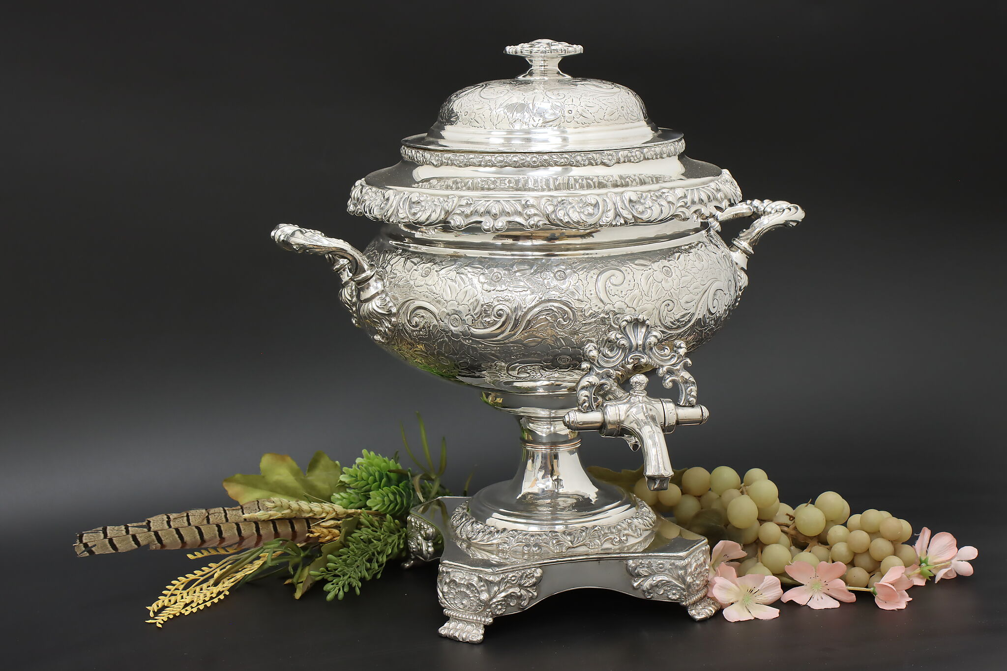 During a Victorian era ball, the guests would've used this gorgeous coffee, tea, or punch urn to refresh themselves as they danced the night away.