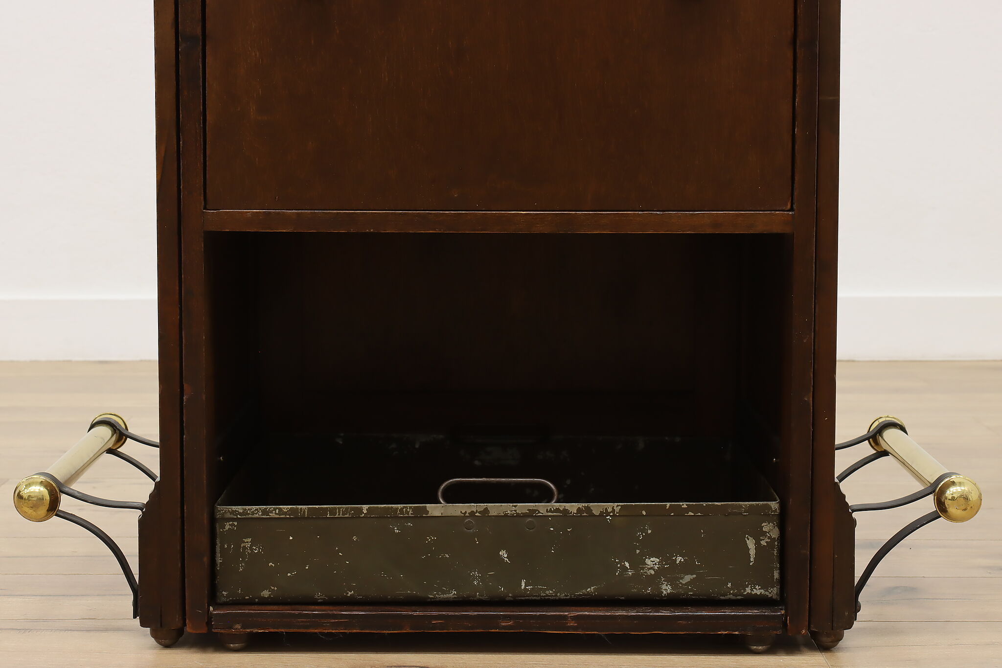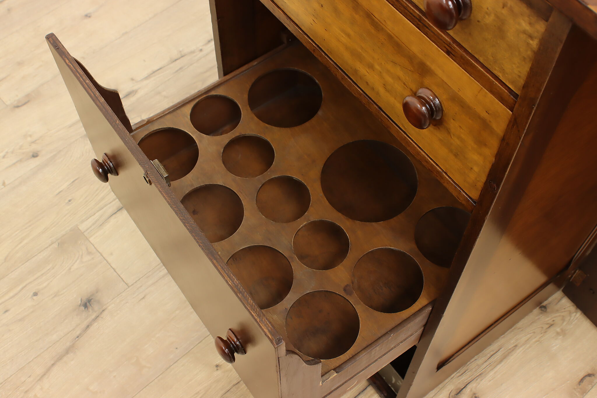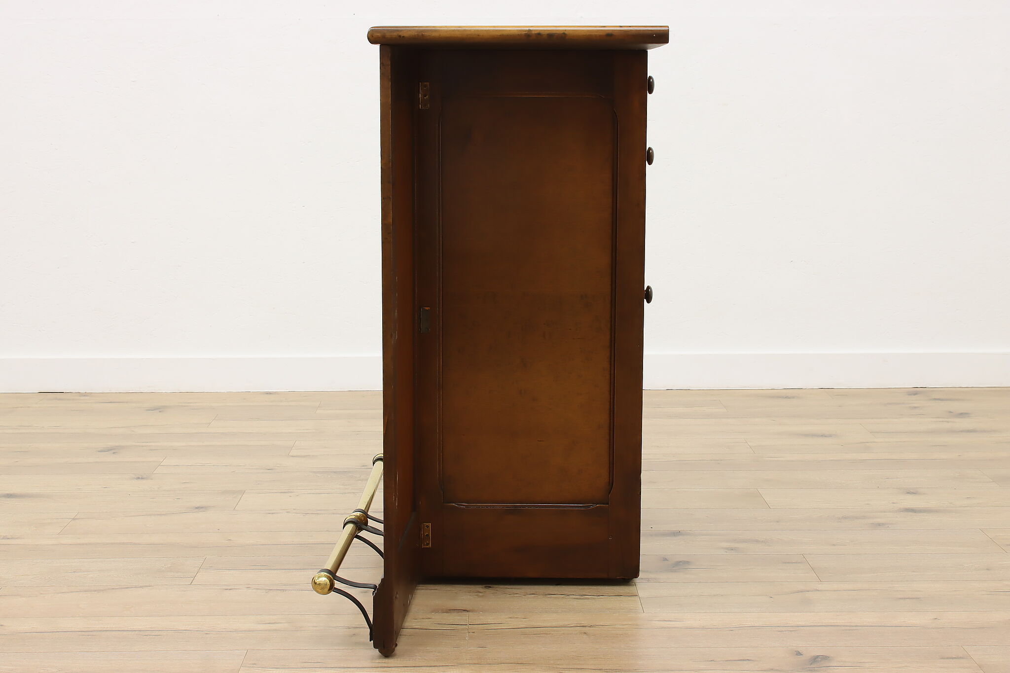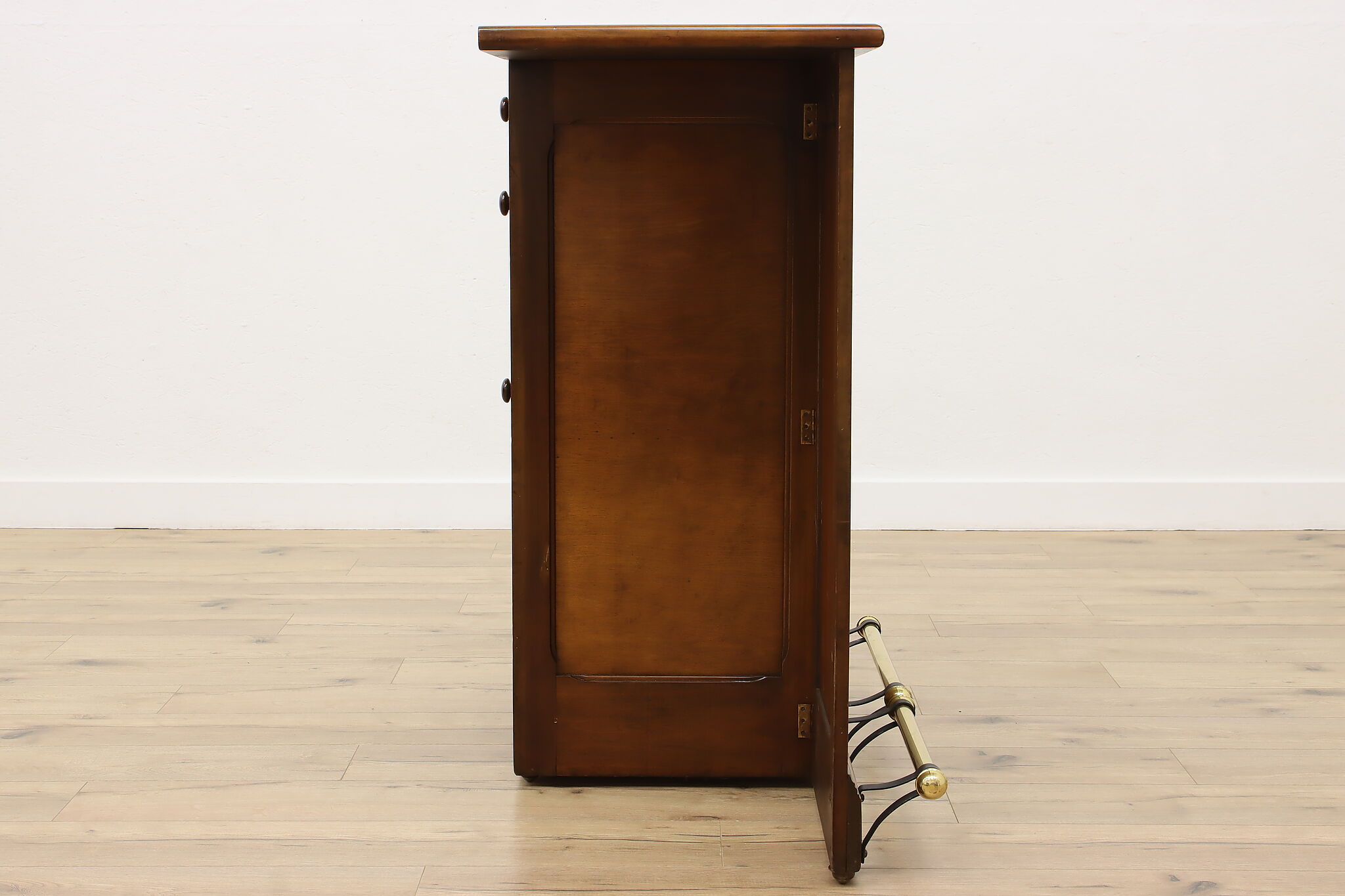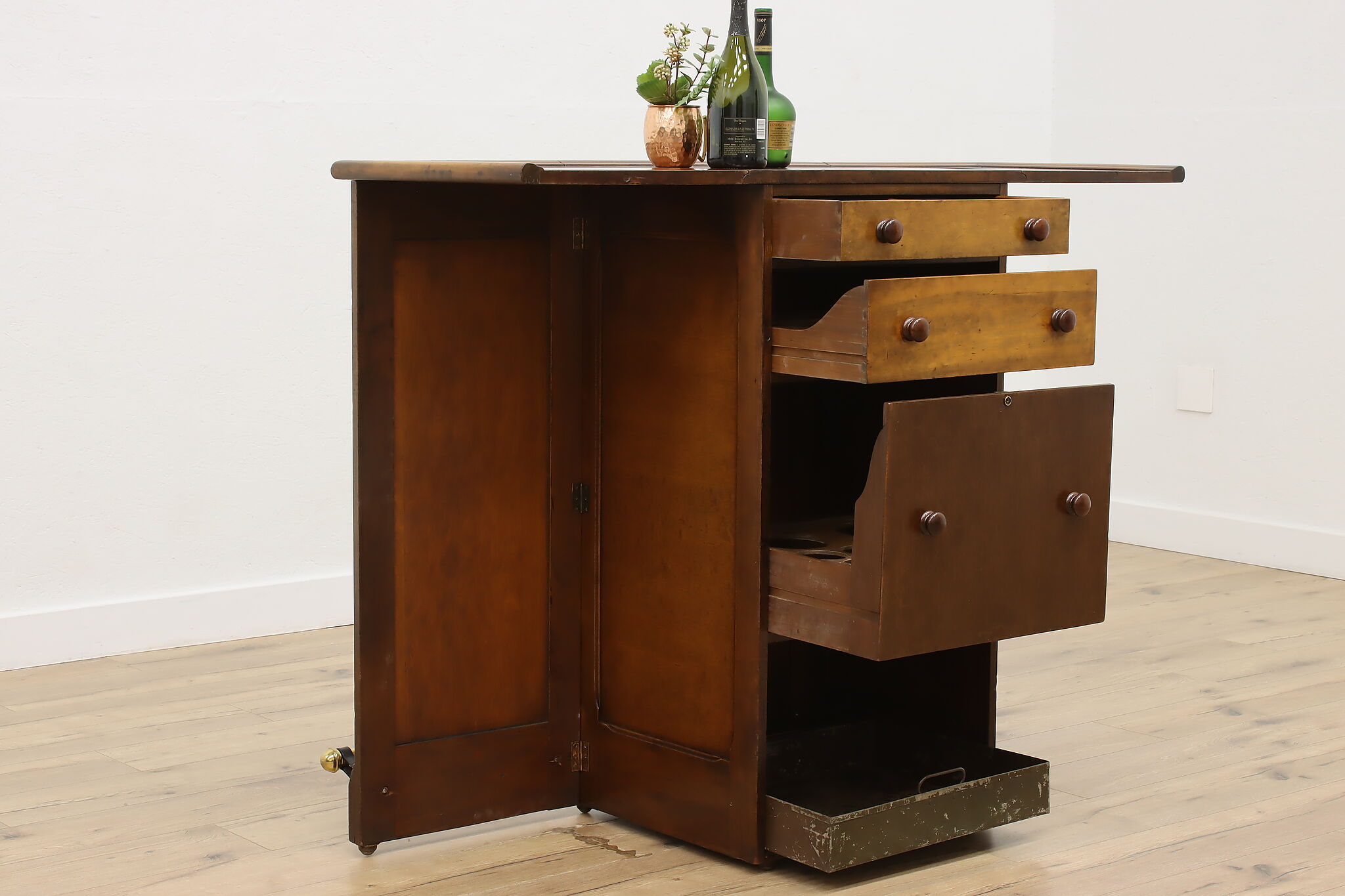 This unique folding bar cabinet has drop leaves supported by swing out doors to extend your serving area! It has also been beautifully decorated with a scene of a traditional English fox hunt.