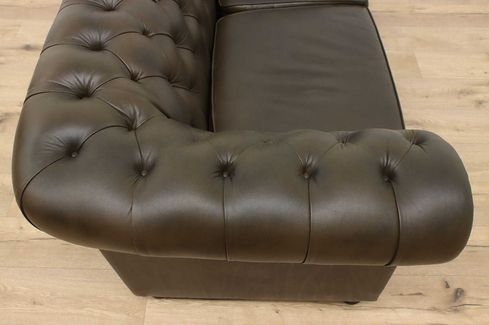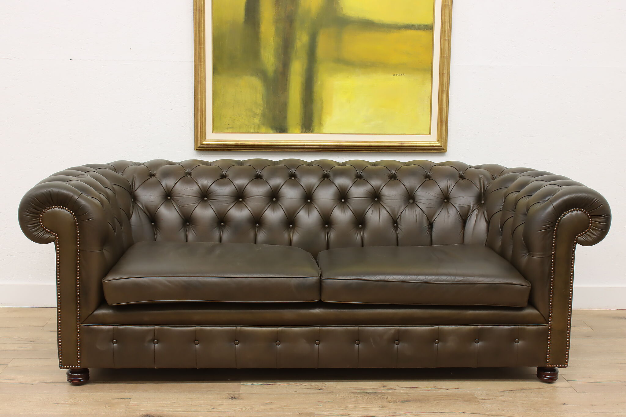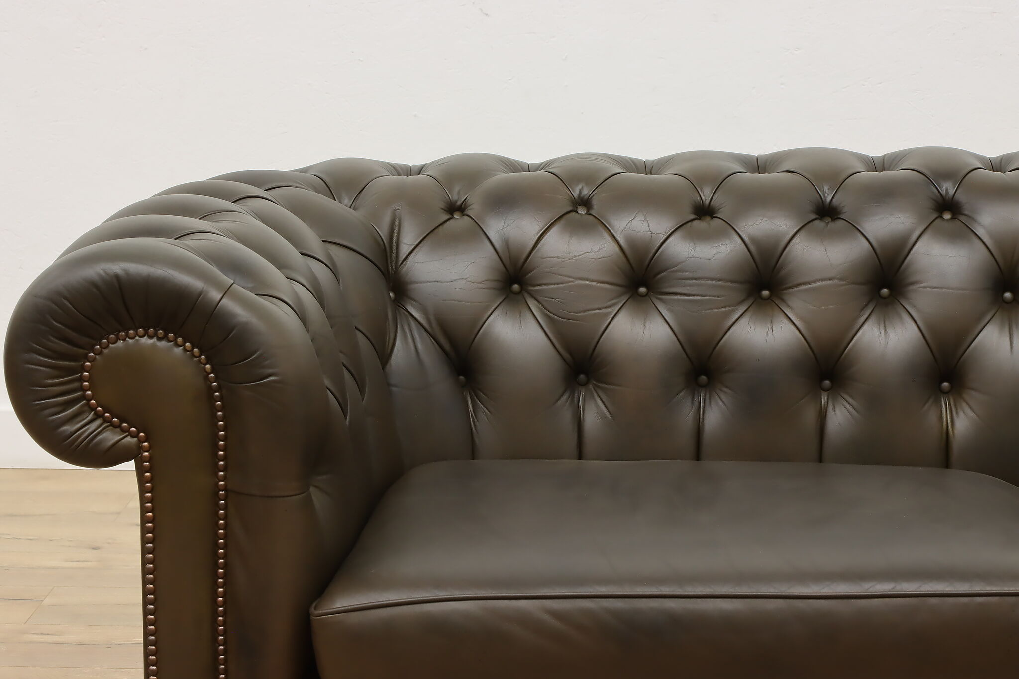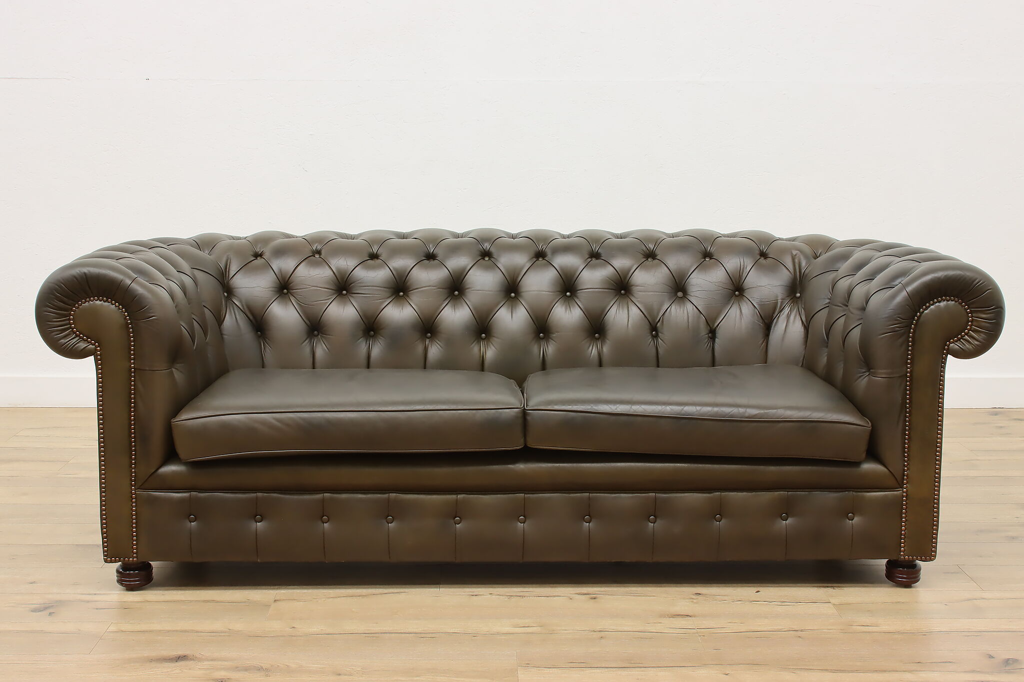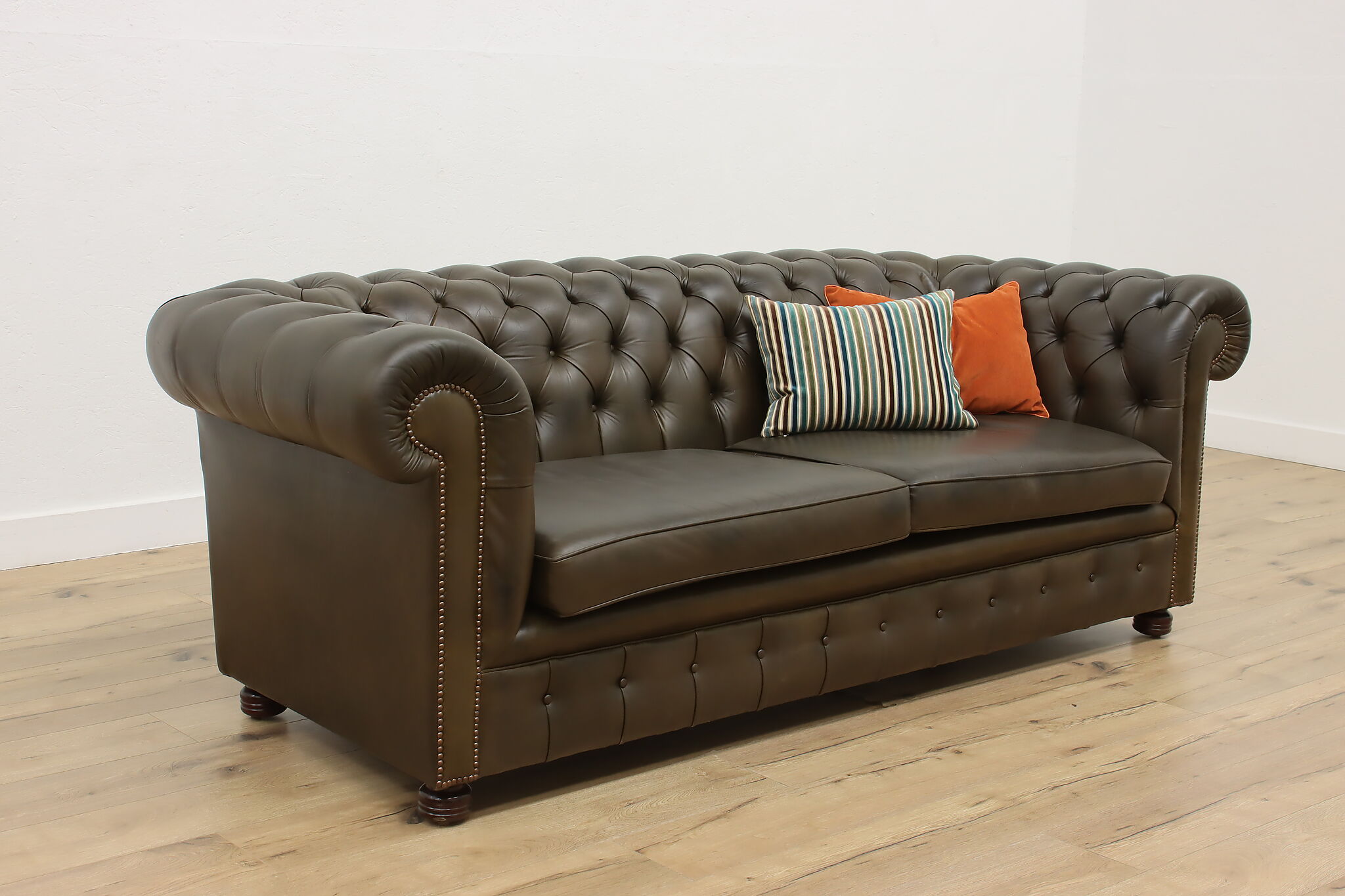 This traditional "Chesterfield" tufted leather sofa or couch is a classic design that oozes elegance and refinement.