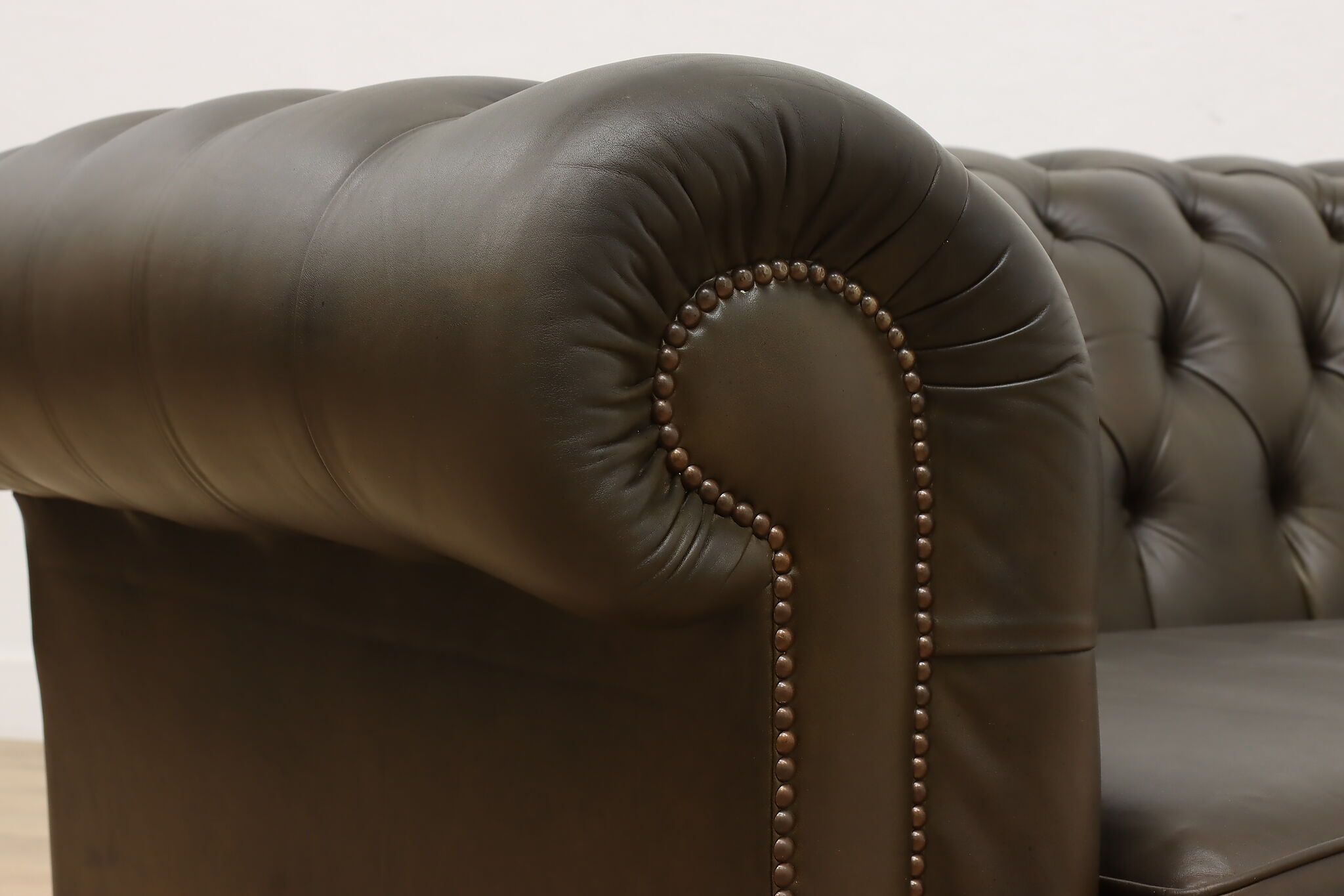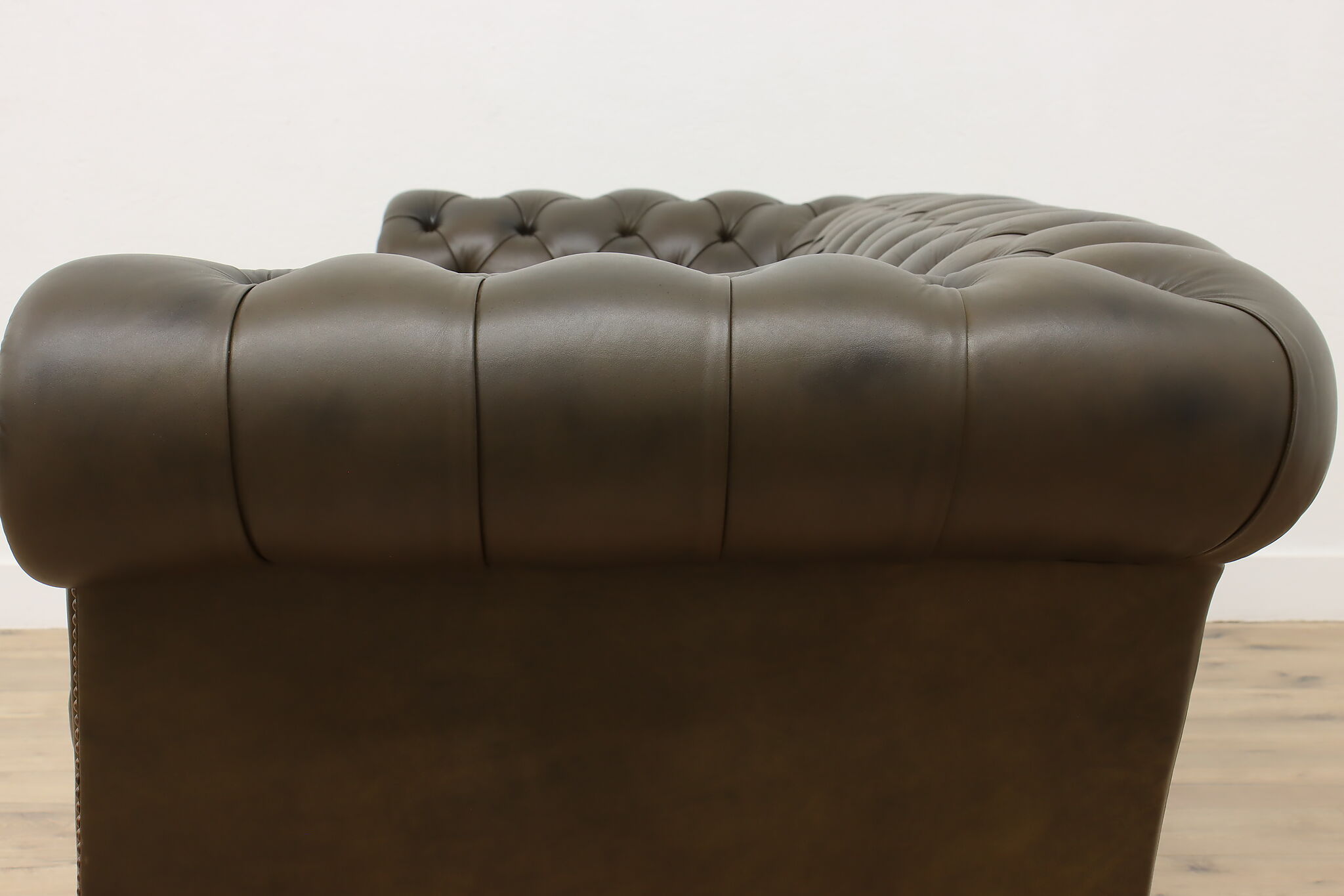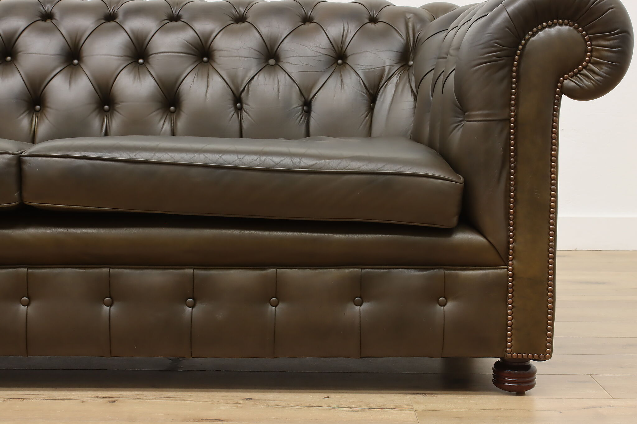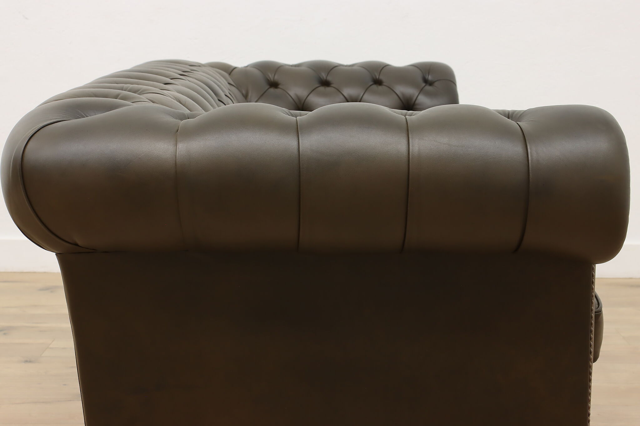 This traditional "Chesterfield" tufted leather sofa or couch is a classic design that oozes elegance and refinement.