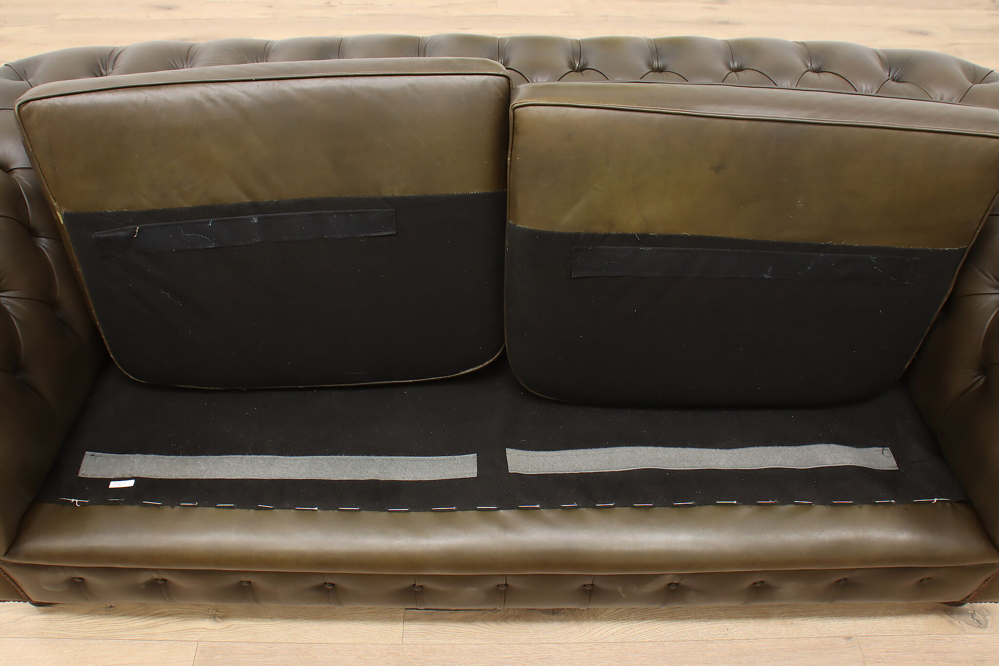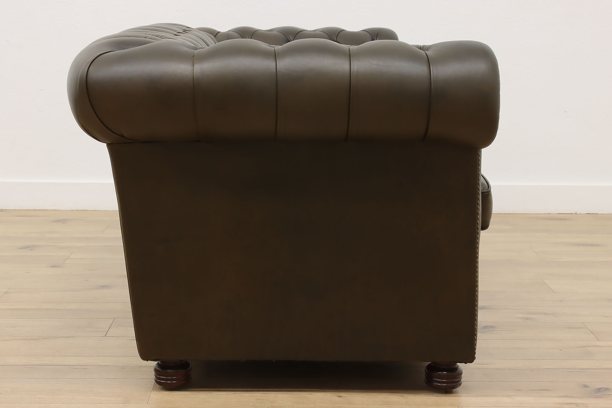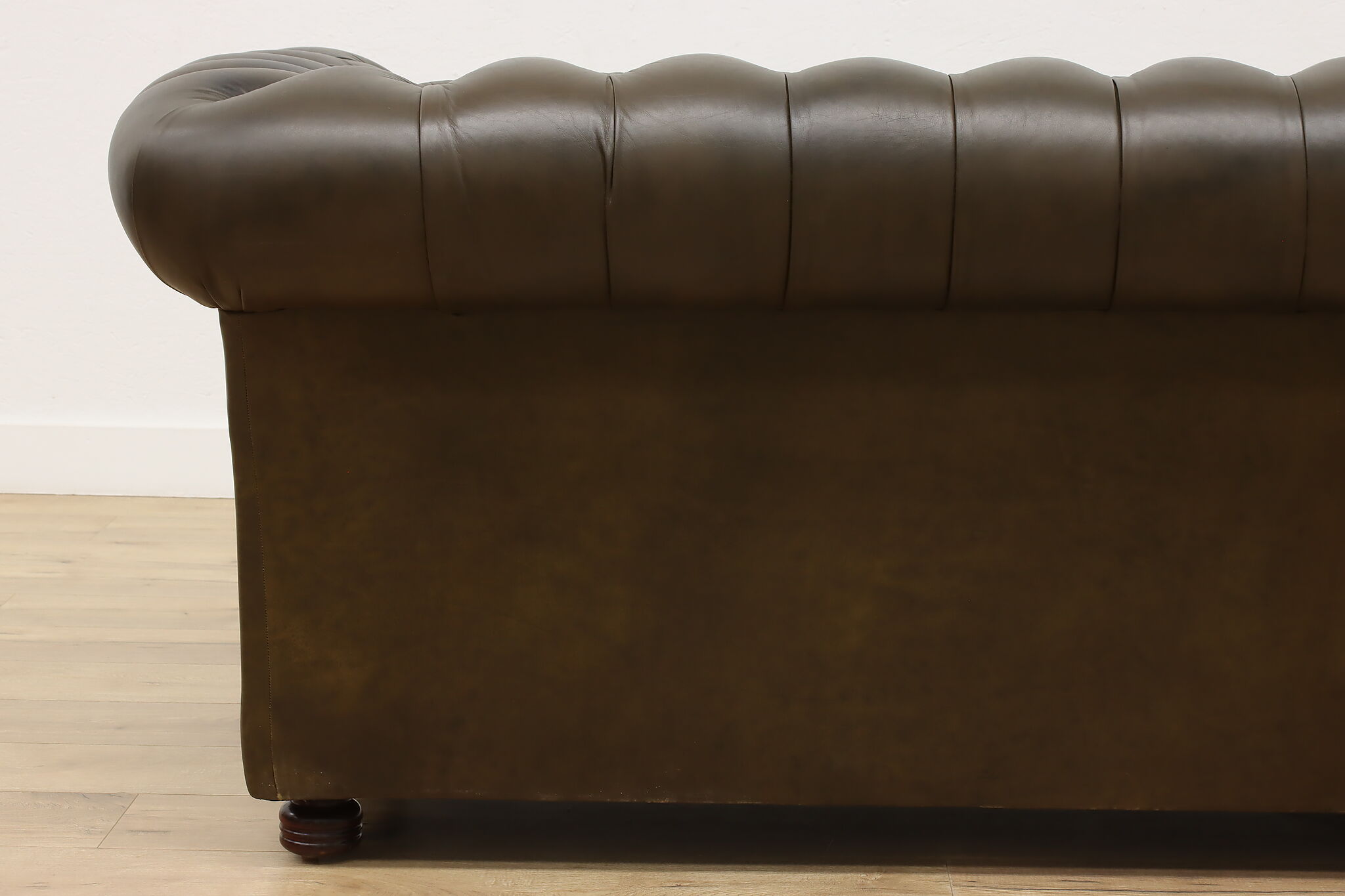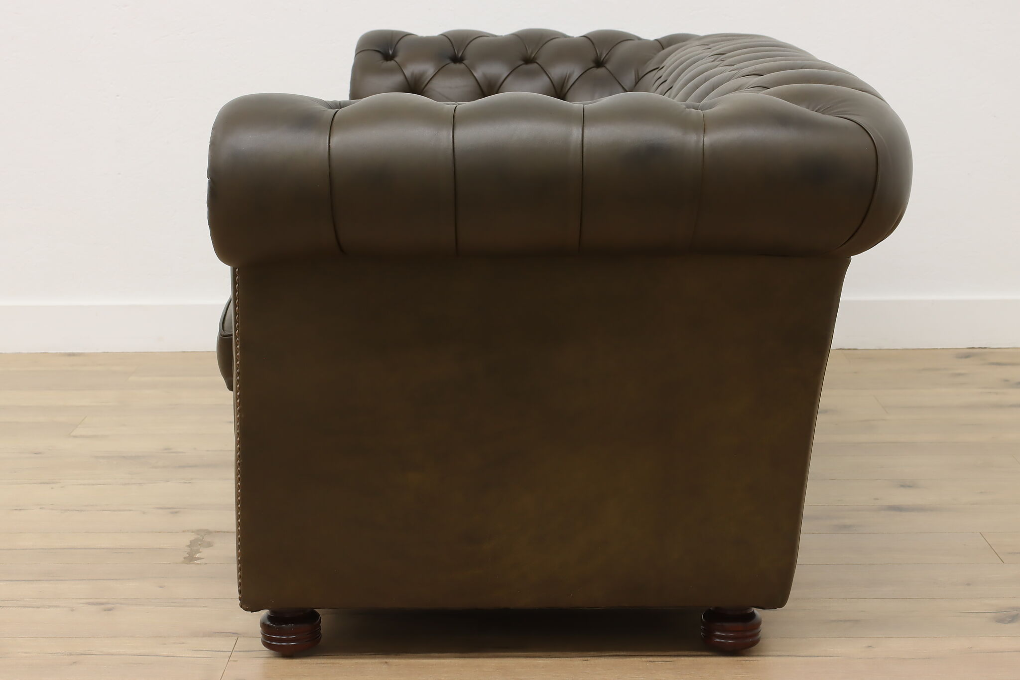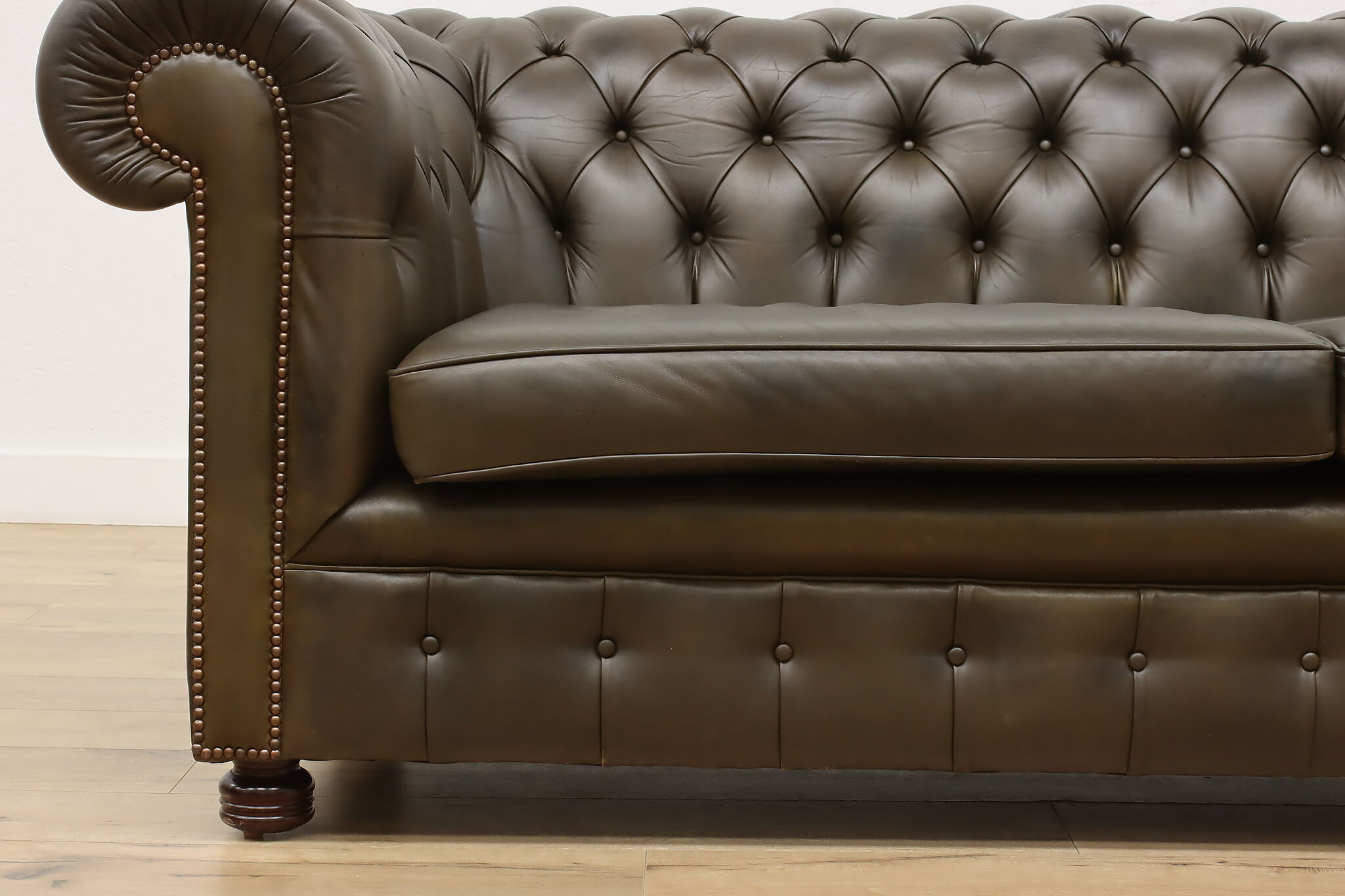 This traditional "Chesterfield" tufted leather sofa or couch is a classic design that oozes elegance and refinement.