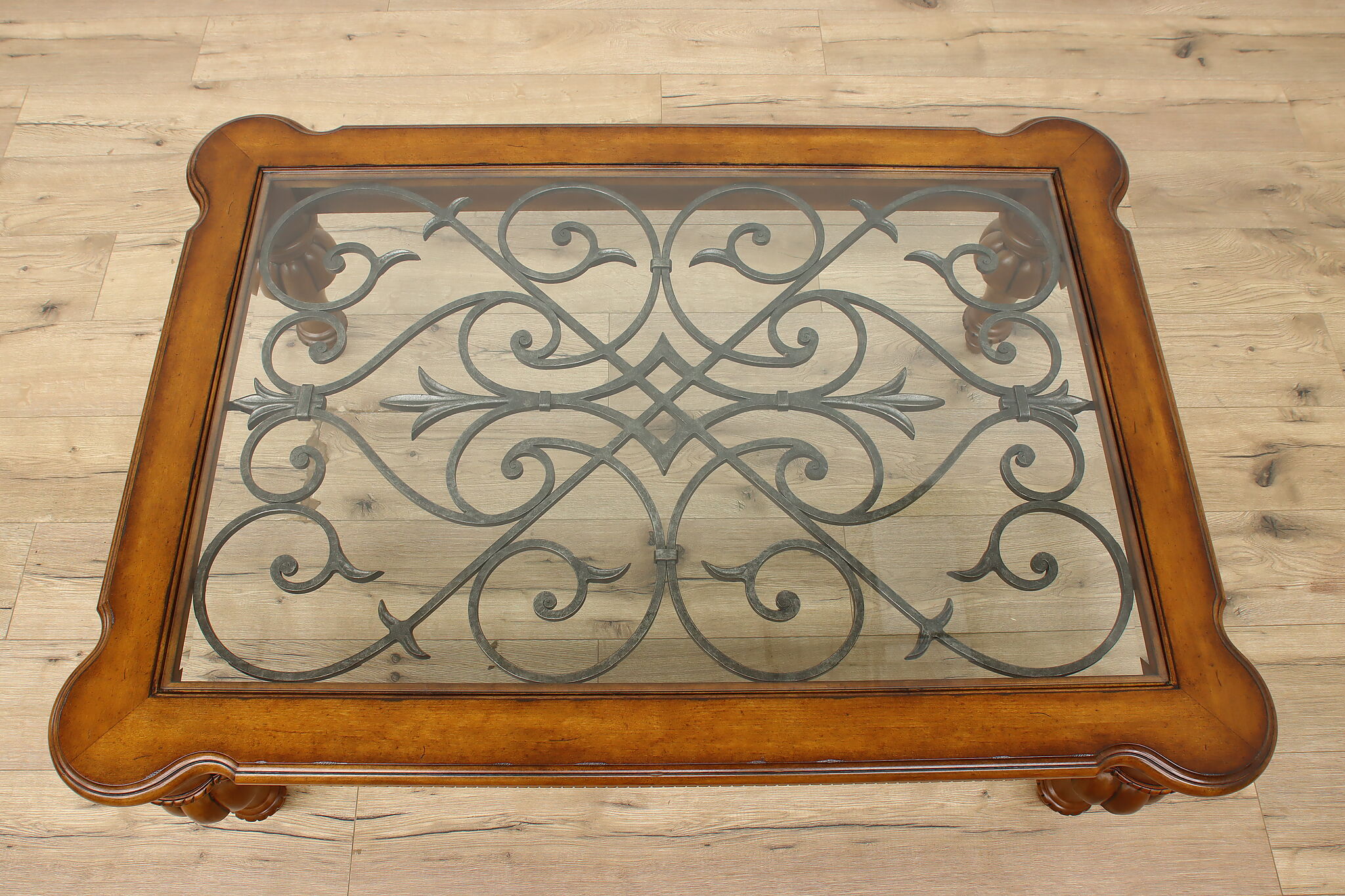 This marvelous coffee table is a part of famous maker Ethan Allen's Tuscany collection.