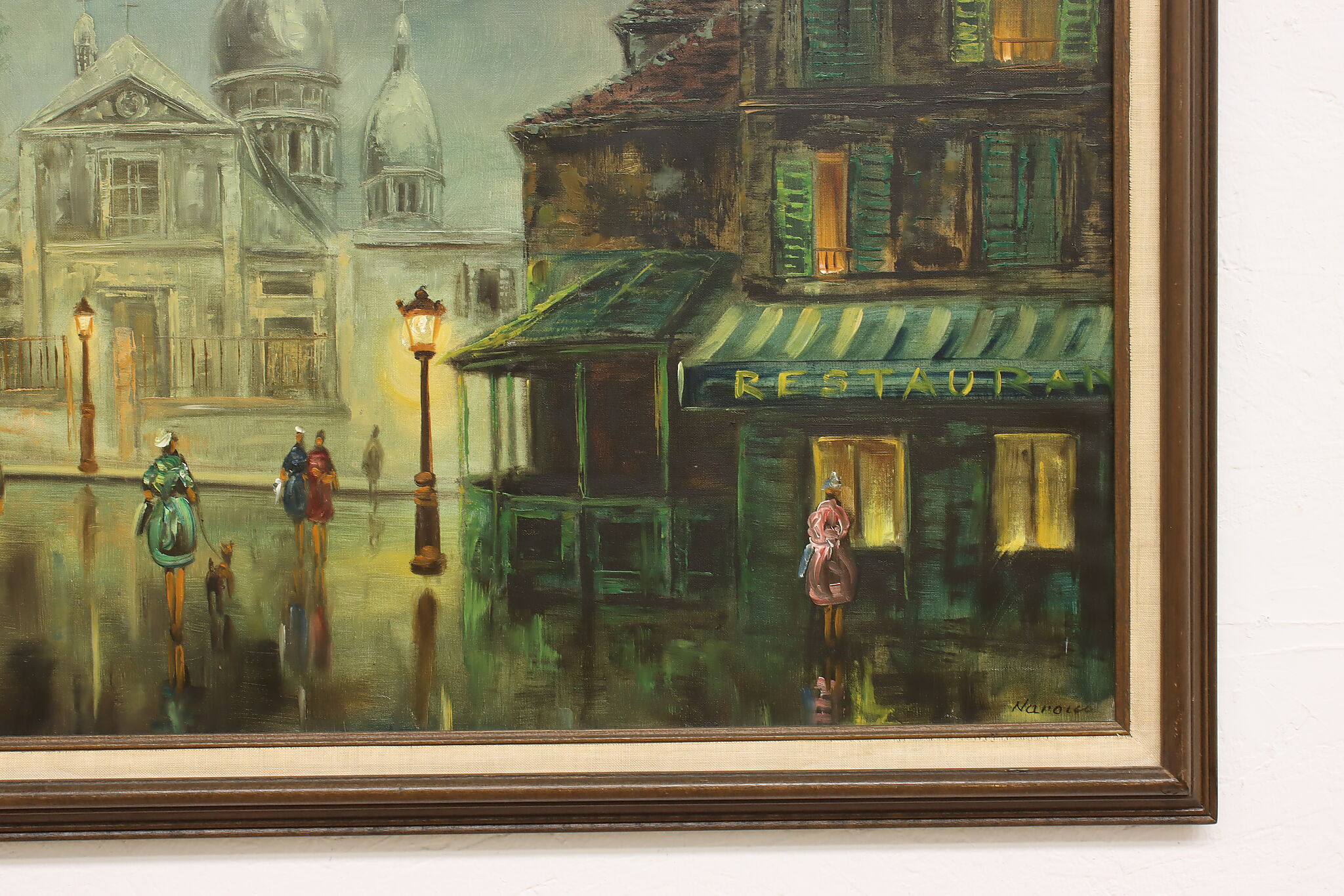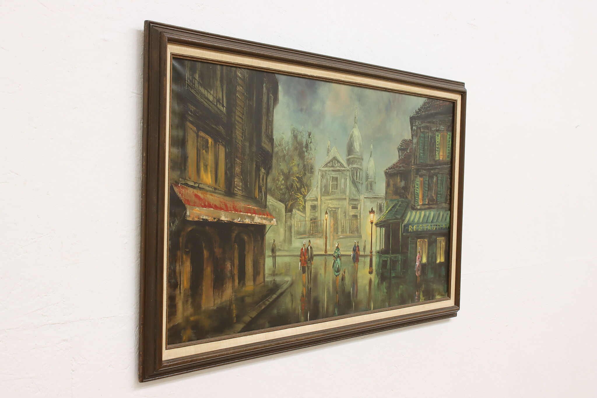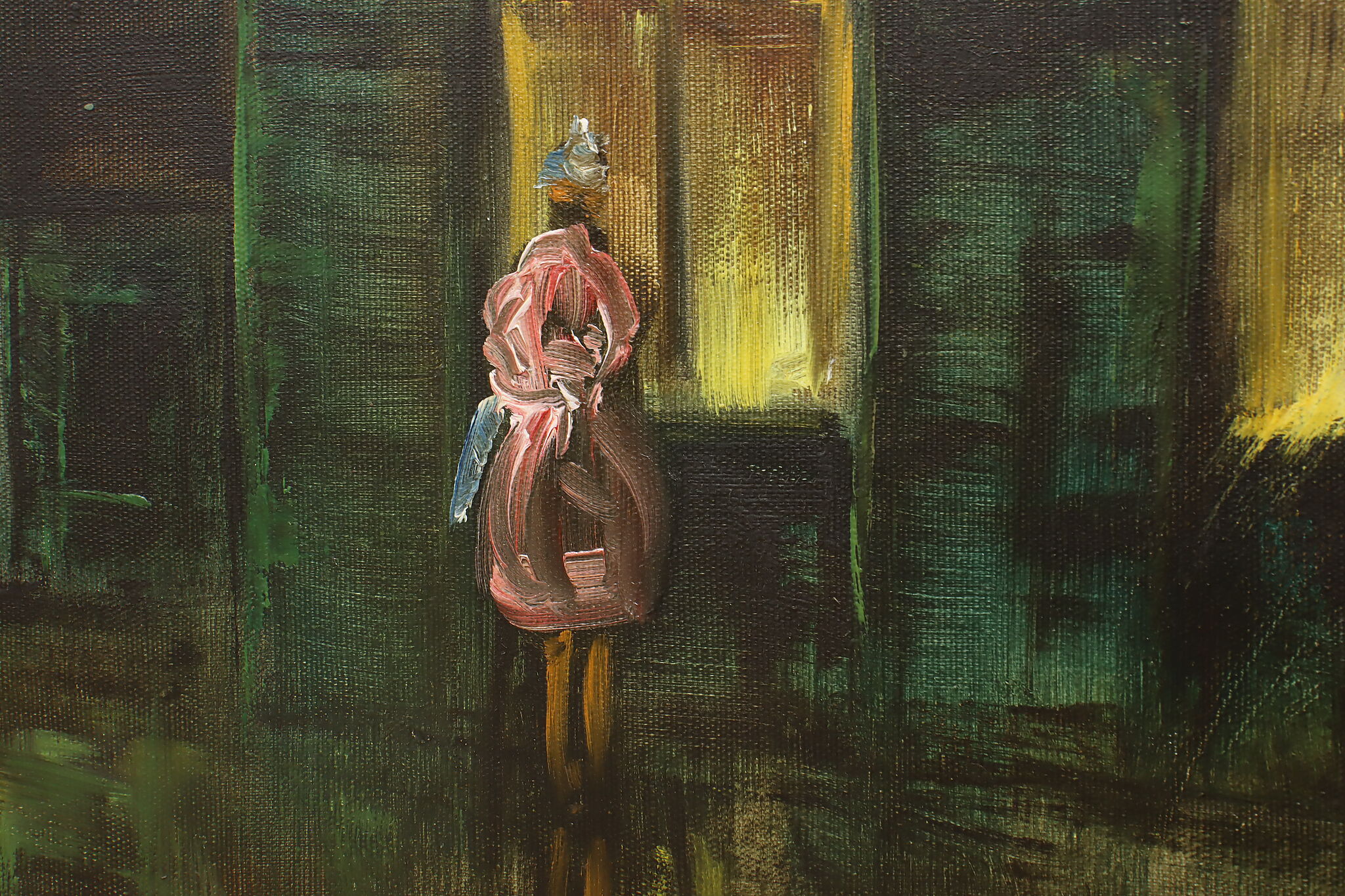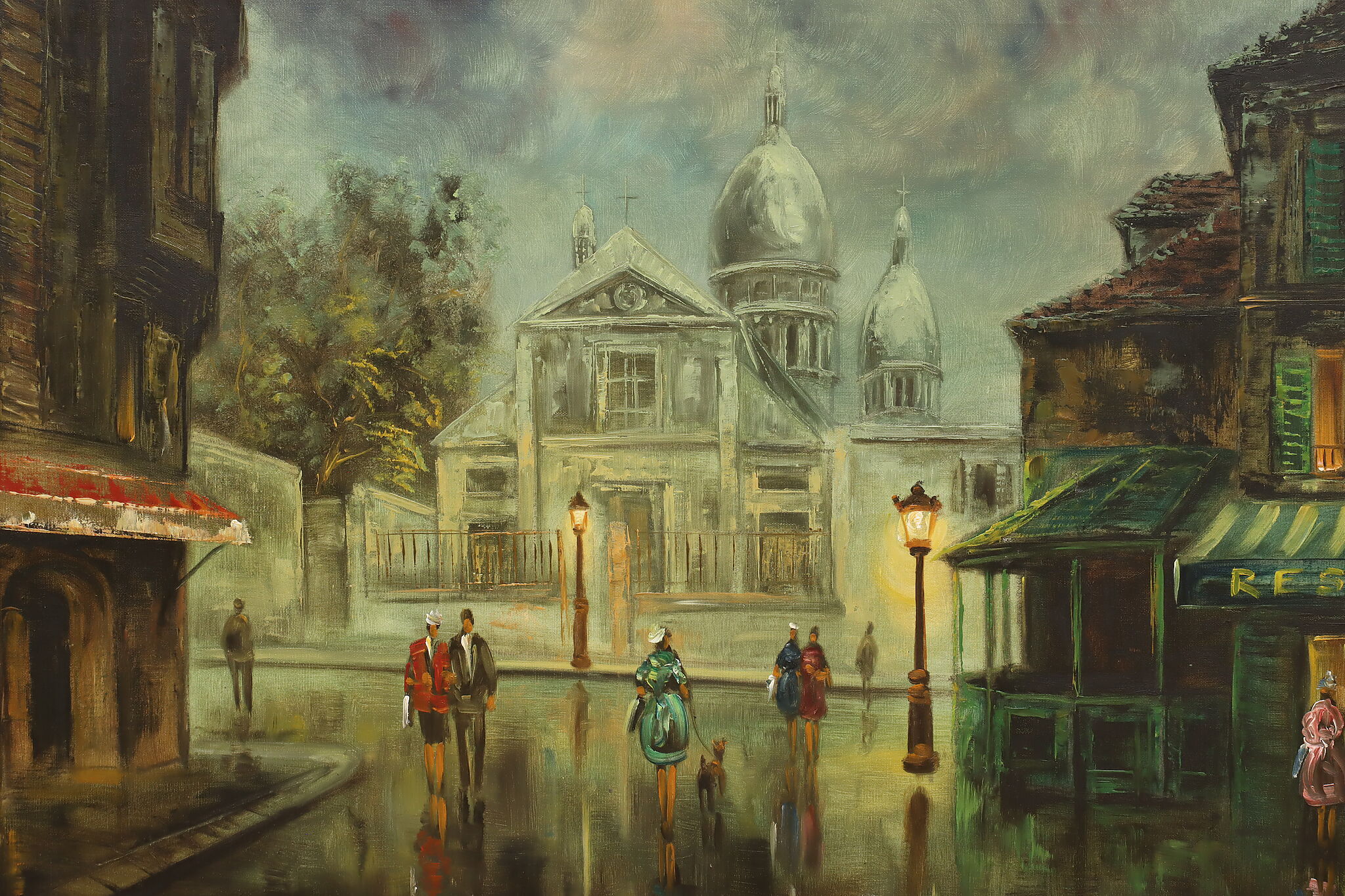 A city winding down for the evening is the subject of this painting.
