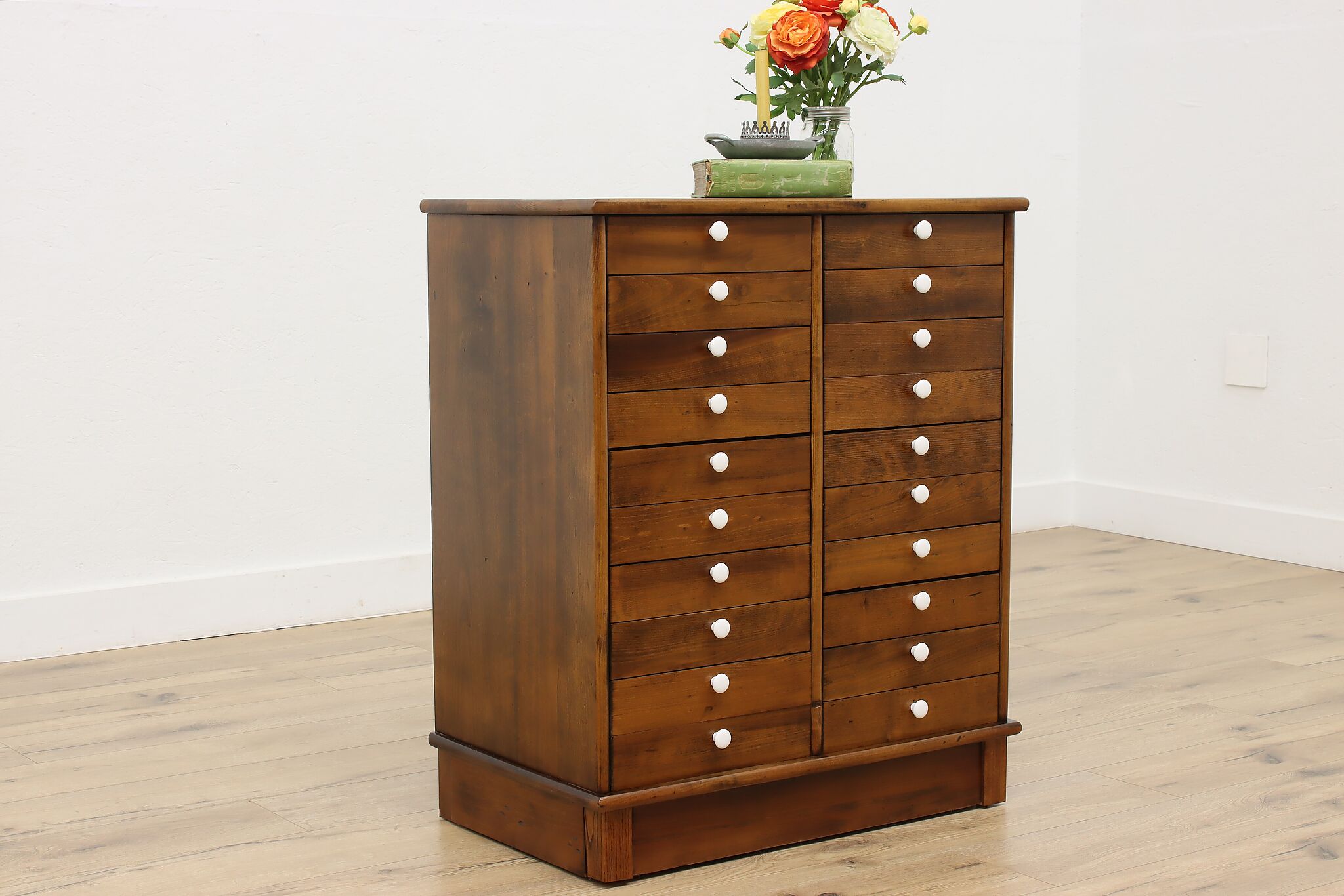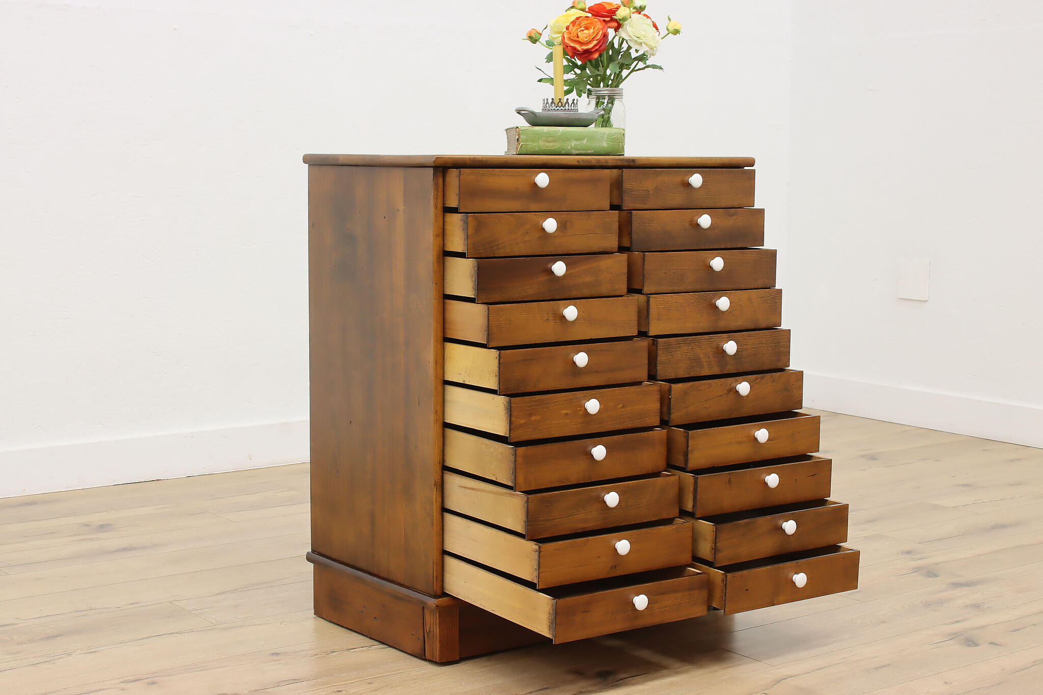 Versatile and practical may not be the first words that come to mind when thinking about antique furniture, but we assure you, this file cabinet can be very useful in your home. With its twenty drawers, you can organize your crafting supplies, file important documents, or fill it with your favorite trinkets.