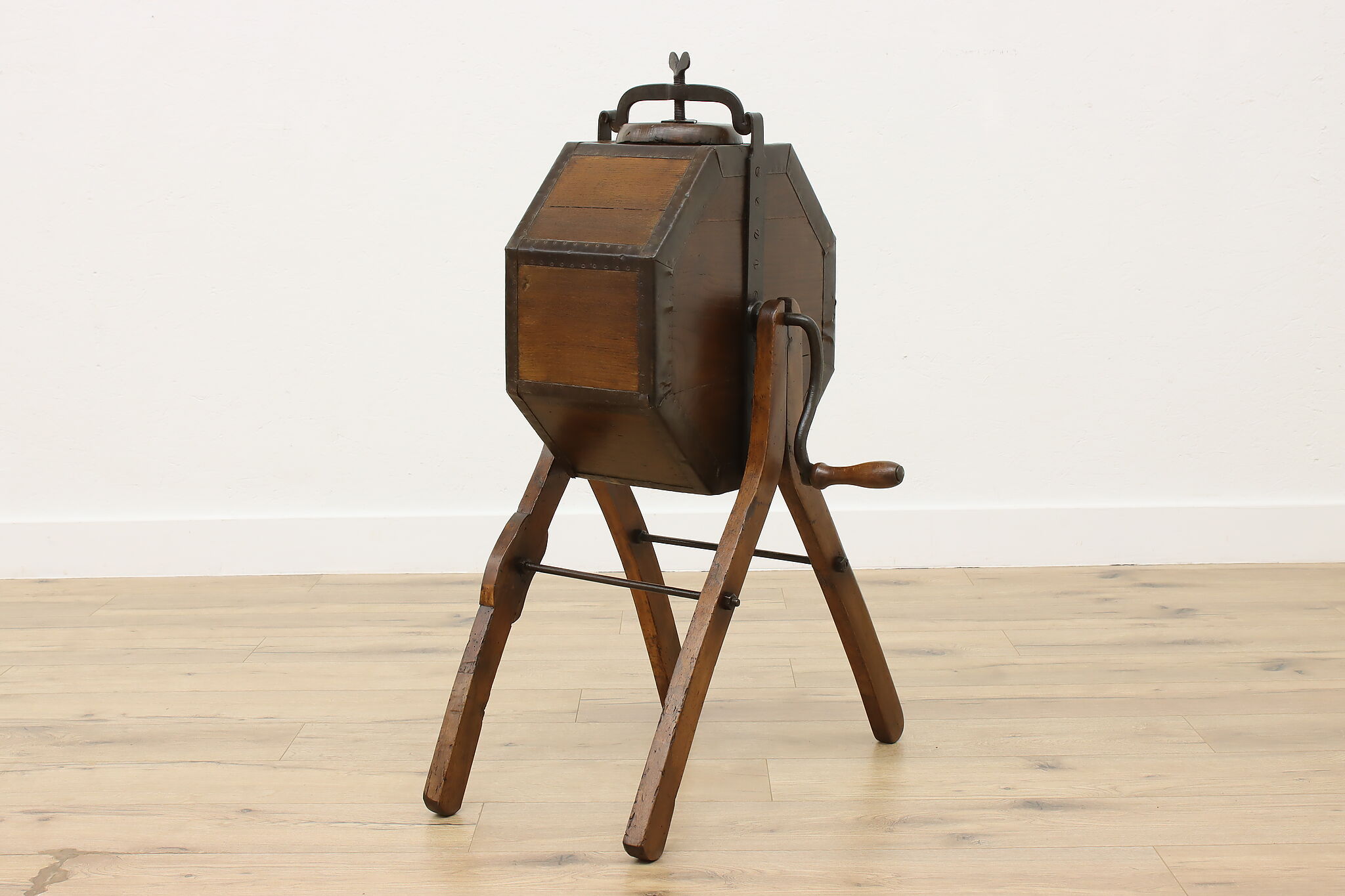 This unique butter churn would be a fantastic garden or porch decoration for a farmhouse.