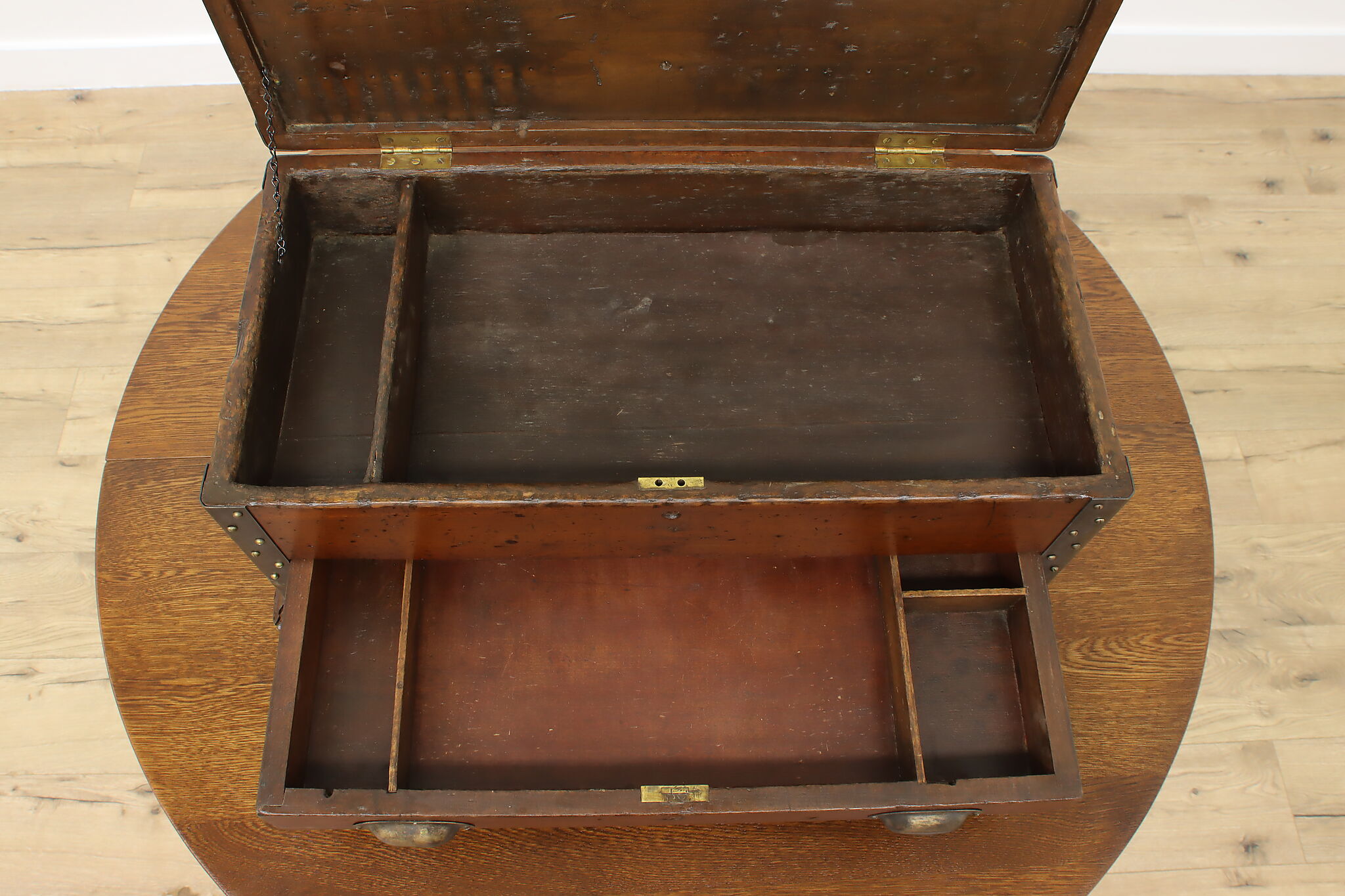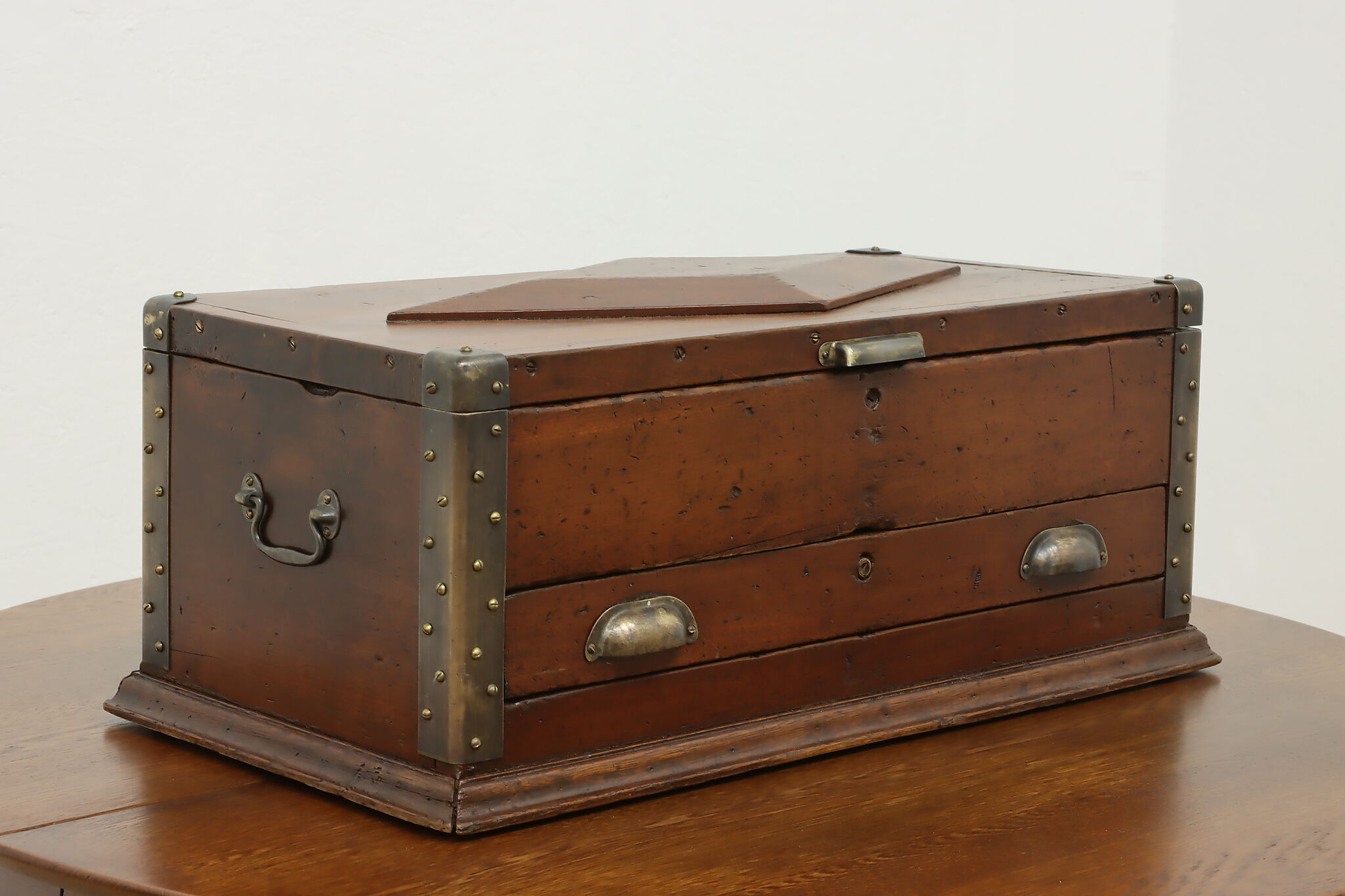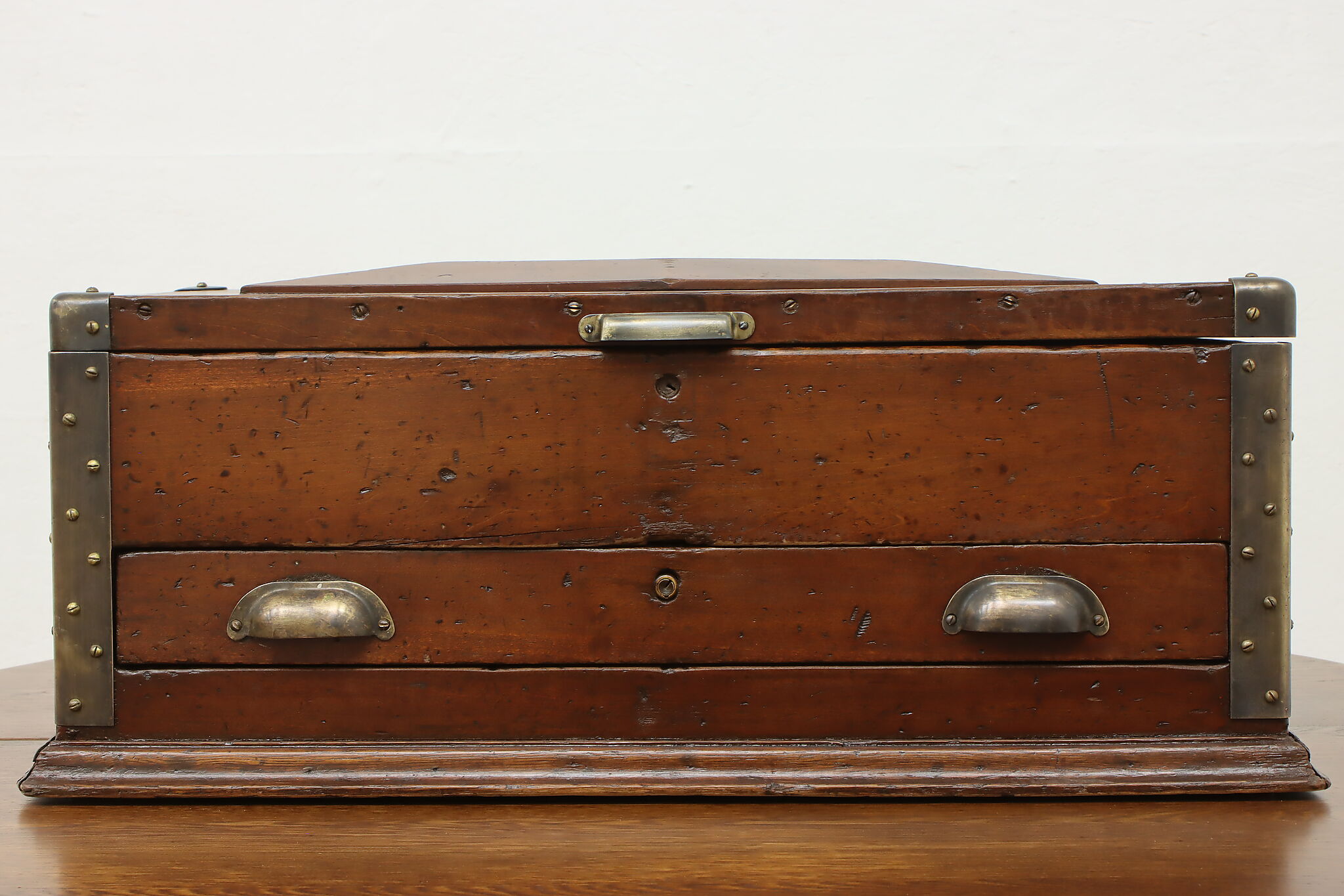 A carpenter's tool chest still functions well for tool storage, but also could store other items as well, such as important documents or keepsakes.