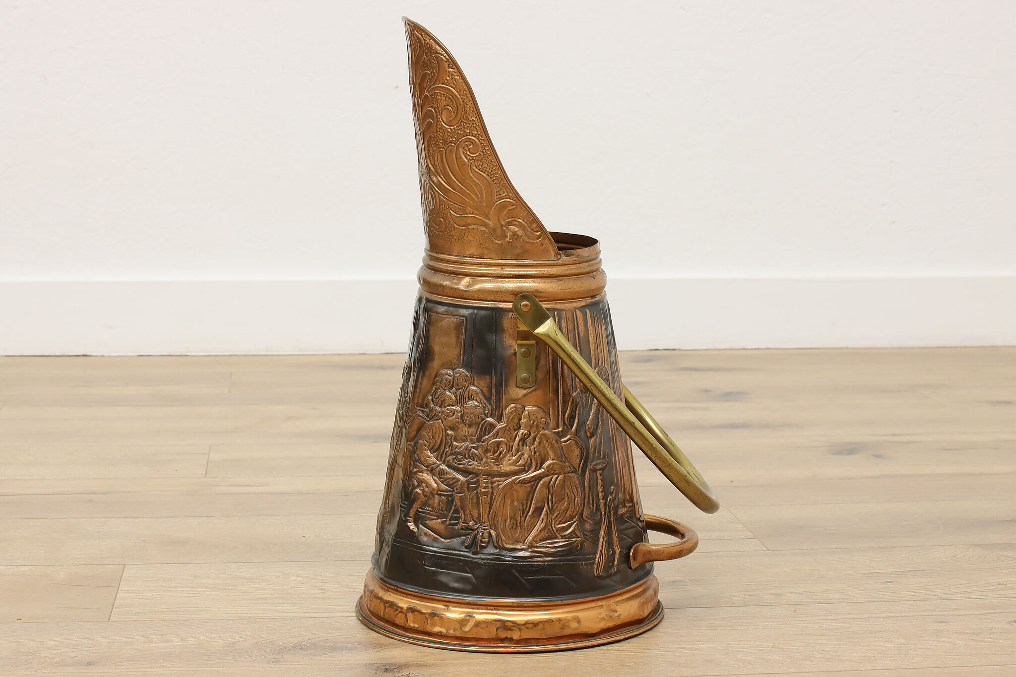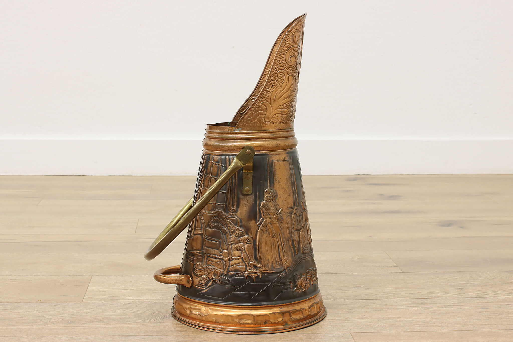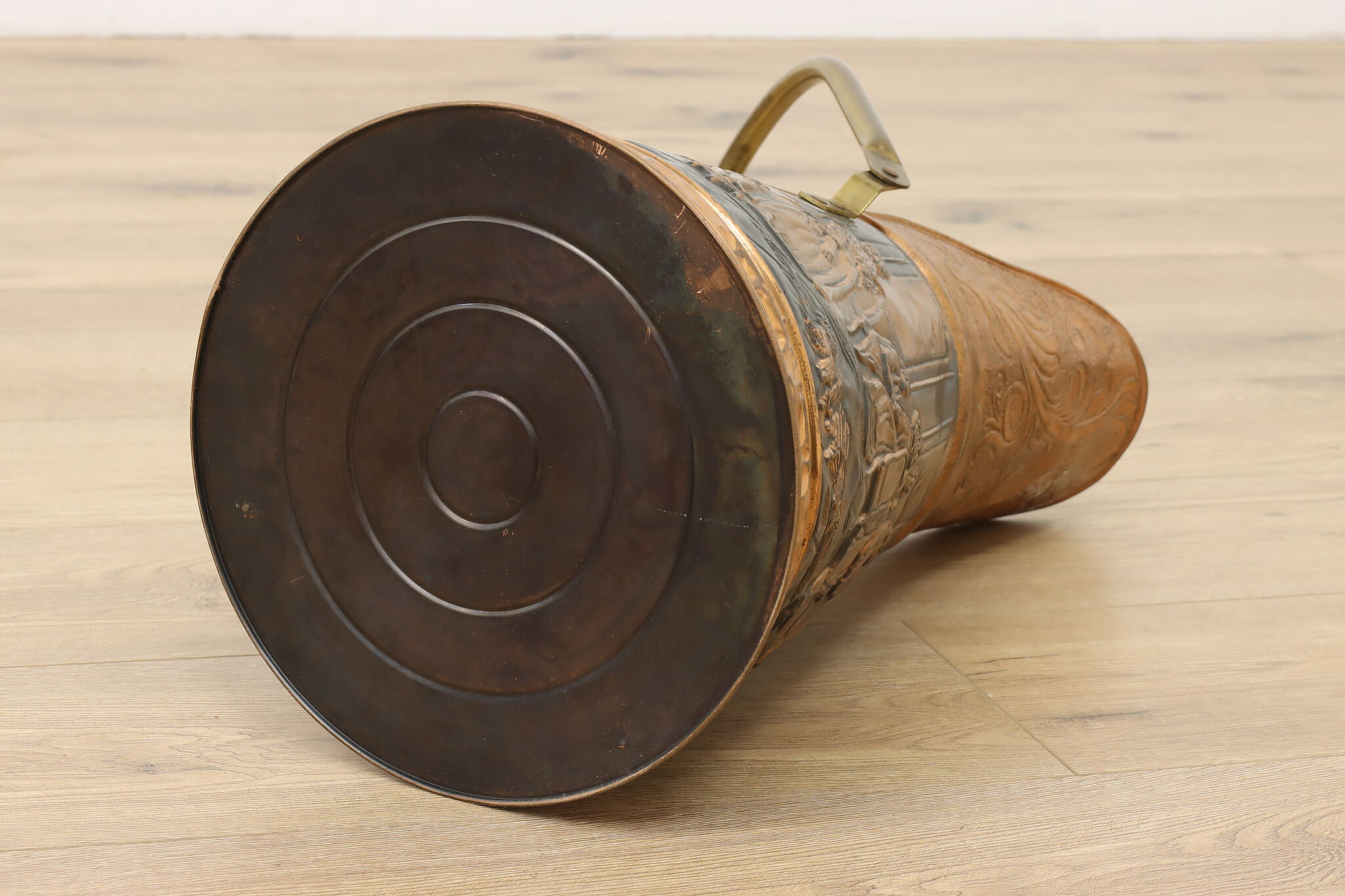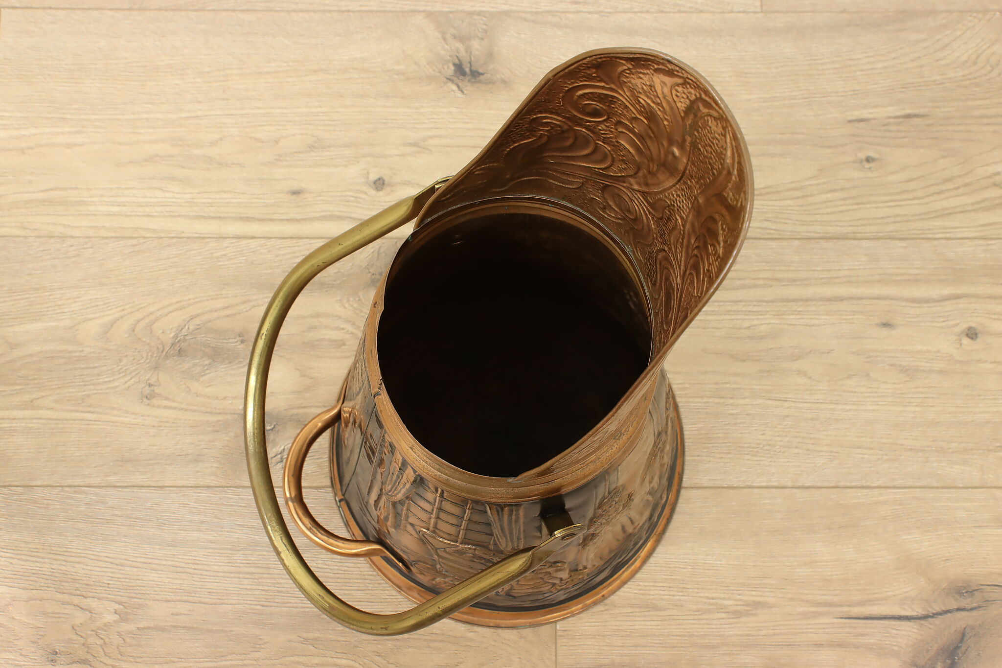 Used to scoop coal or kindling, this farmhouse scuttle could now be a unique planter or umbrella stand.