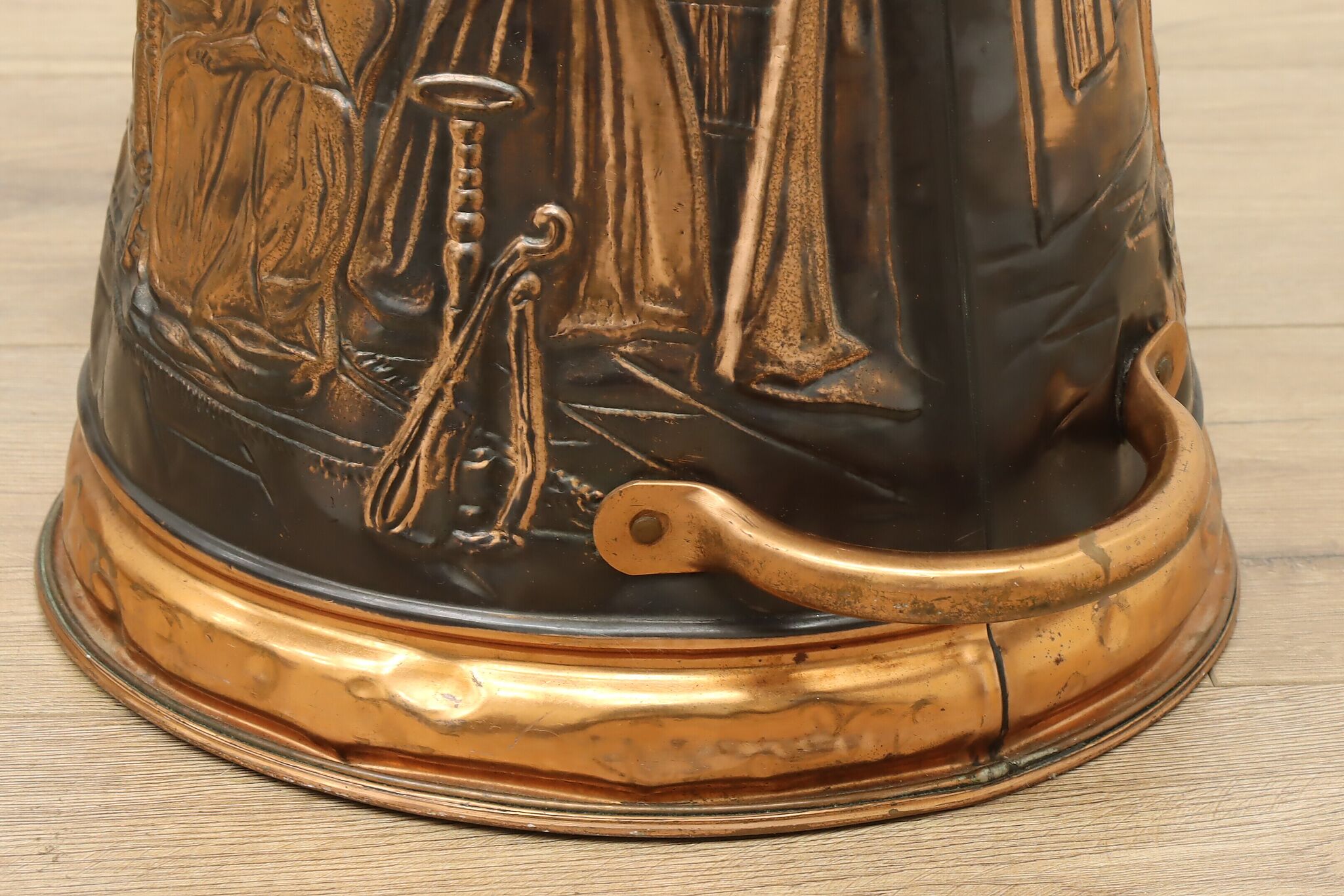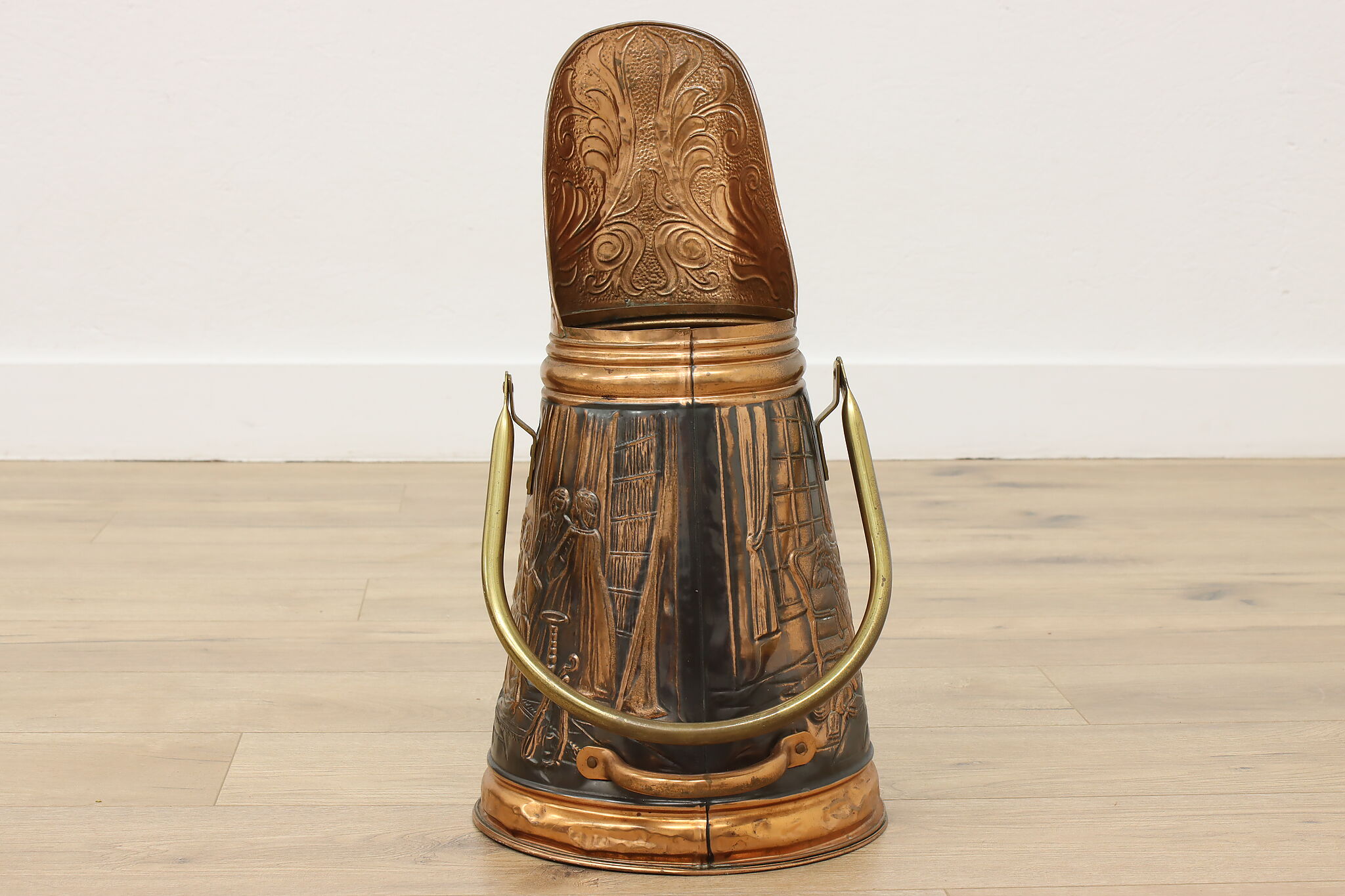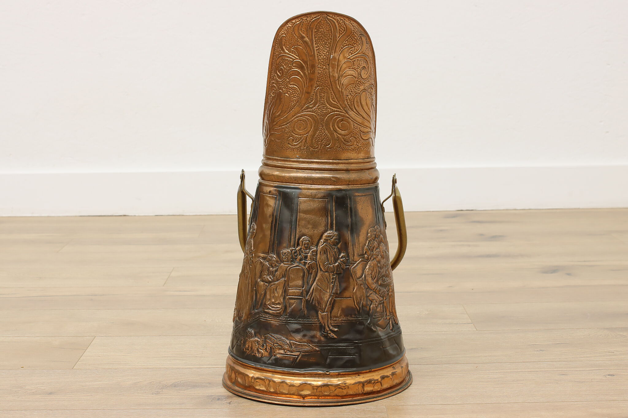 Used to scoop coal or kindling, this farmhouse scuttle could now be a unique planter or umbrella stand.