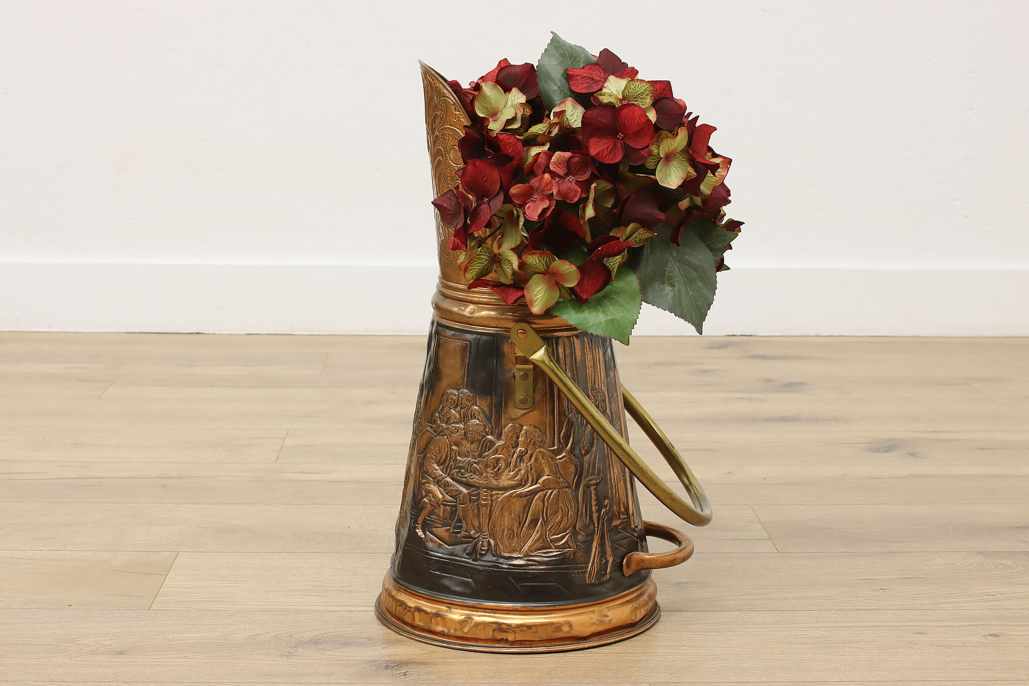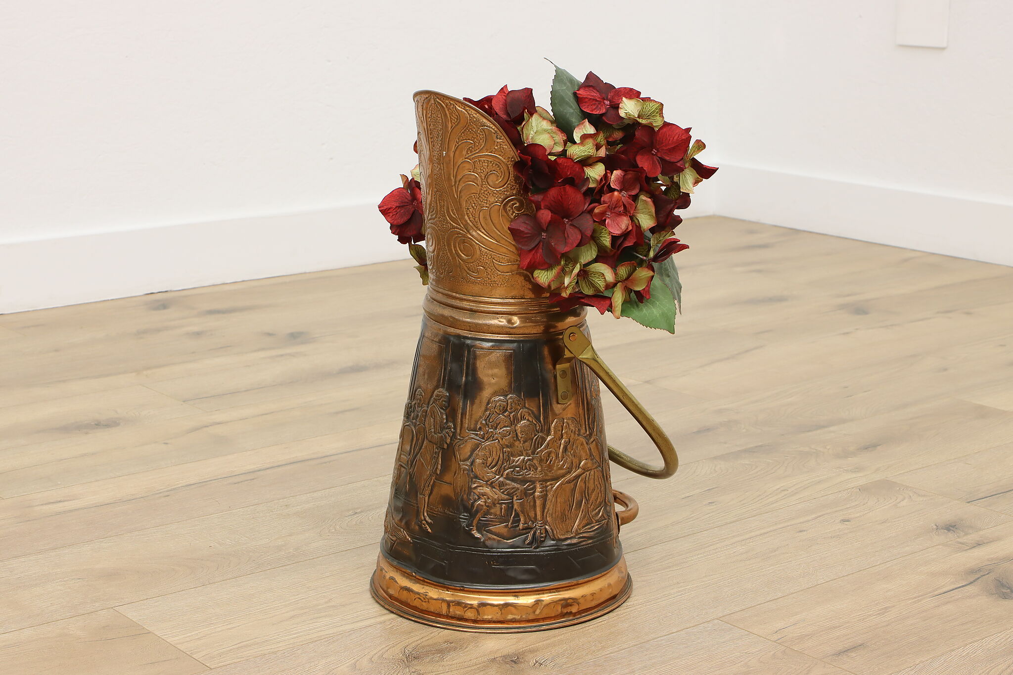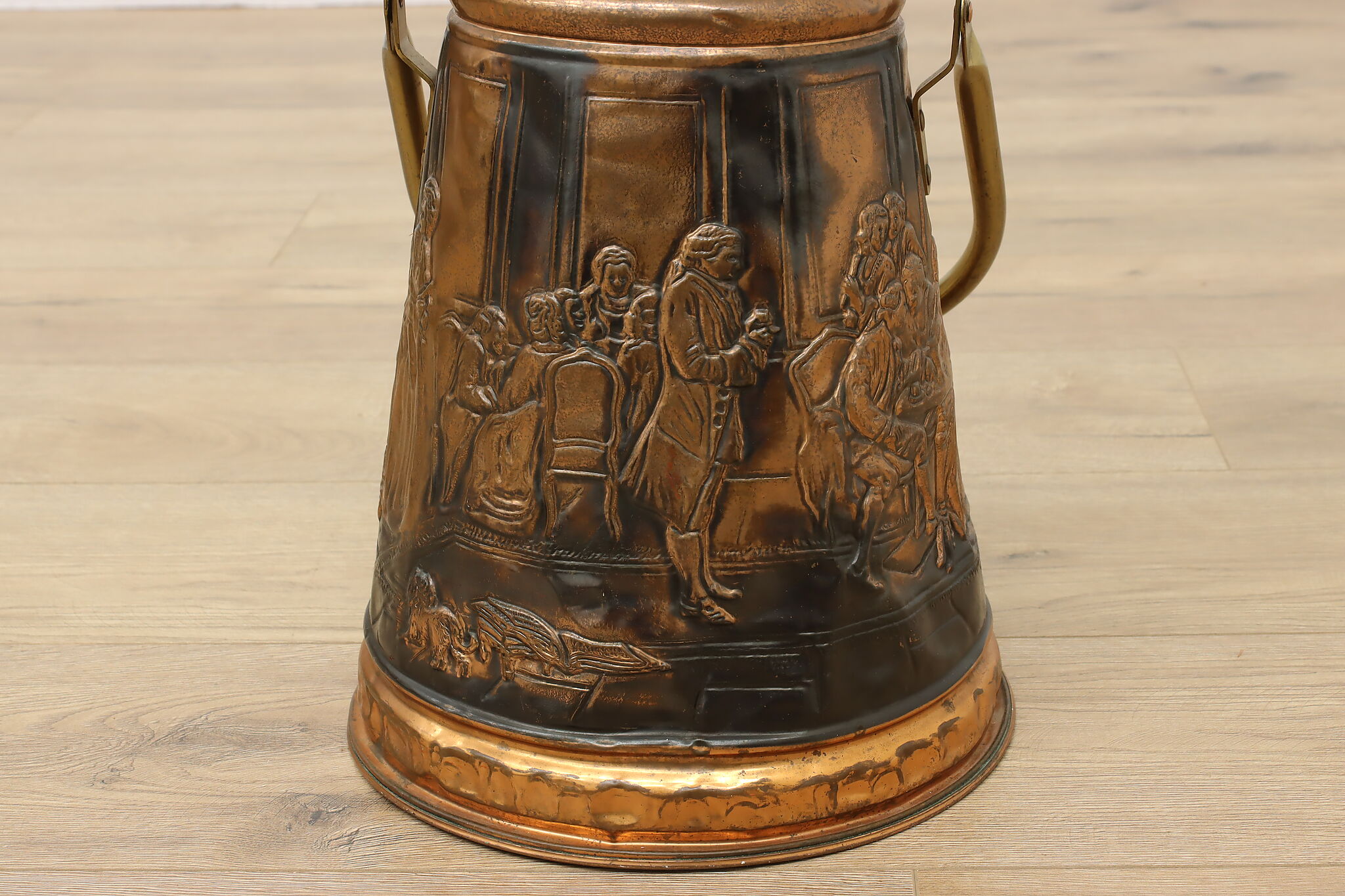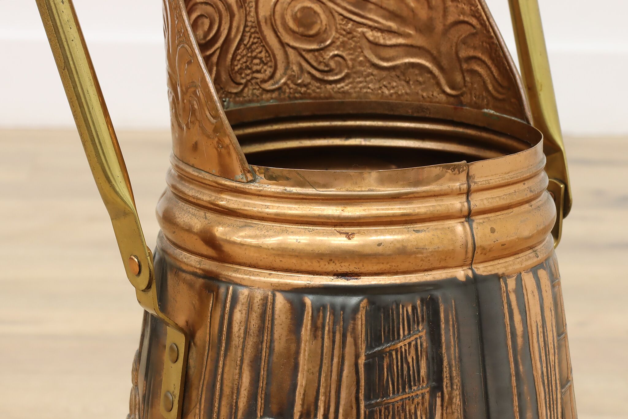 Used to scoop coal or kindling, this farmhouse scuttle could now be a unique planter or umbrella stand.