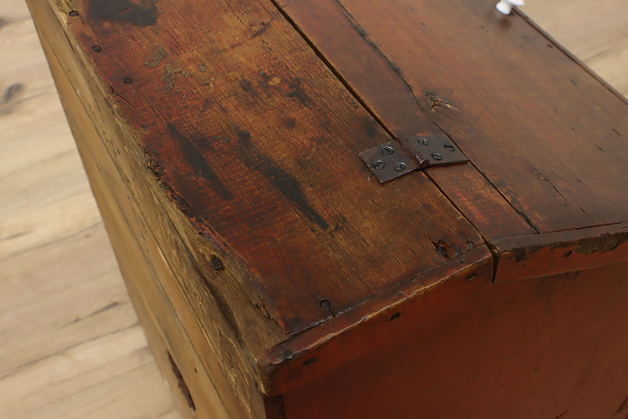 A primitive farmhouse grain or fireplace kindling bin would be perfect in a kitchen or mudroom for boots.