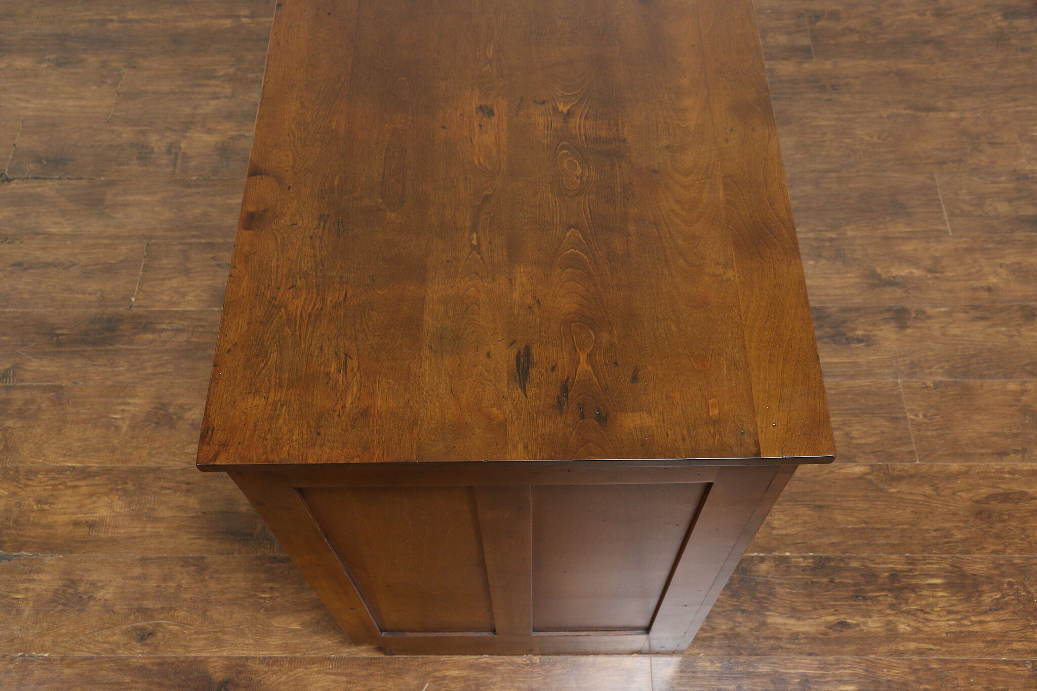 This solid maple and birch hardwood farmhouse kitchen pantry counter or island dates from about 1900. There are two pull out breadboards plus 19 drawers of various sizes. Back and sides are paneled, bin pulls are original.