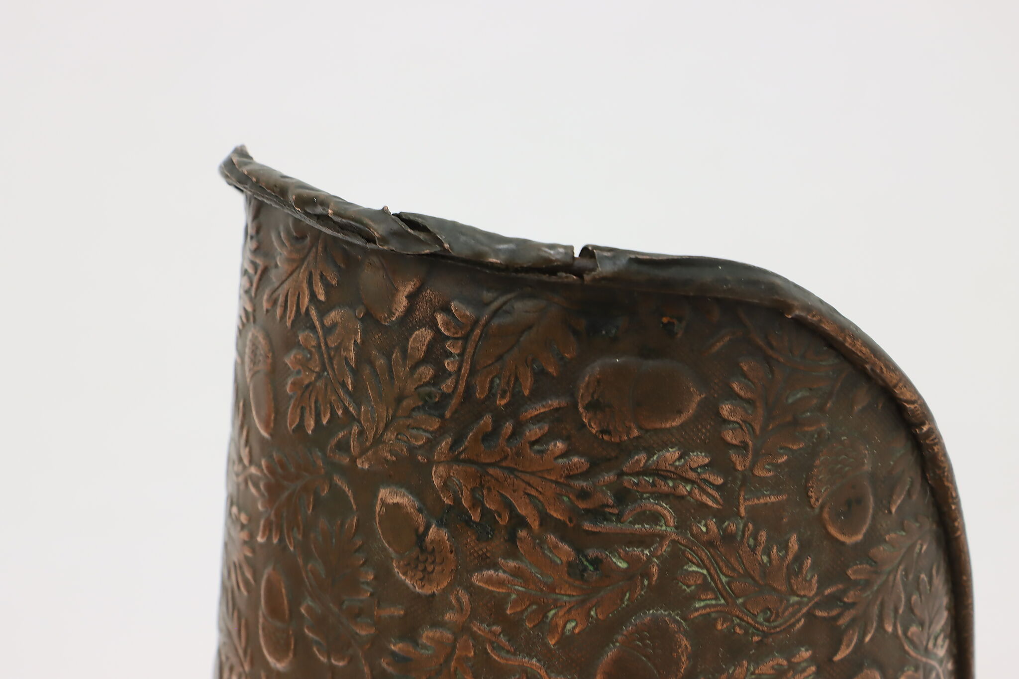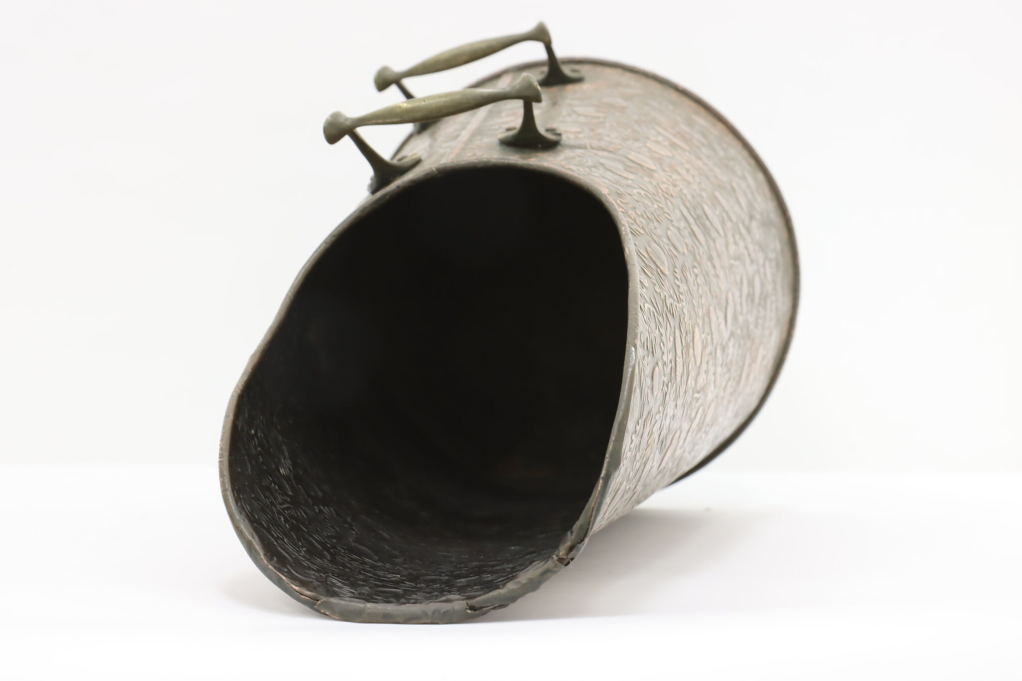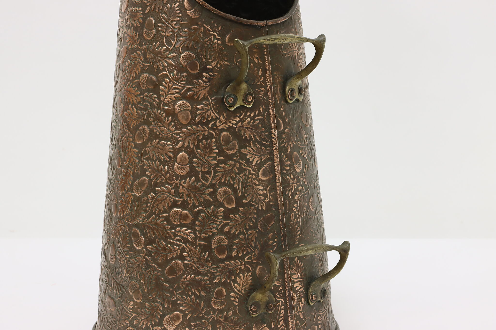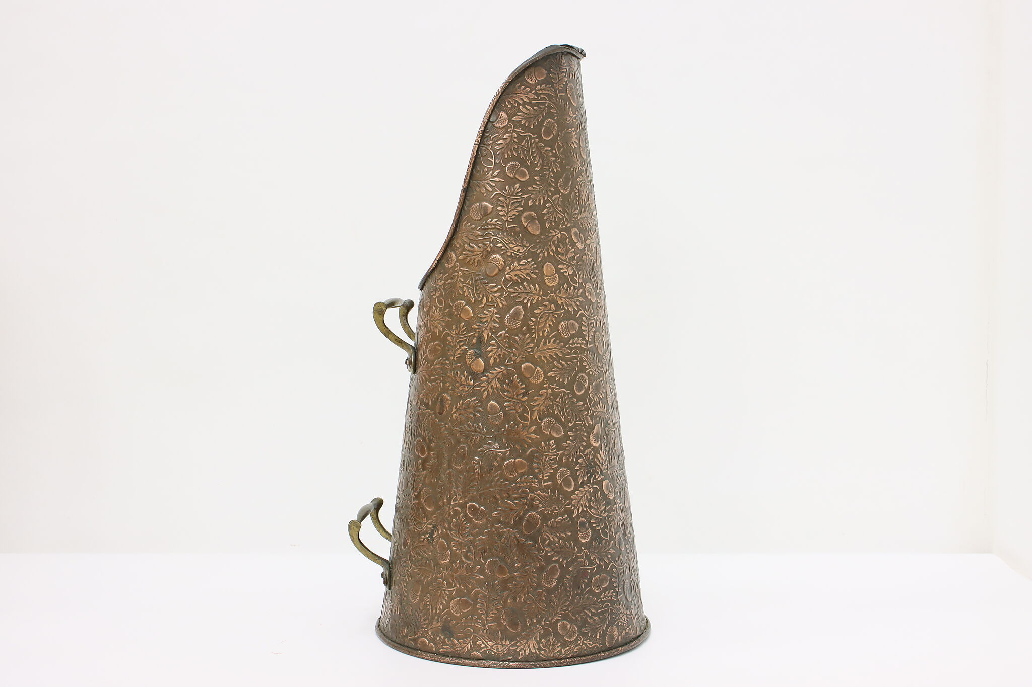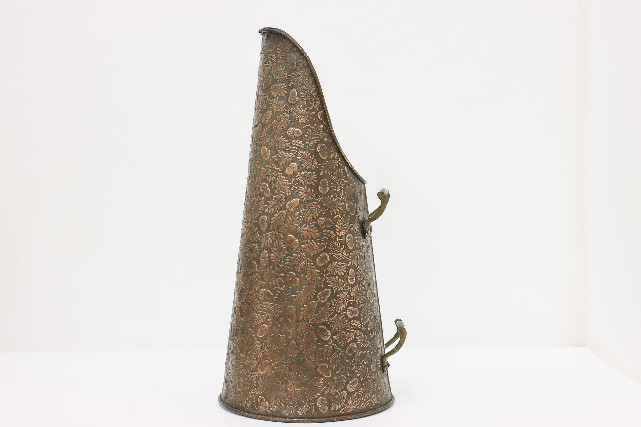 Commissioned for a well-to-do family, this coal scuttle or hod from Holland has beautifully embossed acorn and oak leaf motifs.