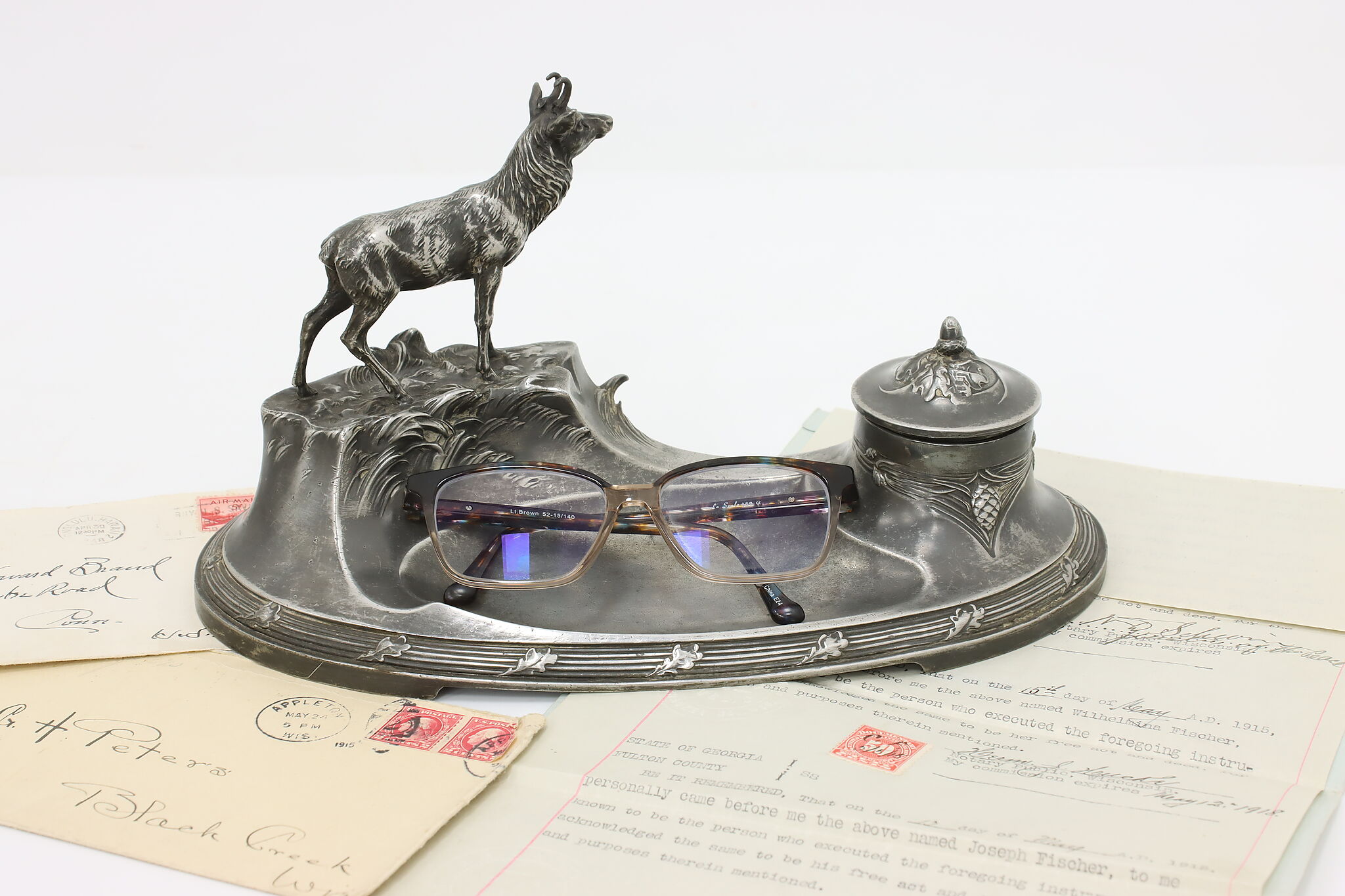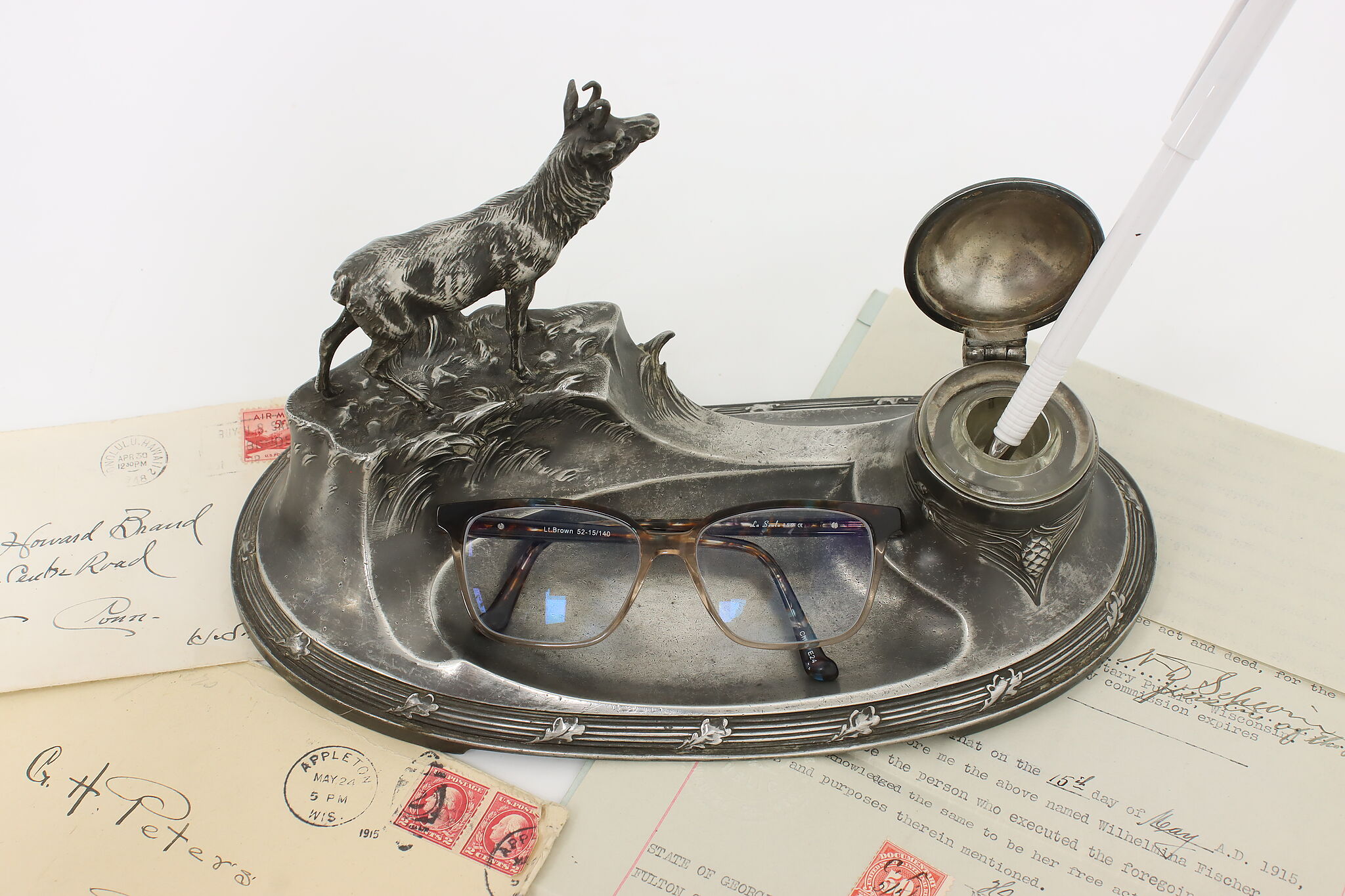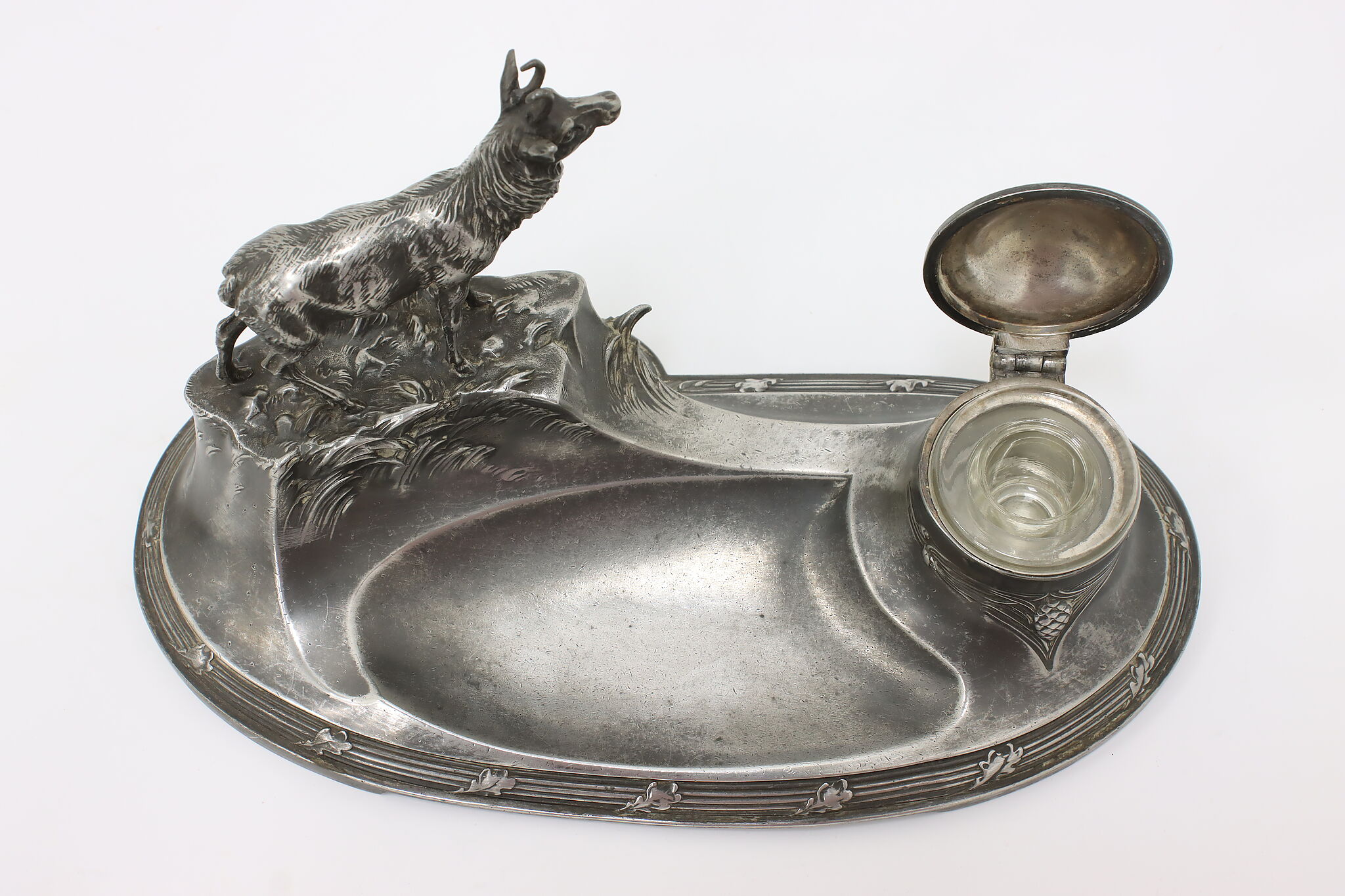 Decorate your office or library with this unique inkwell and its fantastic mountain goat sculpture!
