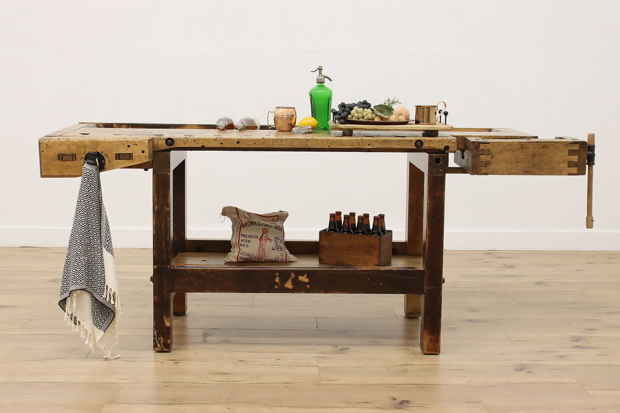 With its gorgeous rustic charm, this carpenter's workbench could be a fabulous kitchen island in your home!