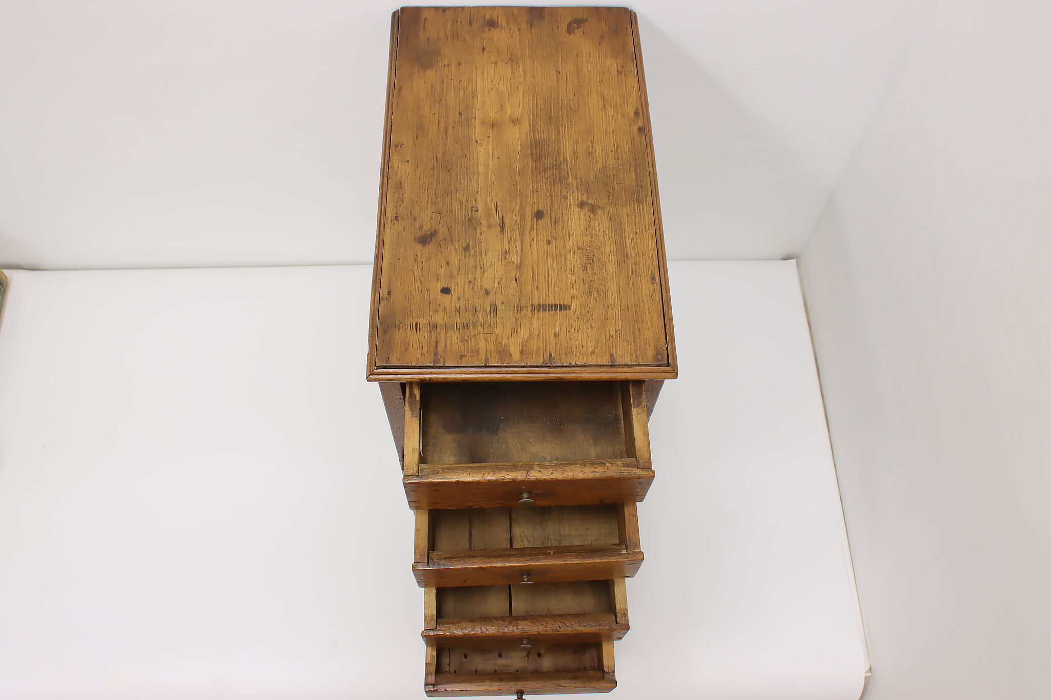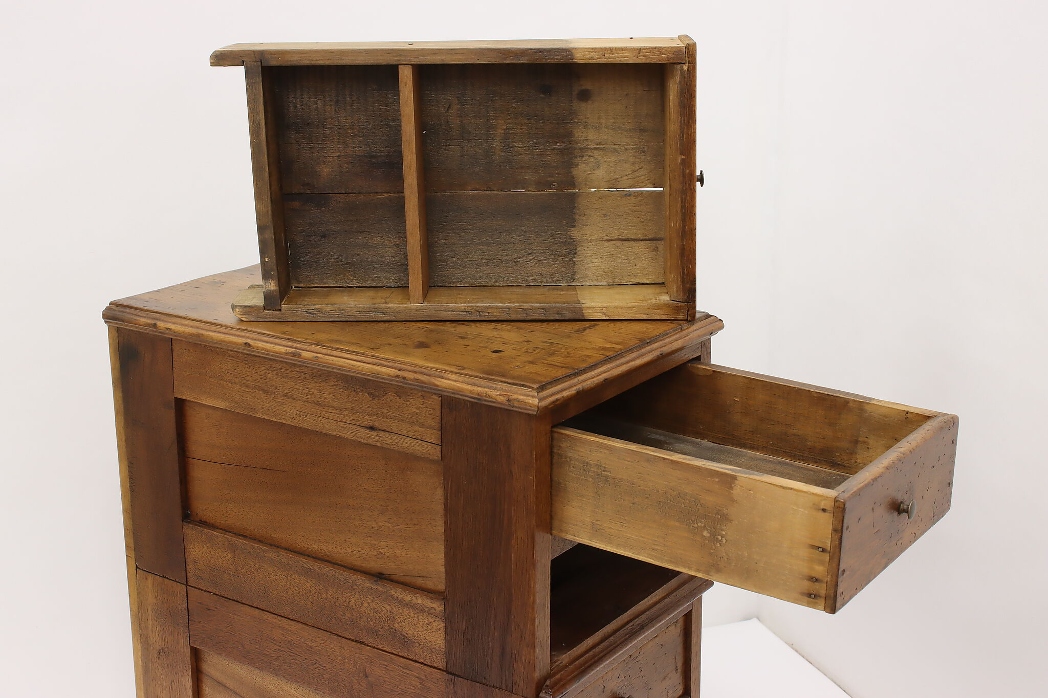 Size is 11" wide, 18" deep and 20.5" tall. Drawer size is 7.5" wide, 12.5" wide and 2.5" tall.