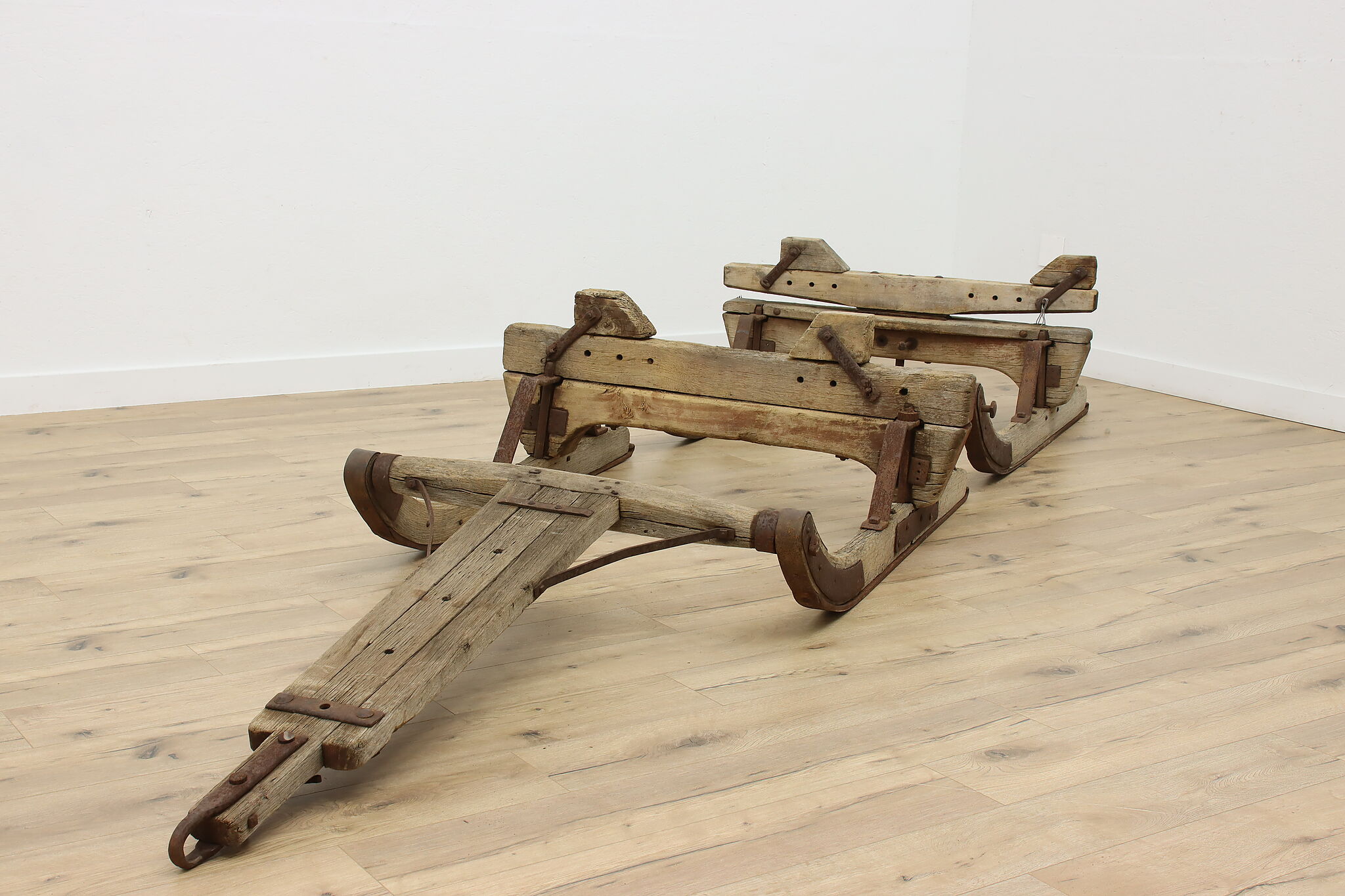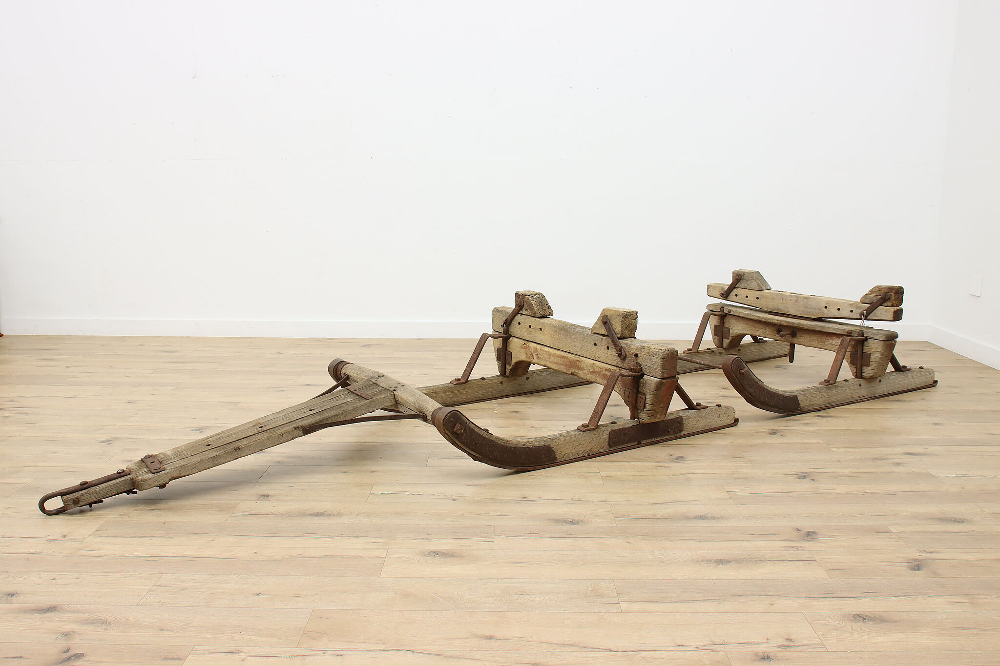 This farmhouse salvage massive two piece logging scoot, sled or sleigh is from the Wisconsin north woods and would make interesting decor for a yard or lodge.