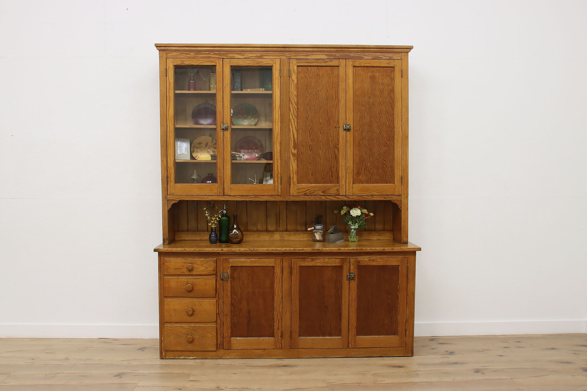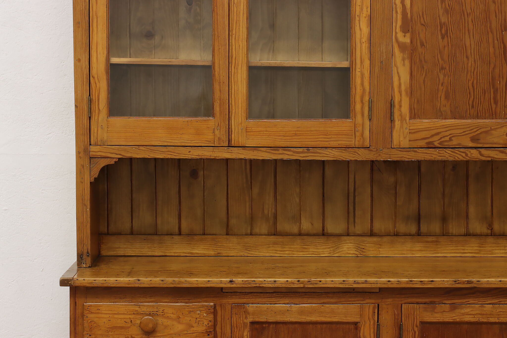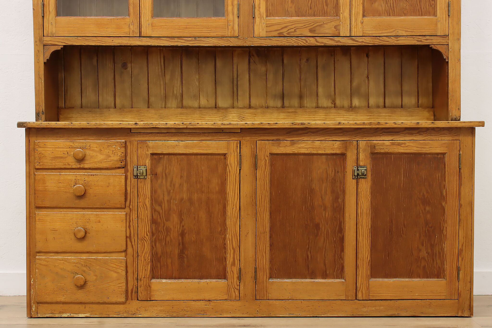 This large farmhouse country cupboard or bar cabinet has just the right amount of rustic charm to add character to your home.