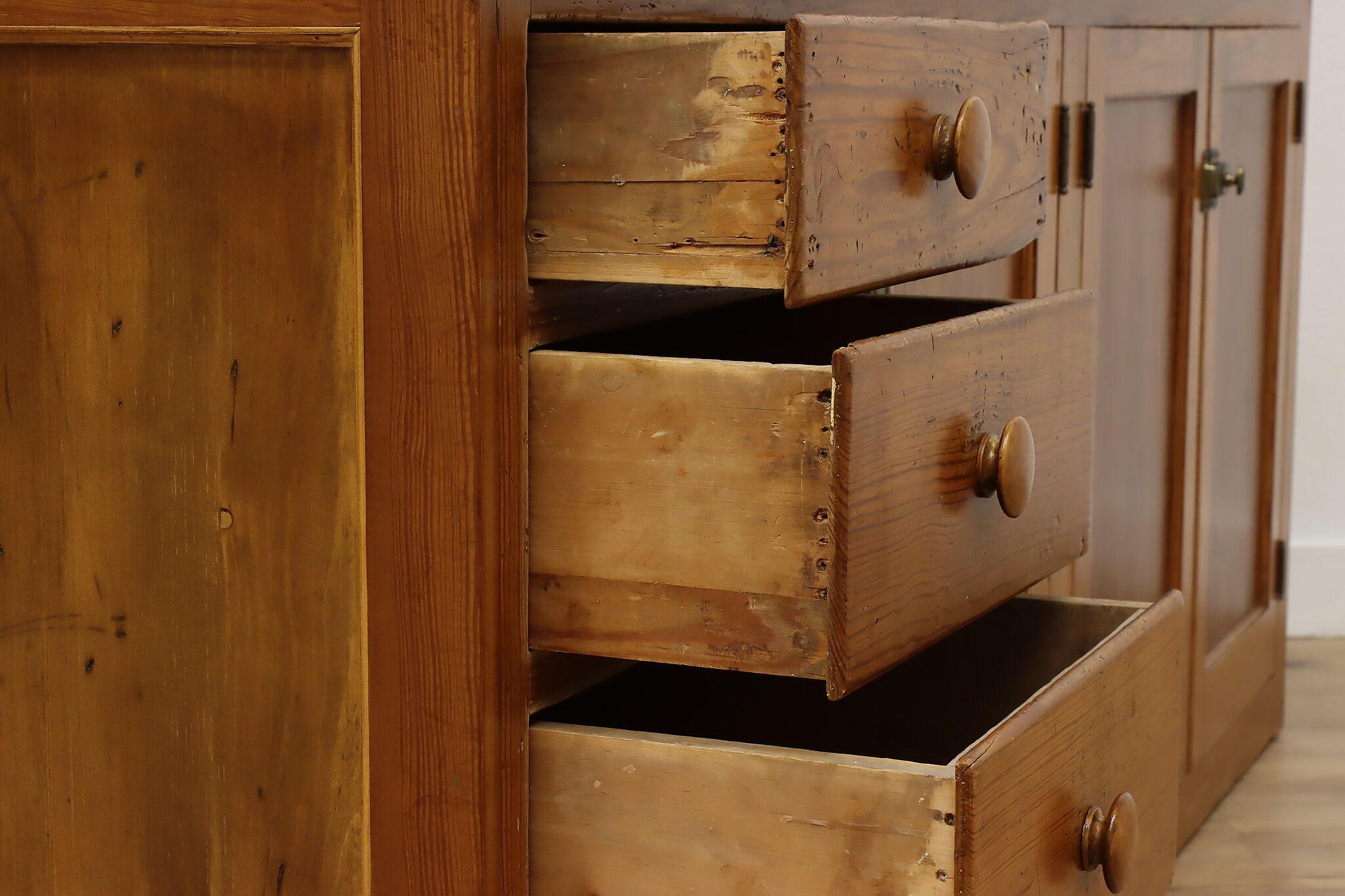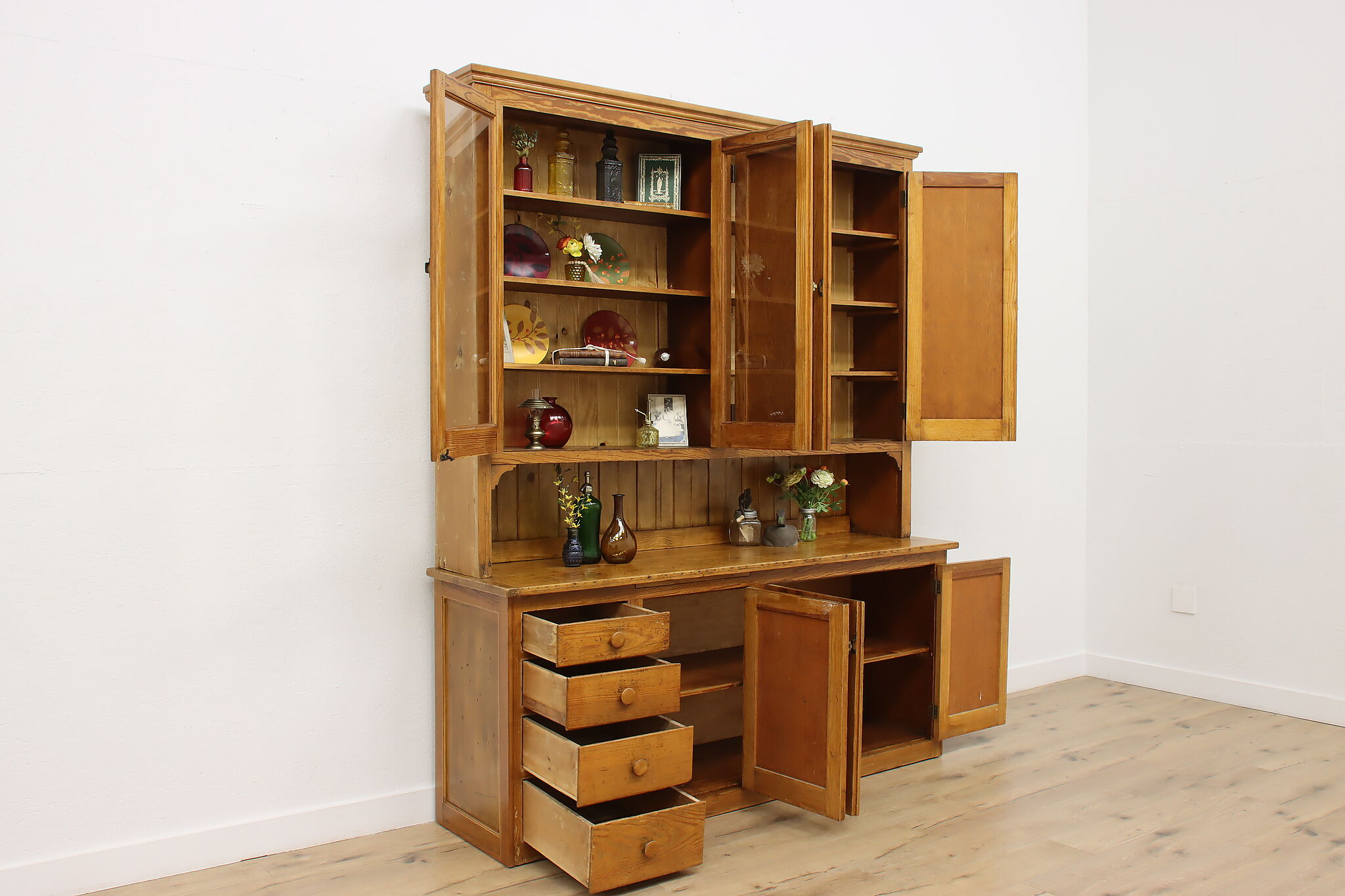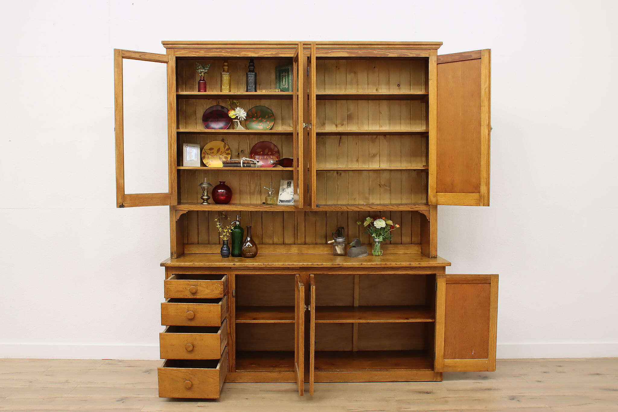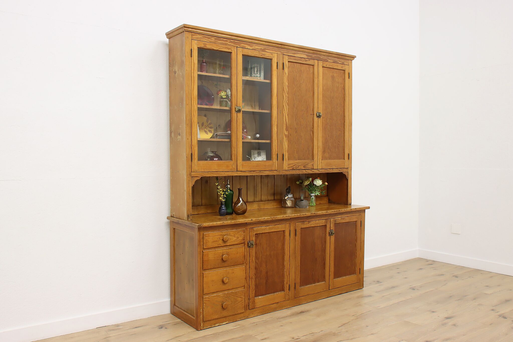 This large farmhouse country cupboard or bar cabinet has just the right amount of rustic charm to add character to your home.