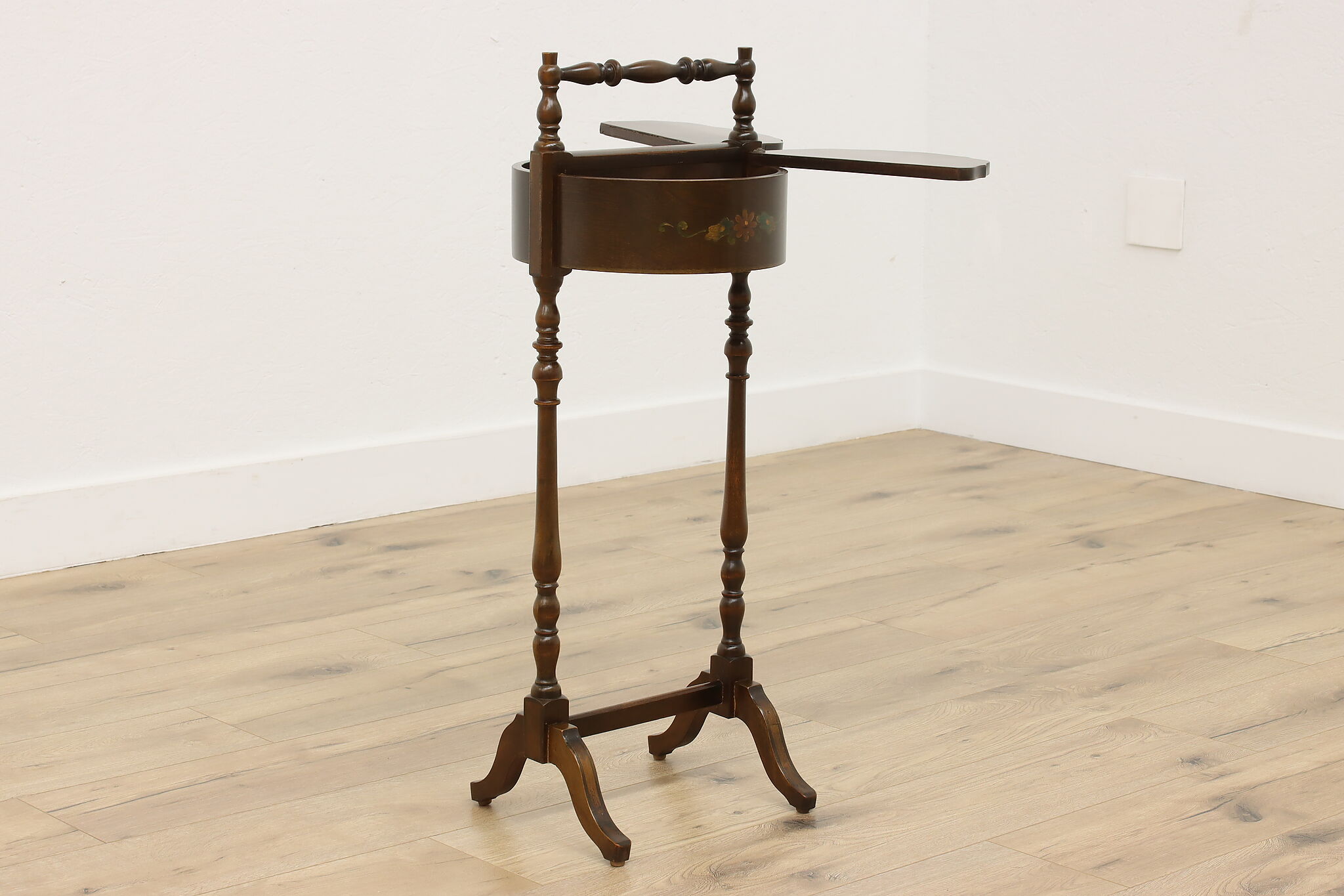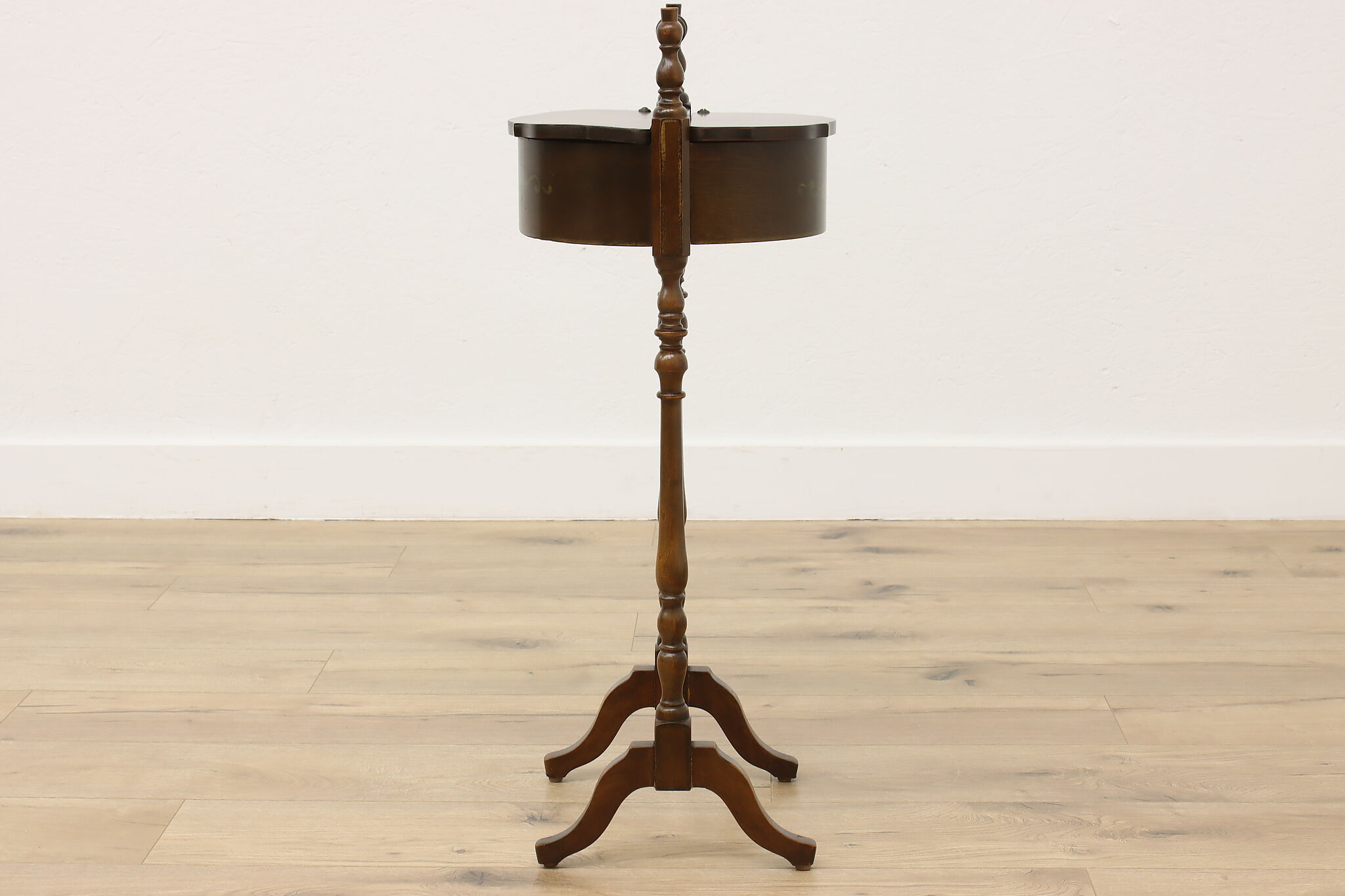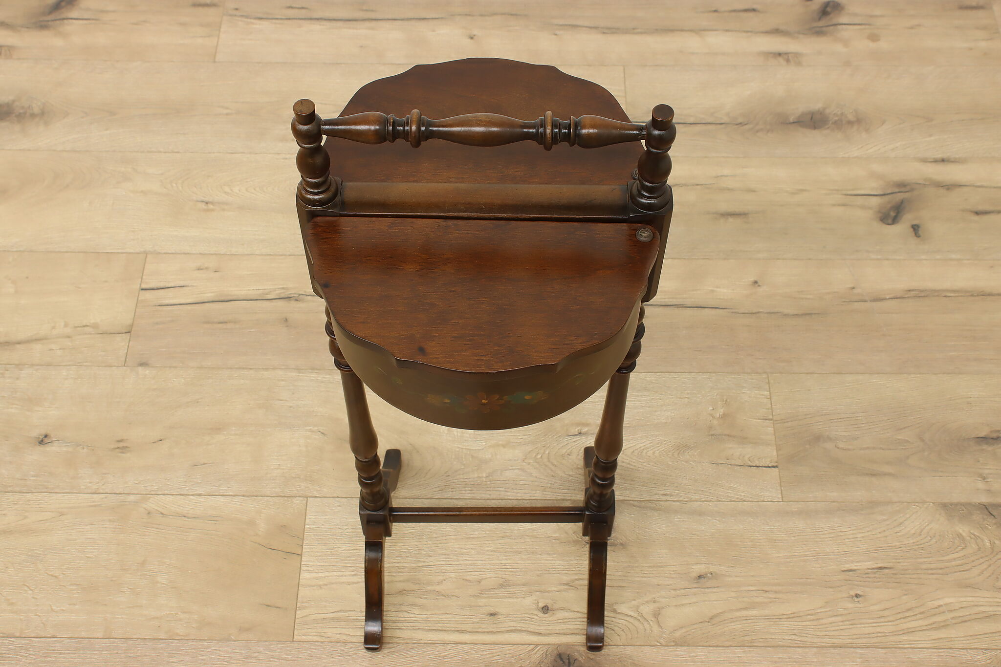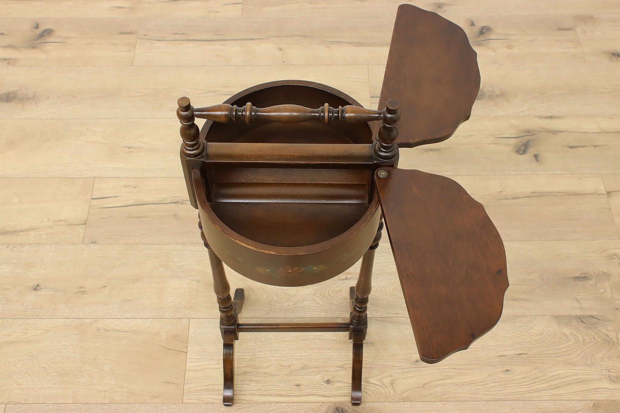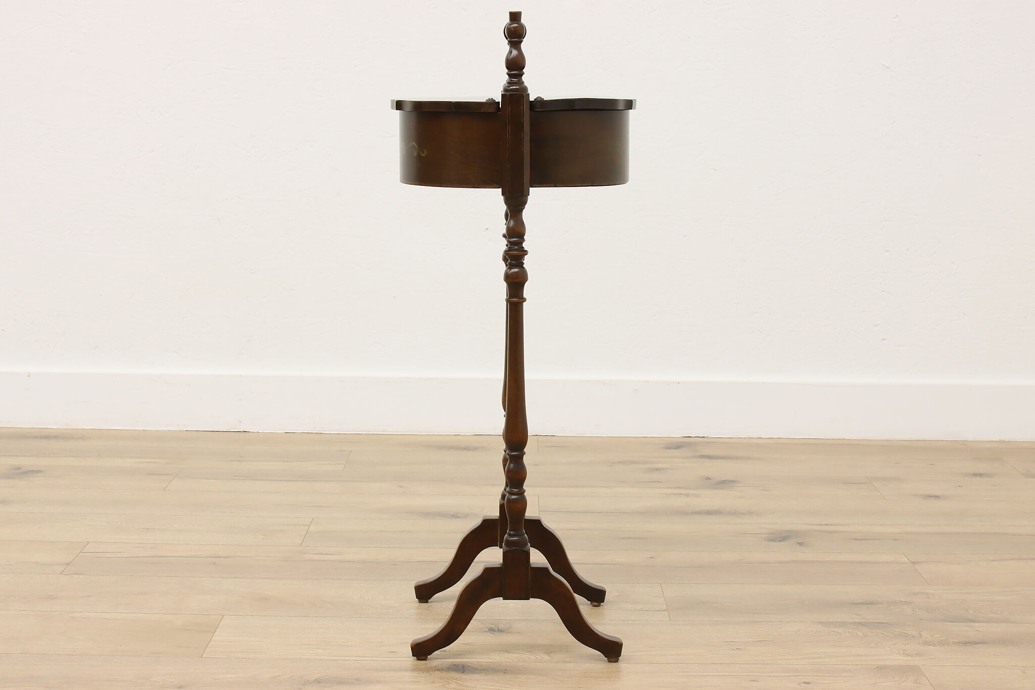 A charming chairside double sewing stand or caddy could be a unique end table.
