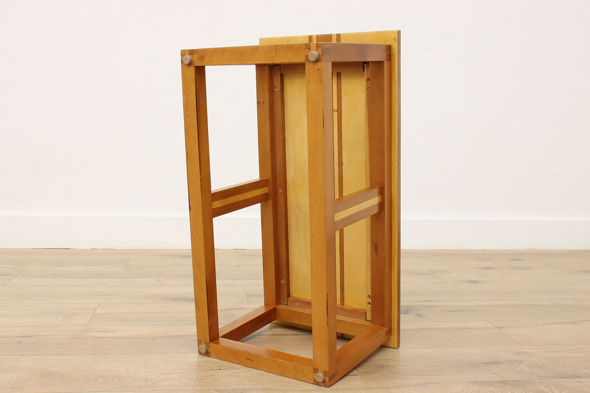 This farmhouse stepstool, small coffee table or plant stand was beautifully handcrafted by a carpenter.