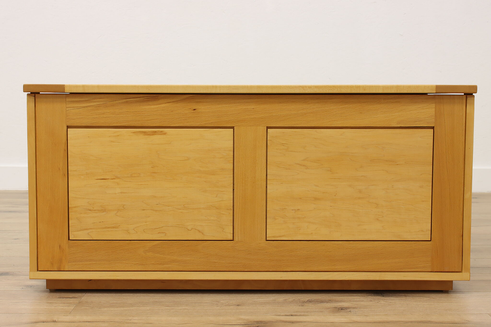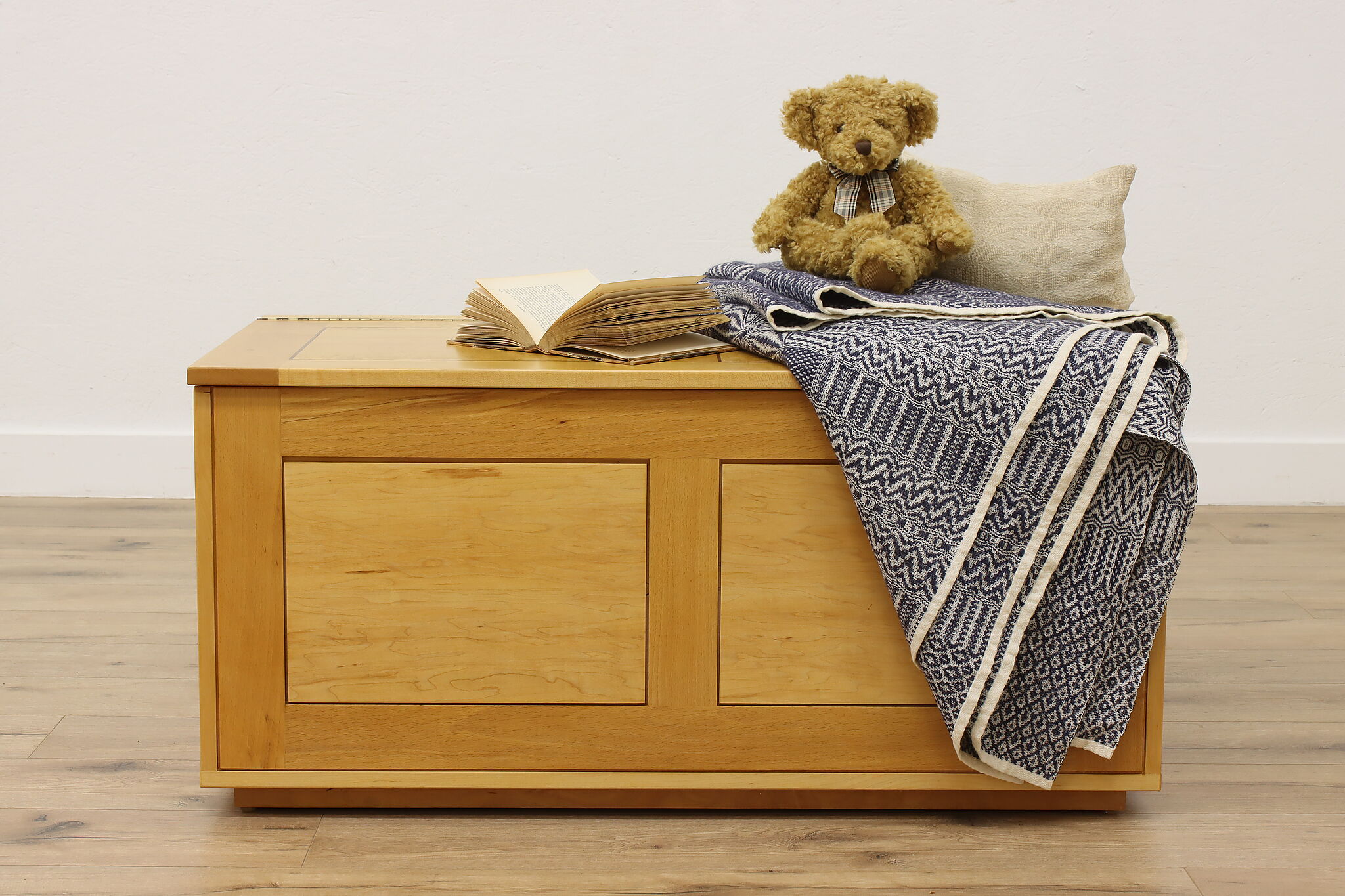 The warm tones of this blanket chest and coffee table will make your living room pop with a bit of color!