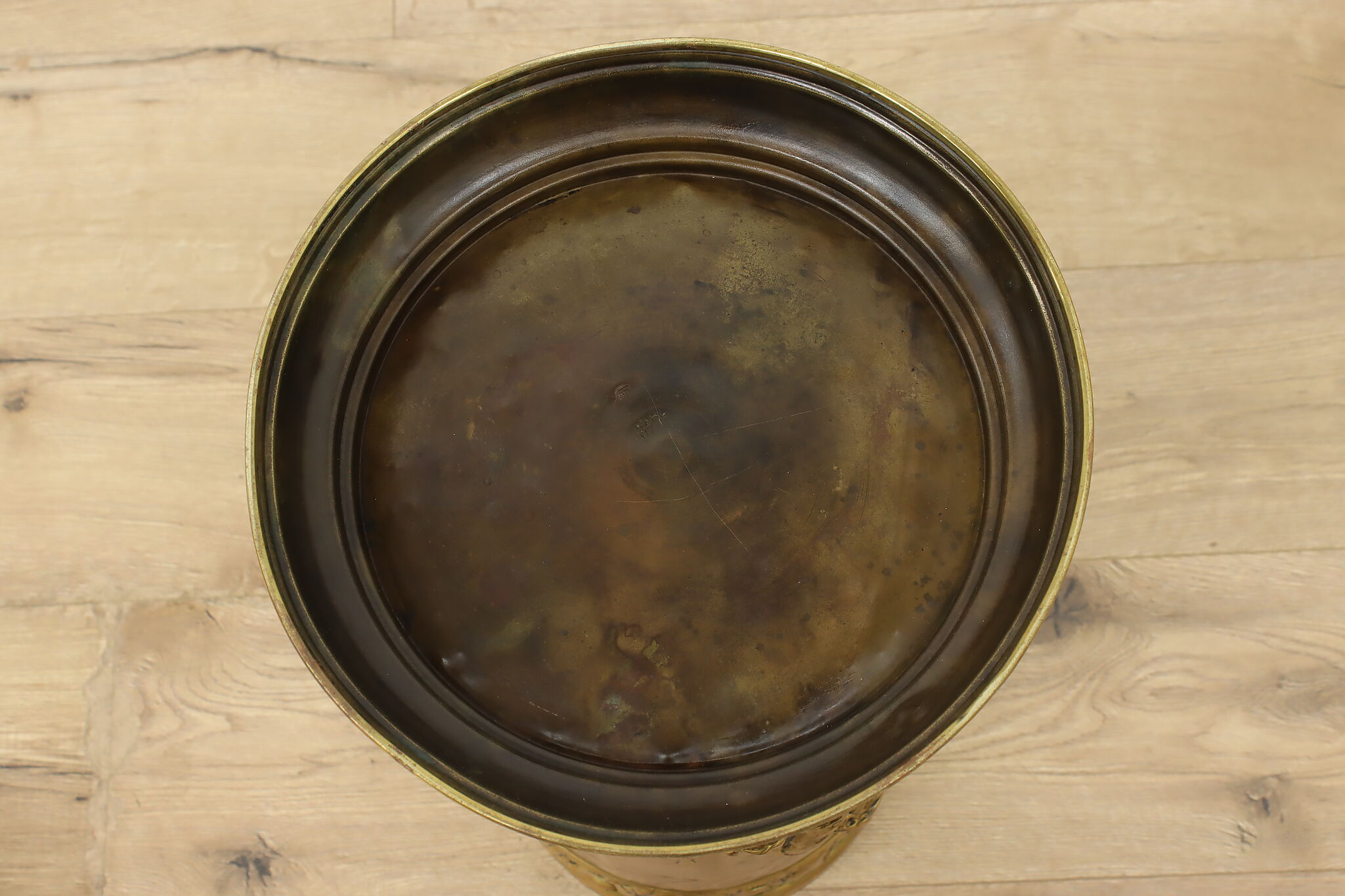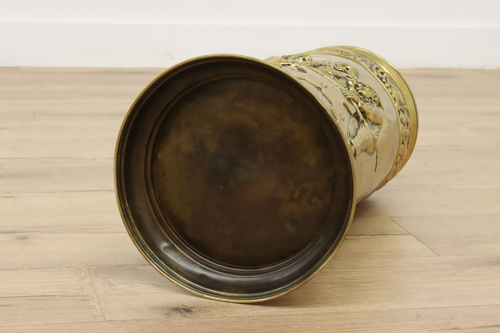 This farmhouse umbrella stand or planter has an embossed scene from a rowdy tavern.