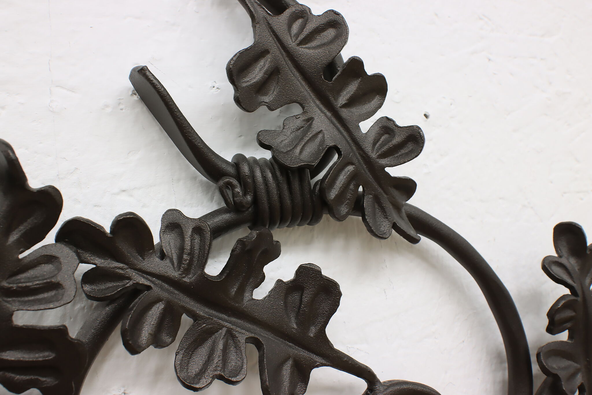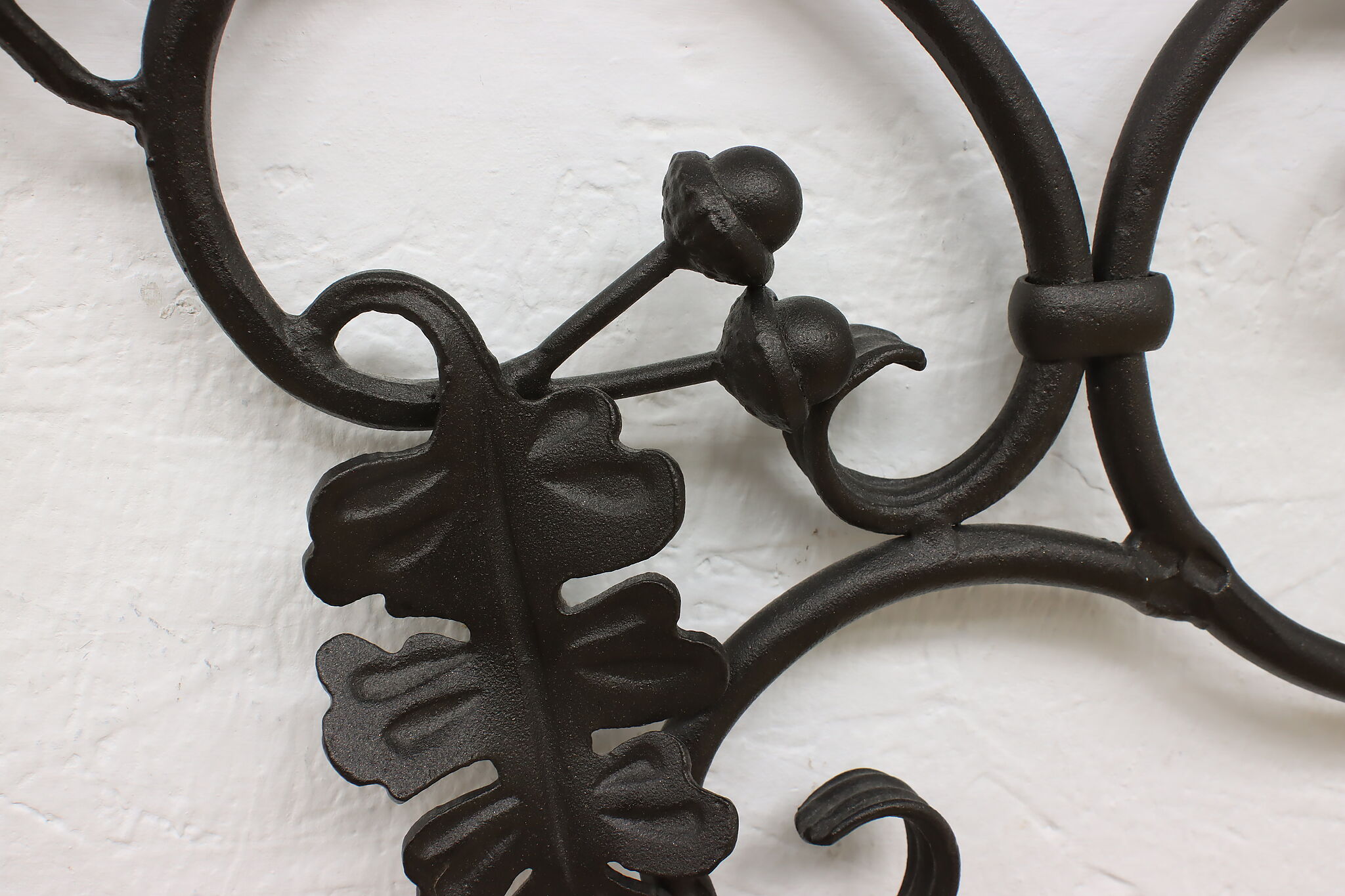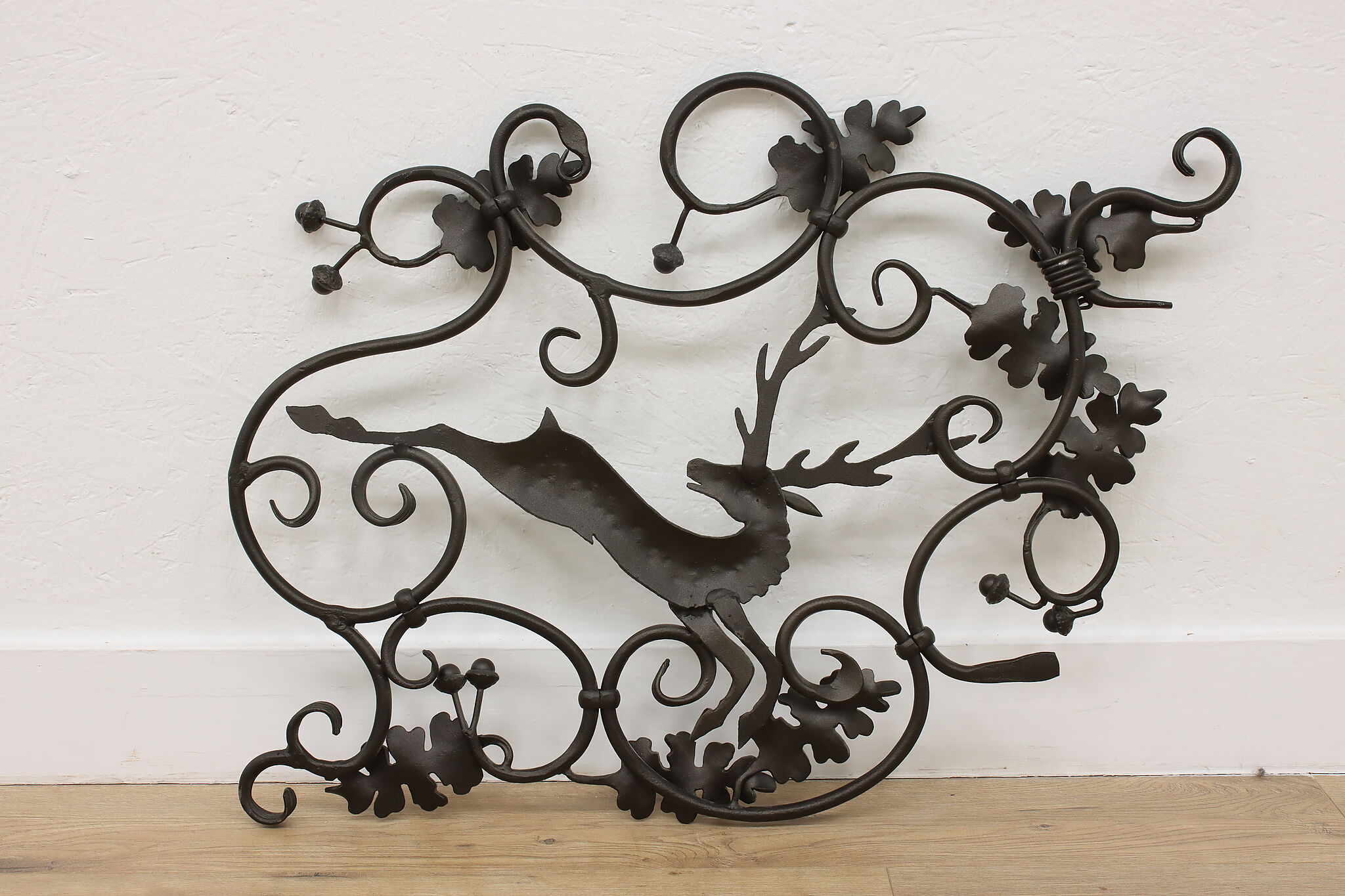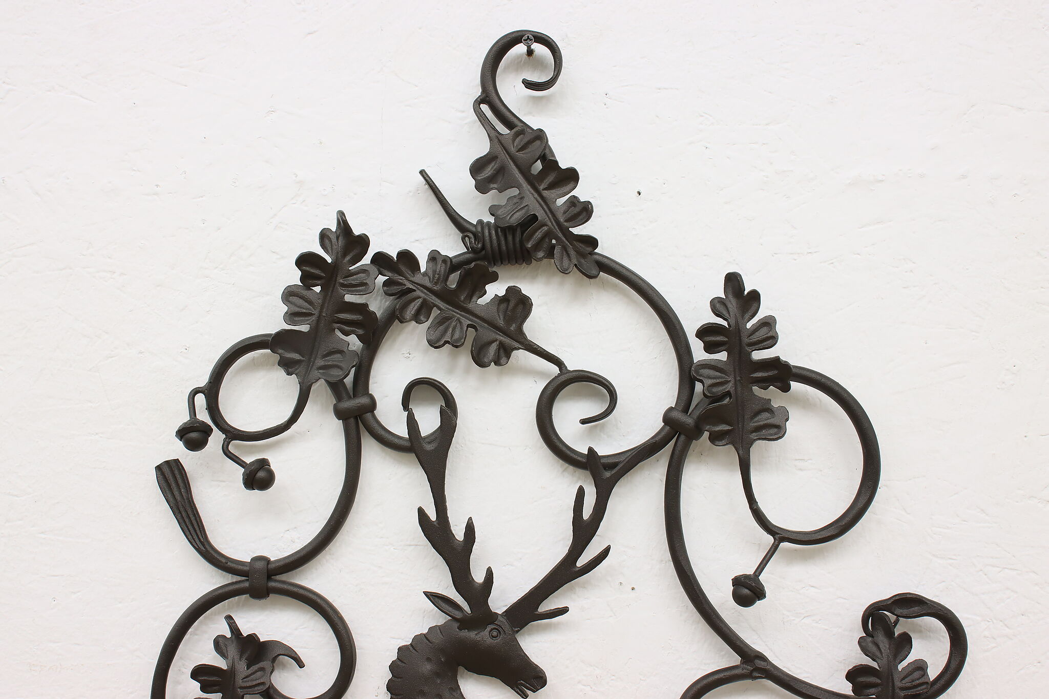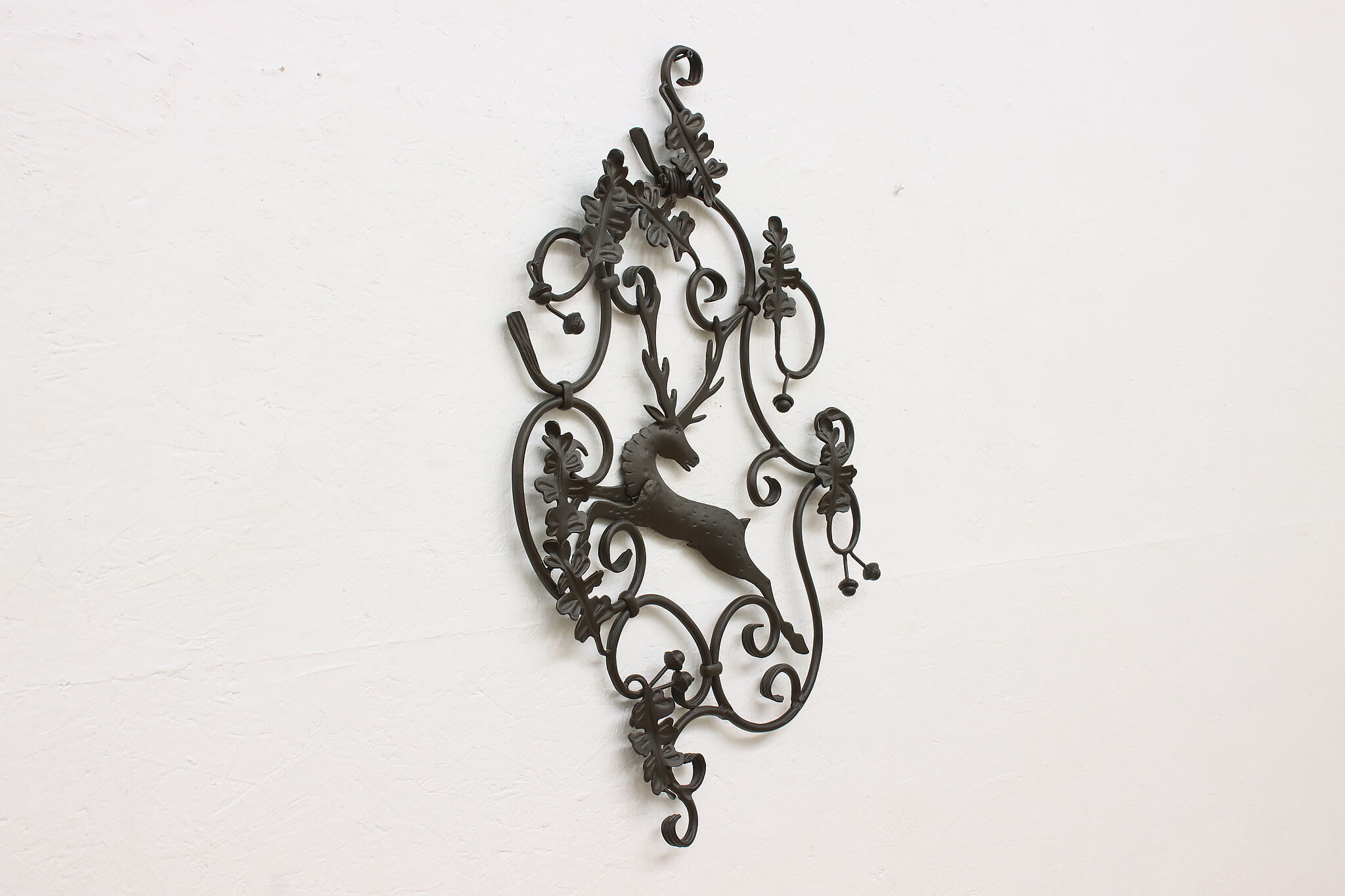 This wall sculpture of a stag surrounded by oak leaves and acorns would be delightful inside or outside of your home.