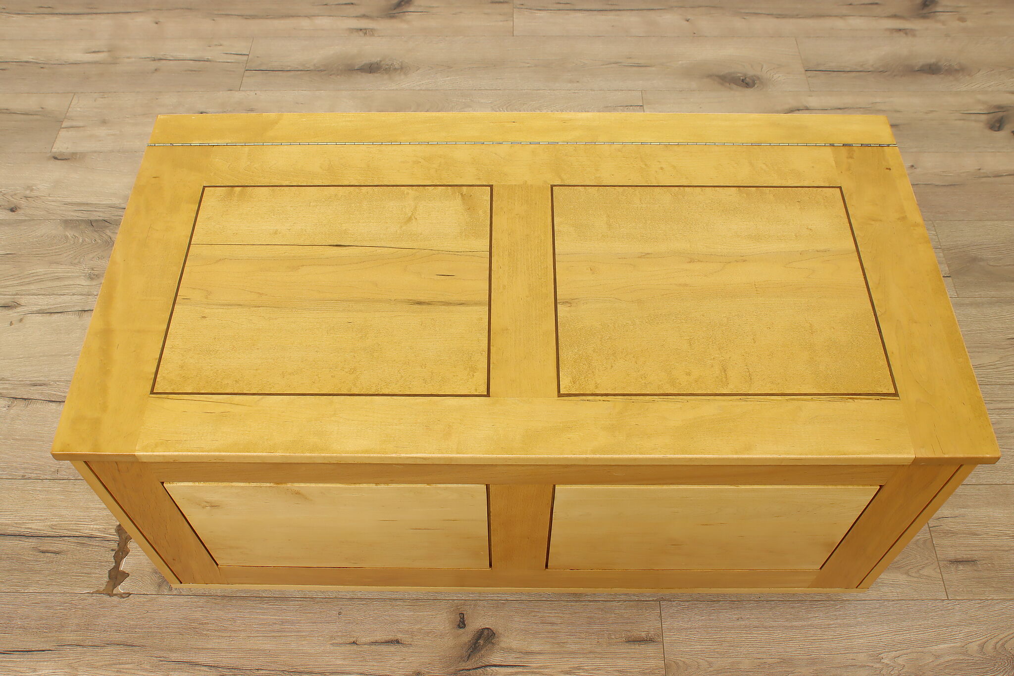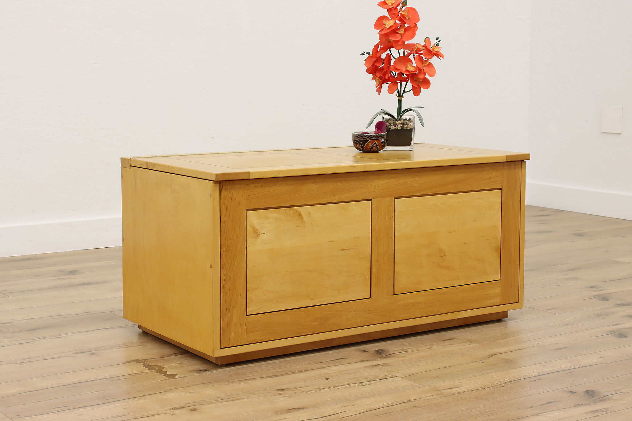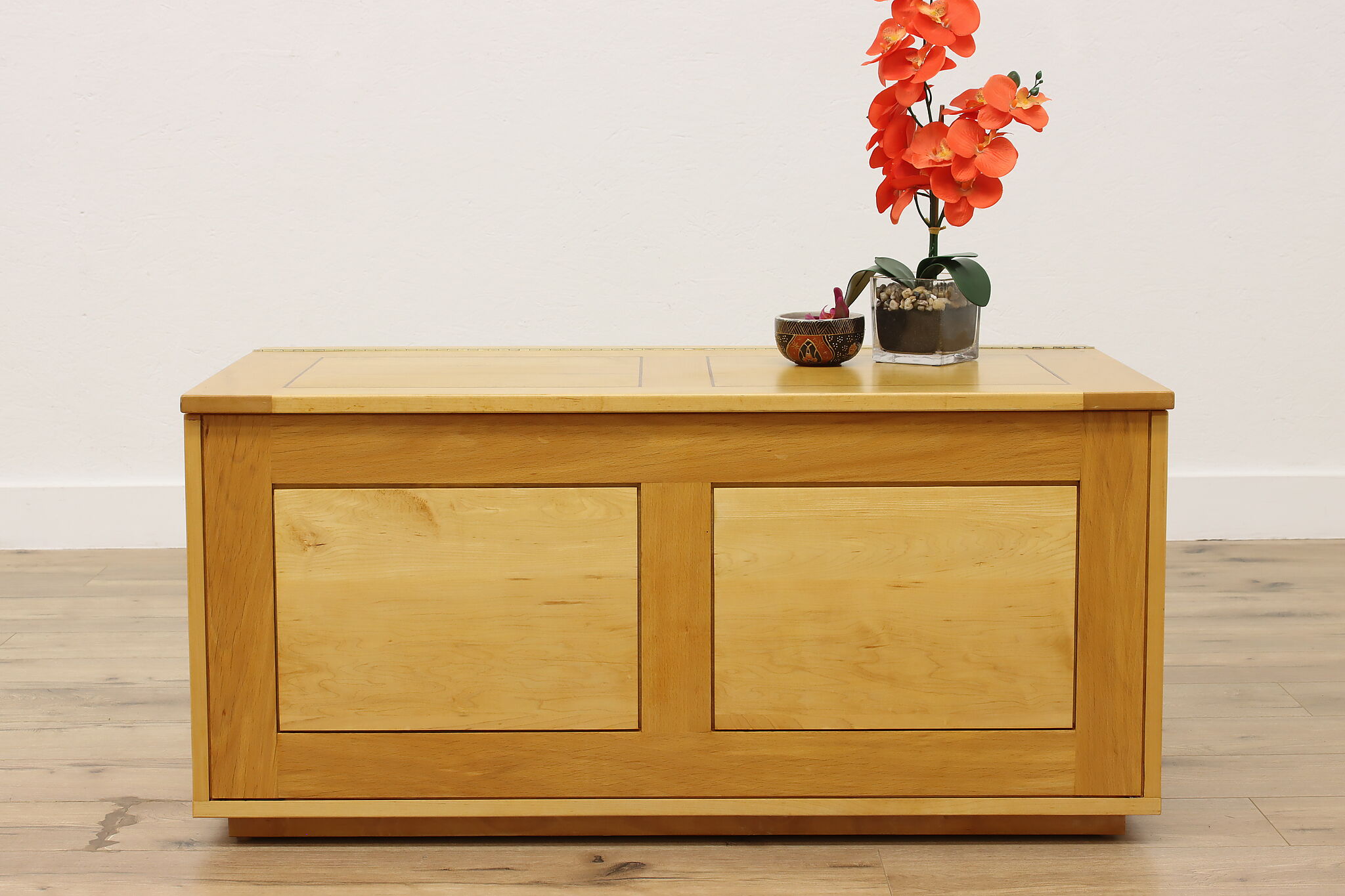 The warm tones of this blanket chest and coffee table will make your living room pop with a bit of color!